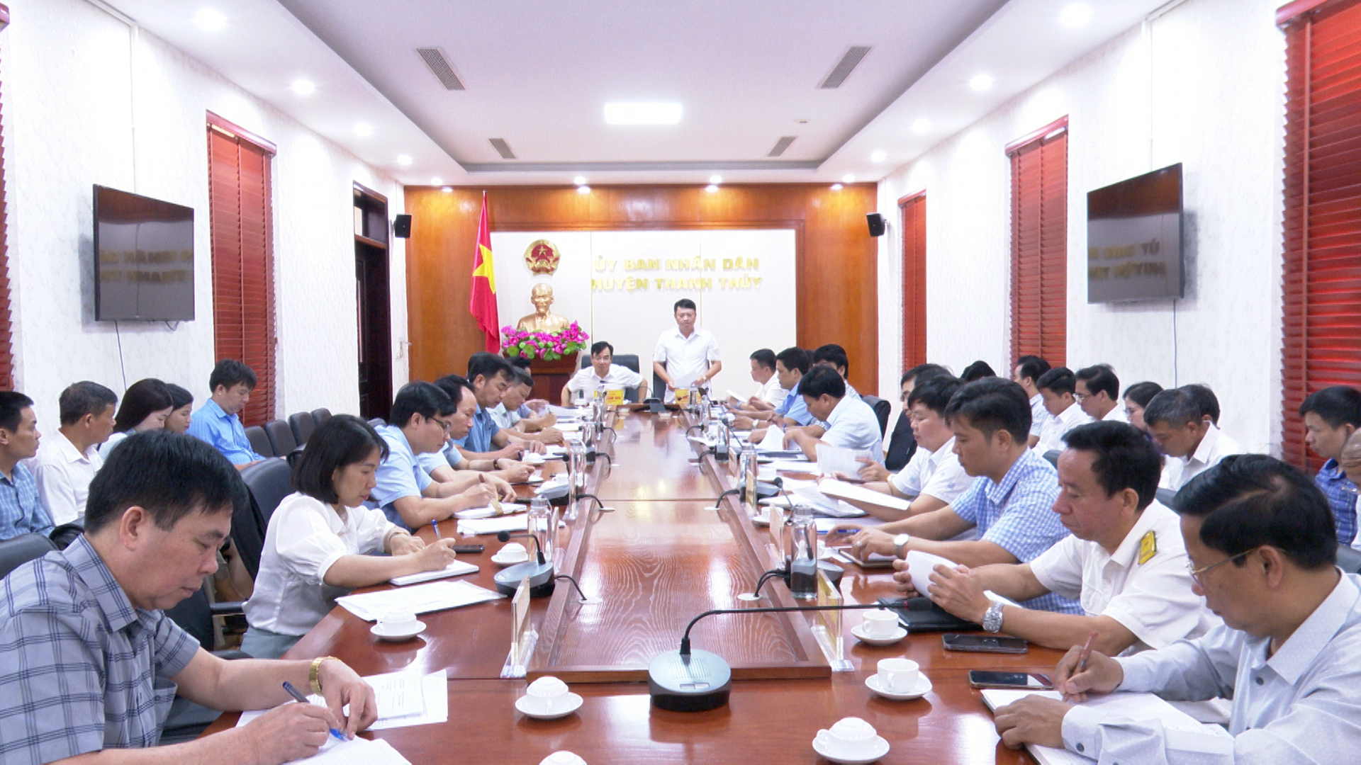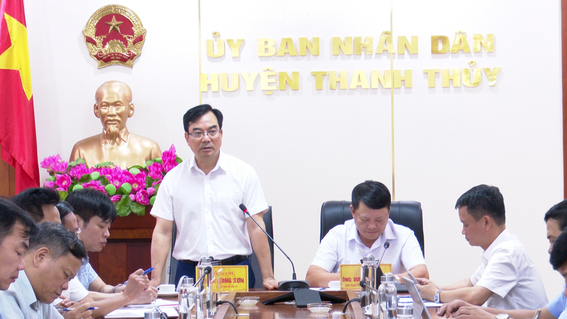 Phát biểu chỉ đạo và kết luận hội nghị, đồng chí Bí thư Huyện ủy Trịnh Hùng Sơn và đồng chí Dương Quốc Lâm - Phó Bí thư Huyện ủy, Chủ tịch UBND huyện yêu cầu trong thời gian tới các phòng chuyên môn của huyện tích cực phối hợp với các địa phương tiếp tục thực hiện tốt công tác xây dựng khu dân cư, xã nông thôn mới nâng cao, kiểu mẫu; xây dựng các sản phẩm OCOP thiết thực, hiệu quả. Thúc đẩy cải thiện môi trường đầu tư kinh doanh, đẩy nhanh tiến độ công tác bồi thường, giải phóng mặt bằng, đảm bảo mặt bằng sạch cho các nhà đầu tư; Tiếp tục thực hiện tốt việc thu các sắc thuế, không để xảy ra trường hợp trốn thuế; Công an huyện phối hợp với cơ quan chuyên môn và chính quyền địa phương tăng cường quản lý đất đai, không để xảy ra tình trạng san hạ cốt nền, khai thác khoáng sản trái phép, lấn chiếm hành lang giao thông; Nâng cao trách nhiệm phục vụ của cán bộ, công chức trong thực hiện cải cách hành chính mang đến sự hài lòng cho người dân và doanh nghiệp. Đối với lĩnh vực Giáo dục và Đào tạo, các đồng chí yêu cầu cơ quan chuyên môn thực hiện công tác thi tuyển đảm bảo khách quan, trung thực, mang lại hiệu quả cao; xây dựng kế hoạch tập huấn nhằm nâng cao trình độ chuyên môn, nghiệp vụ cho đội ngũ giáo viên. Tiếp tục duy trì, phát huy hiệu quả mô hình âm nhạc đường phố, góp phần thu hút du khách về với huyện Thanh Thủy, tạo điểm nhấn để Nghị quyết 08 ngày 16/4/2021 của Ban Thường vụ Huyện ủy về phát triển du lịch huyện Thanh Thủy giai đoạn 2021-2025, định hướng đến năm 2030 sẽ trở thành hiện thực.