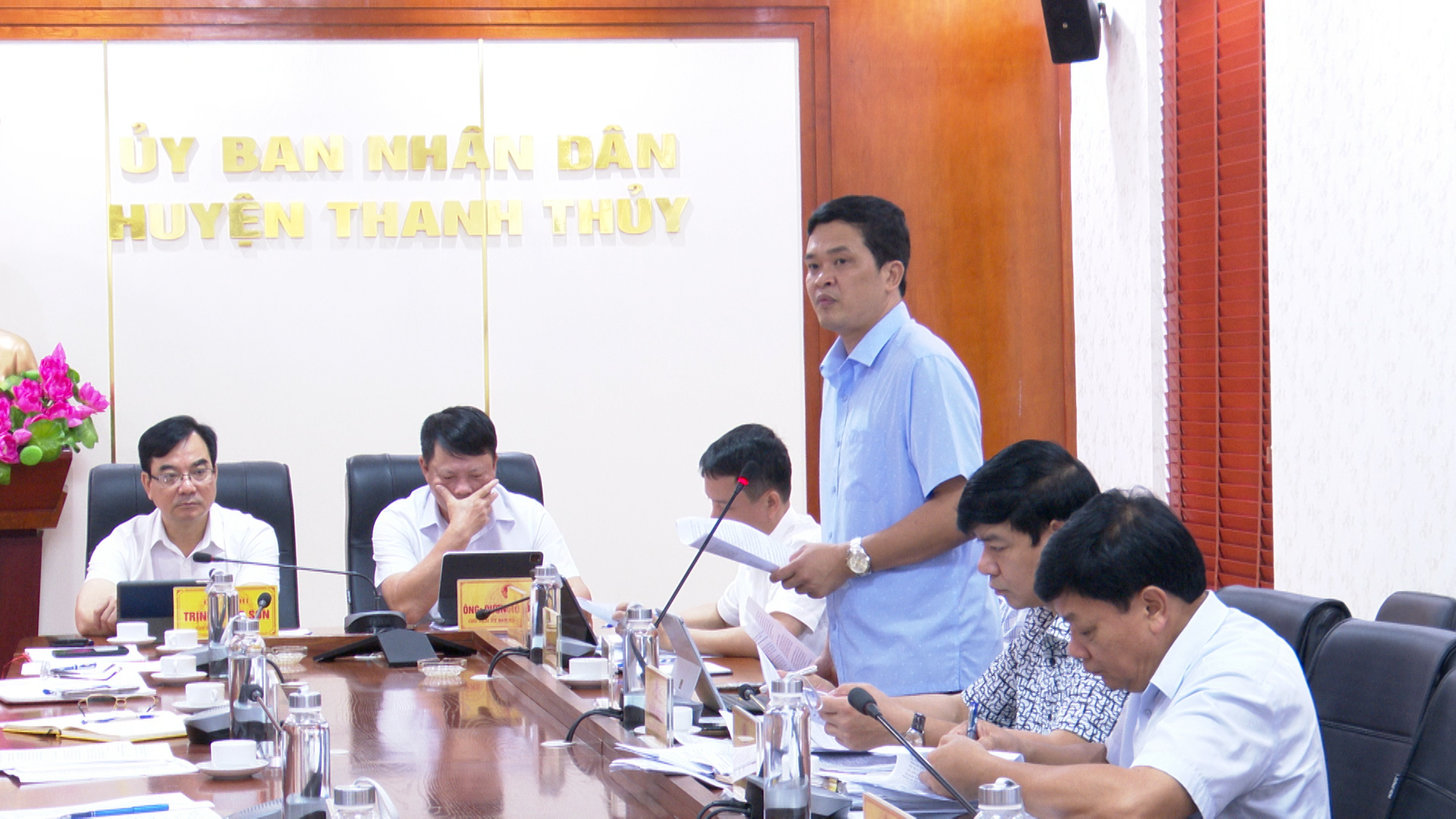 Lãnh đạo Văn phòng HĐND - UBND huyện báo cáo tình hình phát triển kinh tế - xã hội tháng 4/2024
