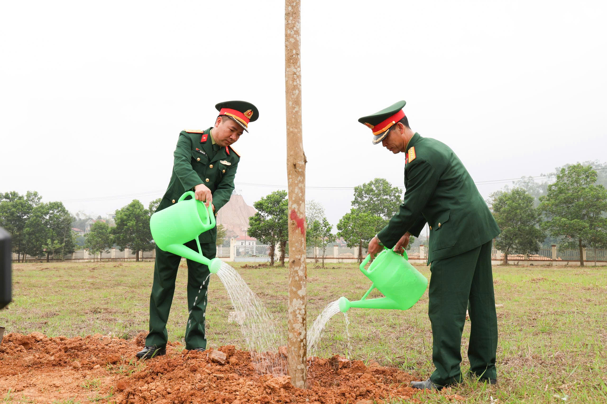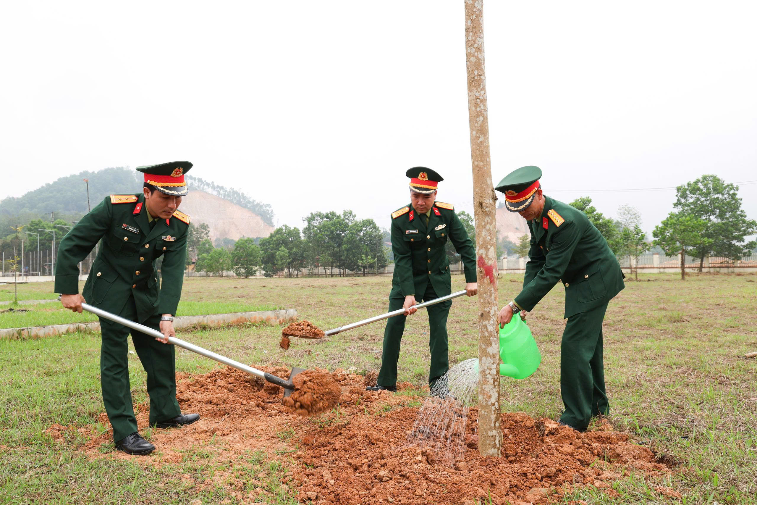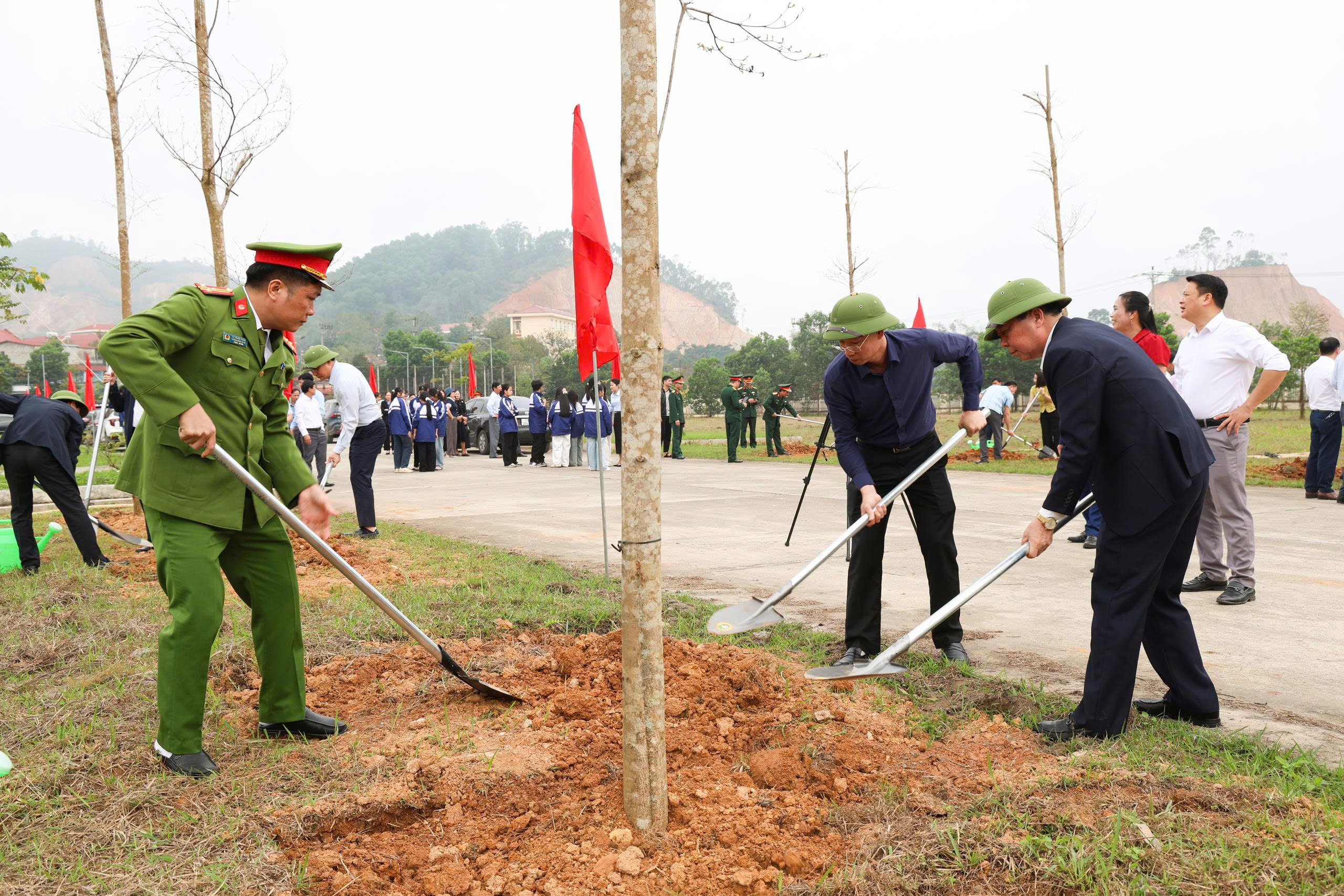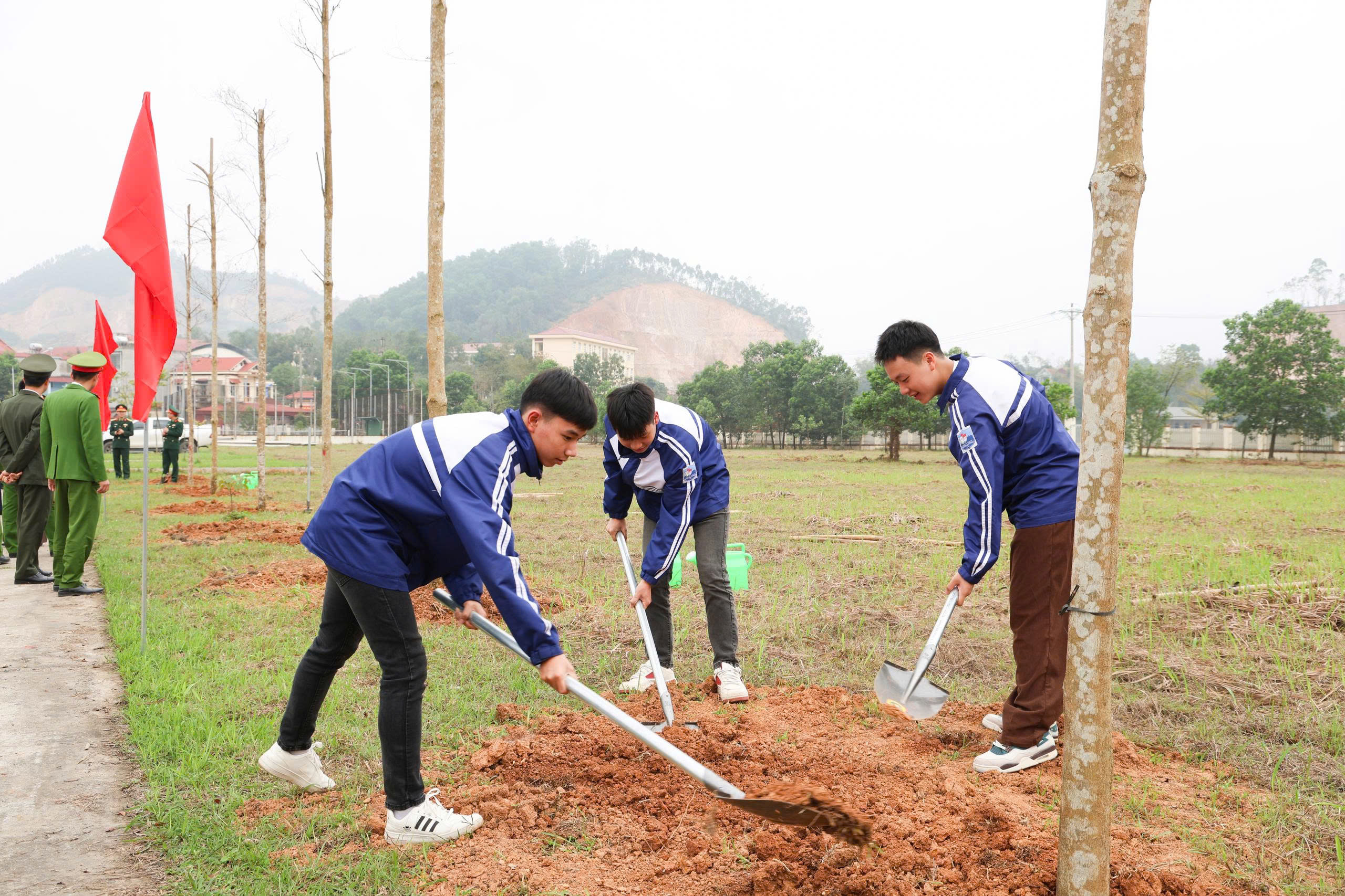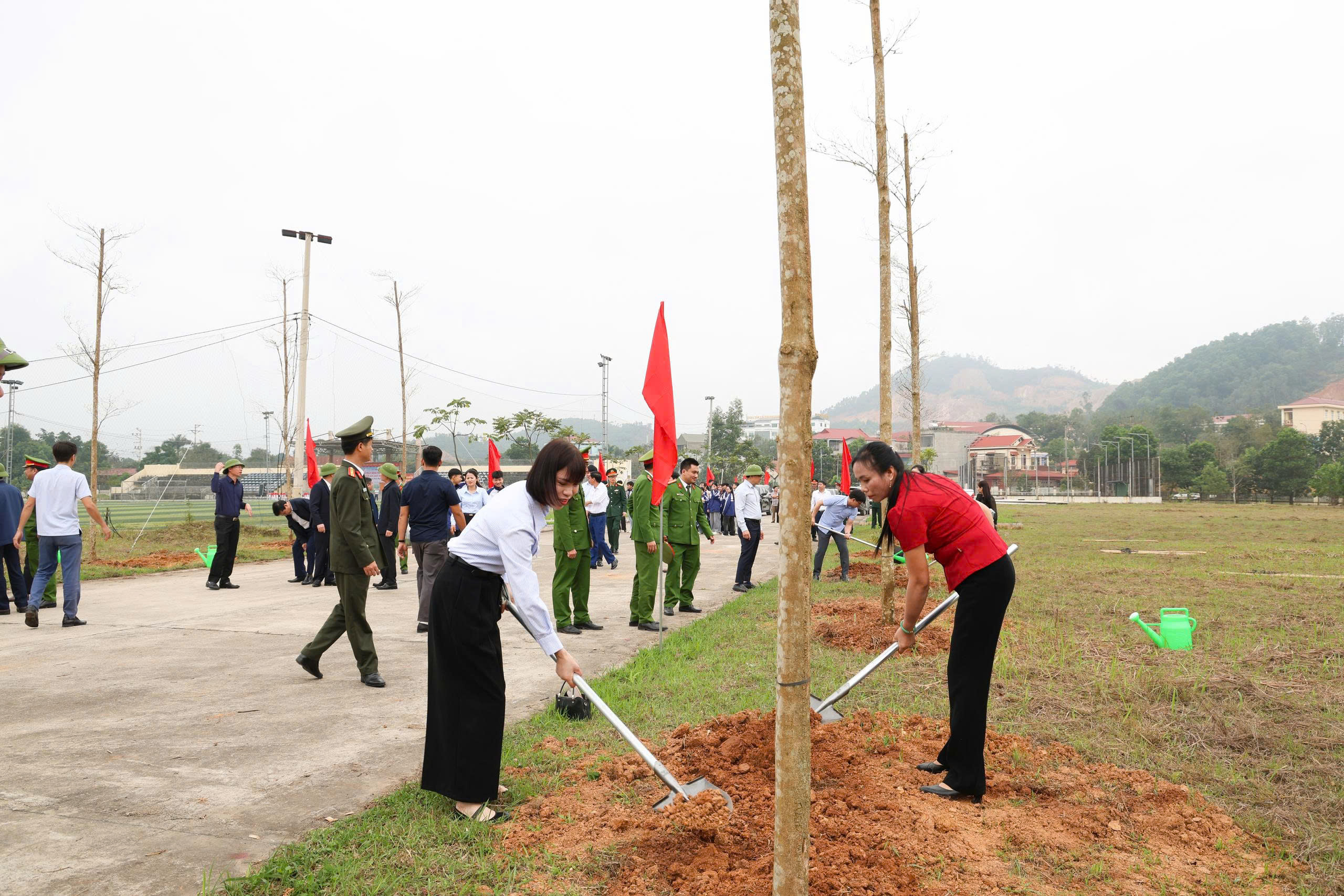 Ngay sau lễ phát động, các đại biểu tham gia trồng cây trong khuôn viên sân vận động trung tâm xã