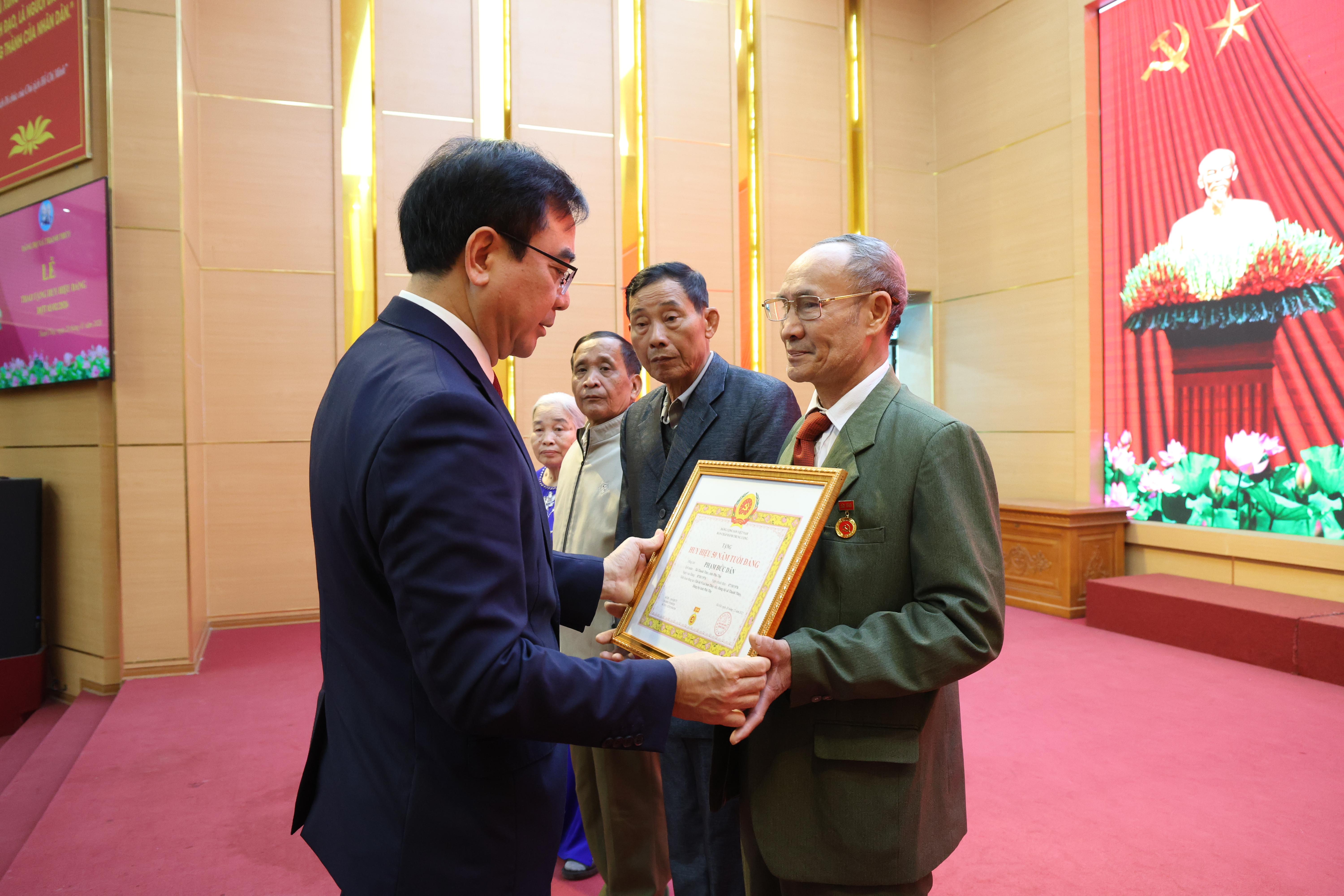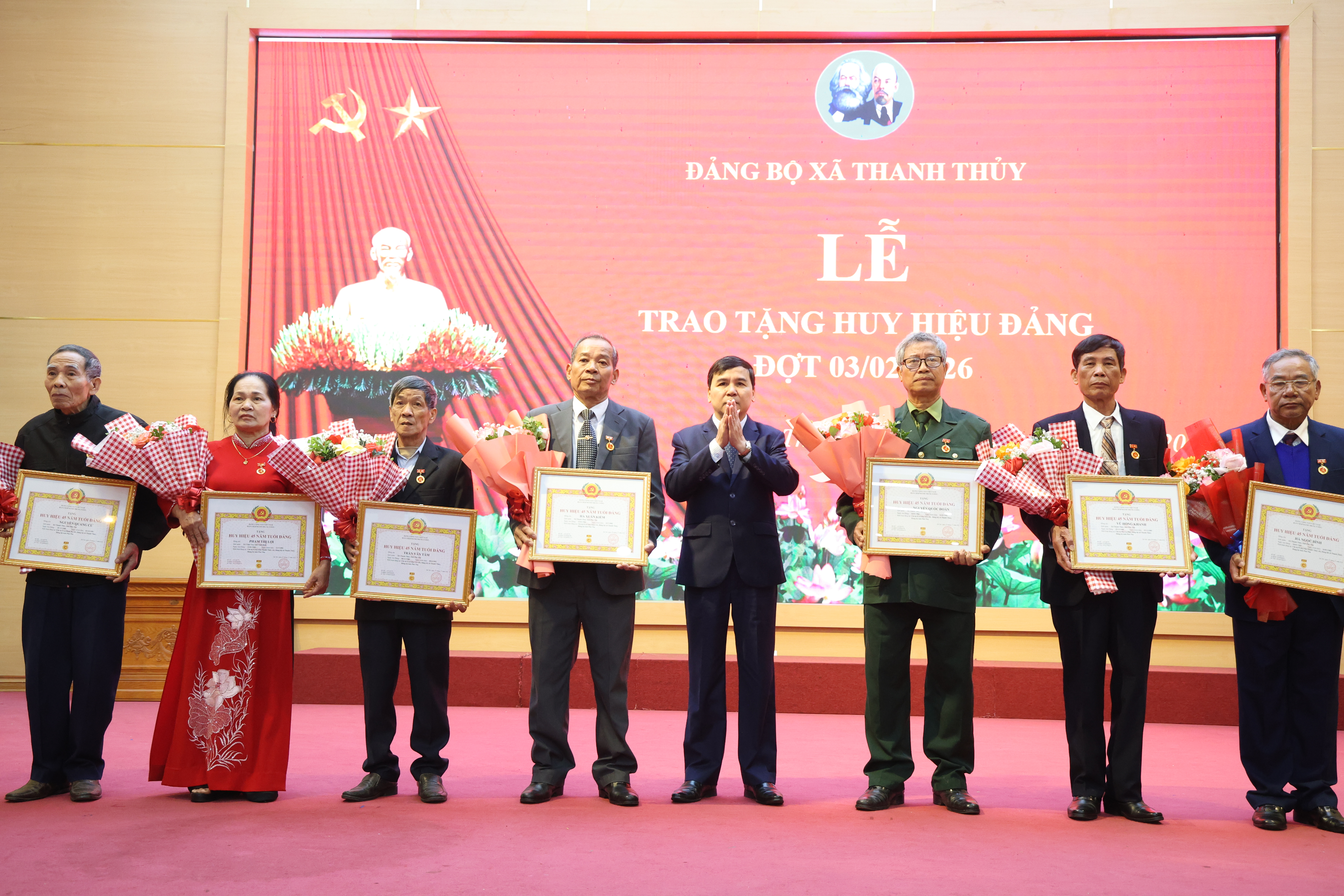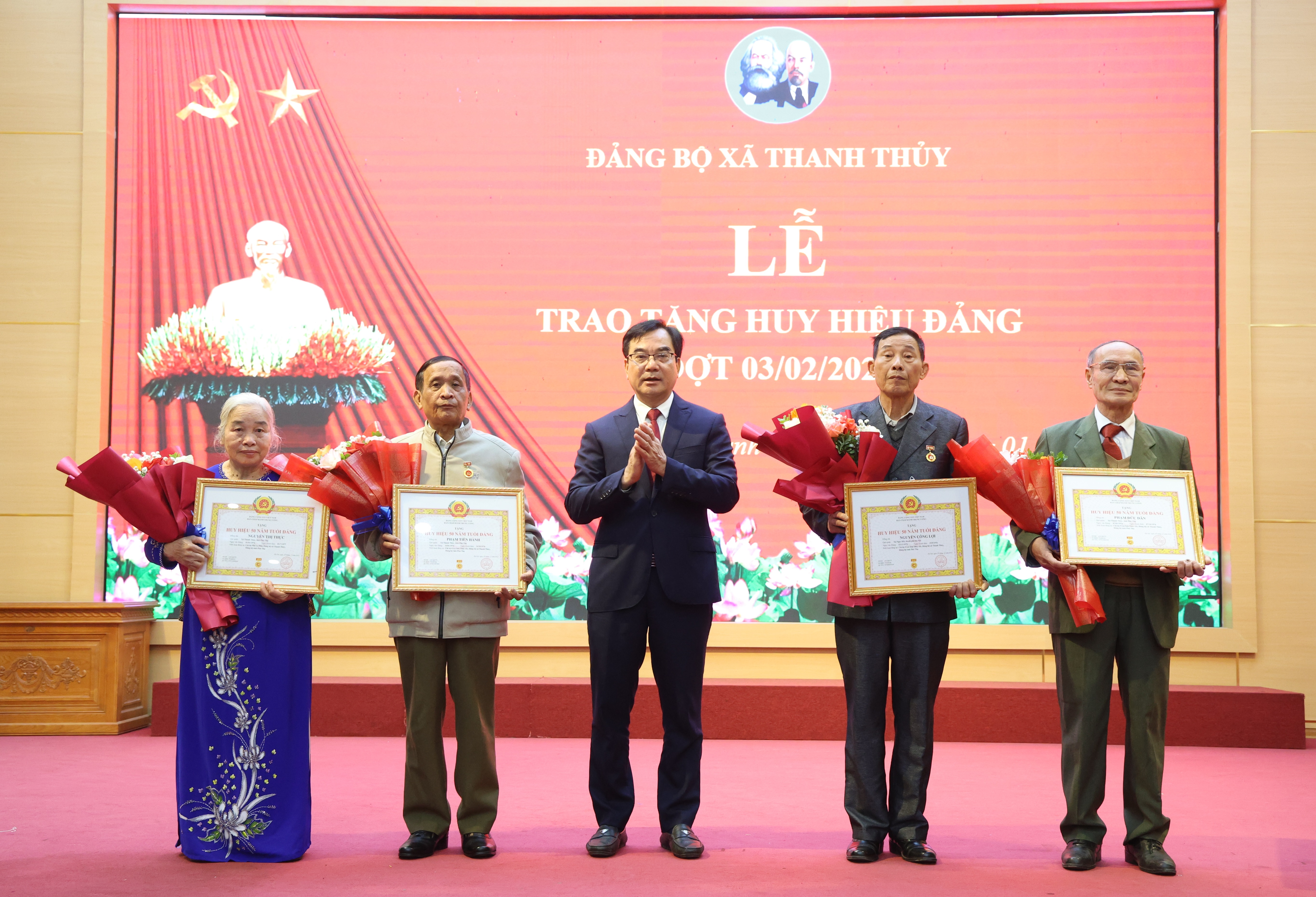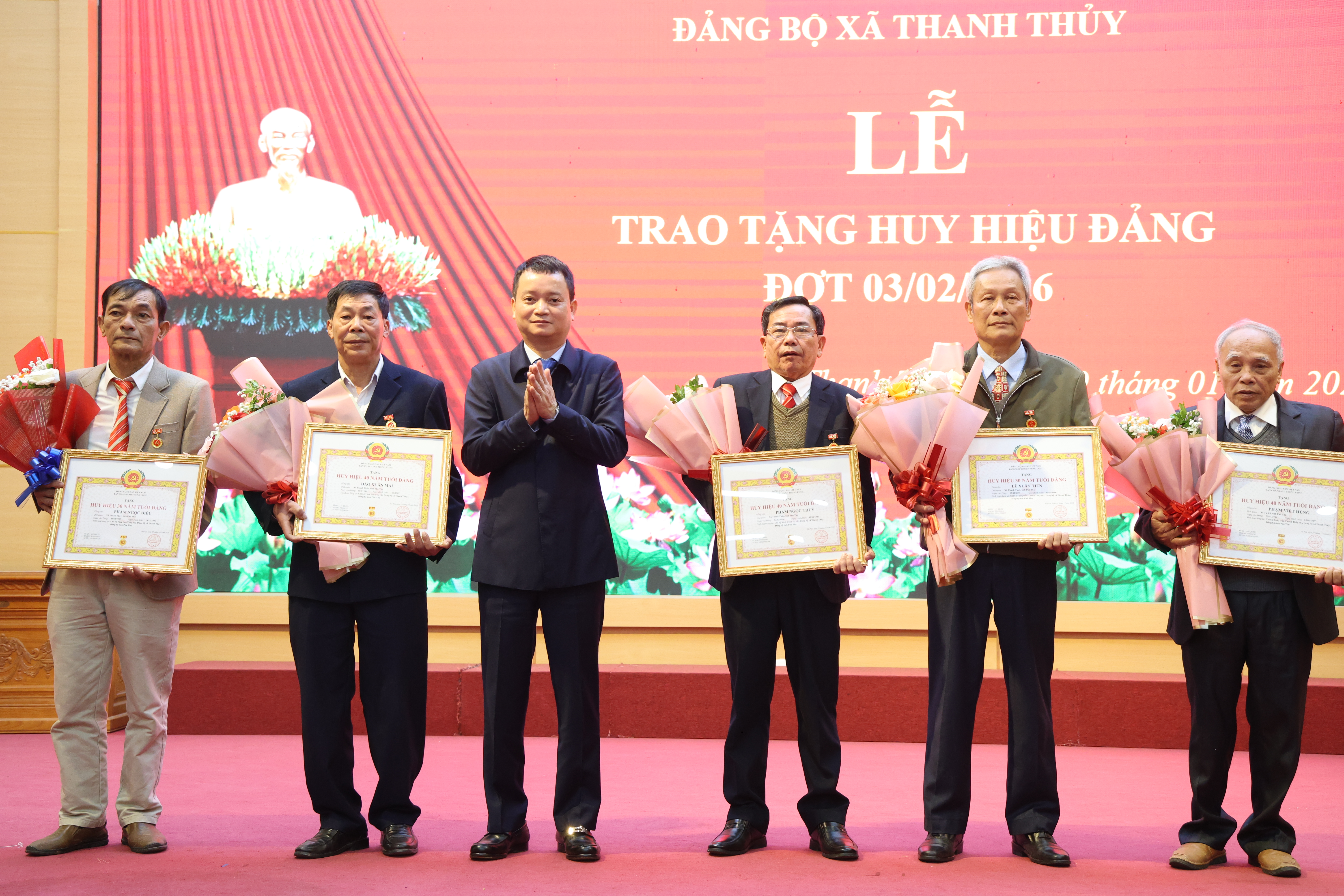 Trong số 20 đảng viên vinh dự được nhận Huy hiệu Đảng đợt này có 4 đồng chí: Phạm Đức Dân (Chi bộ 5 - Sơn Thuỷ cũ); Phạm Tiến Hành (Chi bộ 6 - Sơn Thuỷ cũ); Nguyễn Thị Thực (Chi bộ Phố La Phù); Nguyễn Công Lợi (Chi bộ 4 - Sơn Thuỷ cũ) được nhận huy hiệu 50 năm tuổi Đảng; 8 đảng viên nhận Huy hiệu 45 năm tuổi Đảng và 7 đảng viên nhận Huy hiệu 30, 40 năm tuổi Đảng.