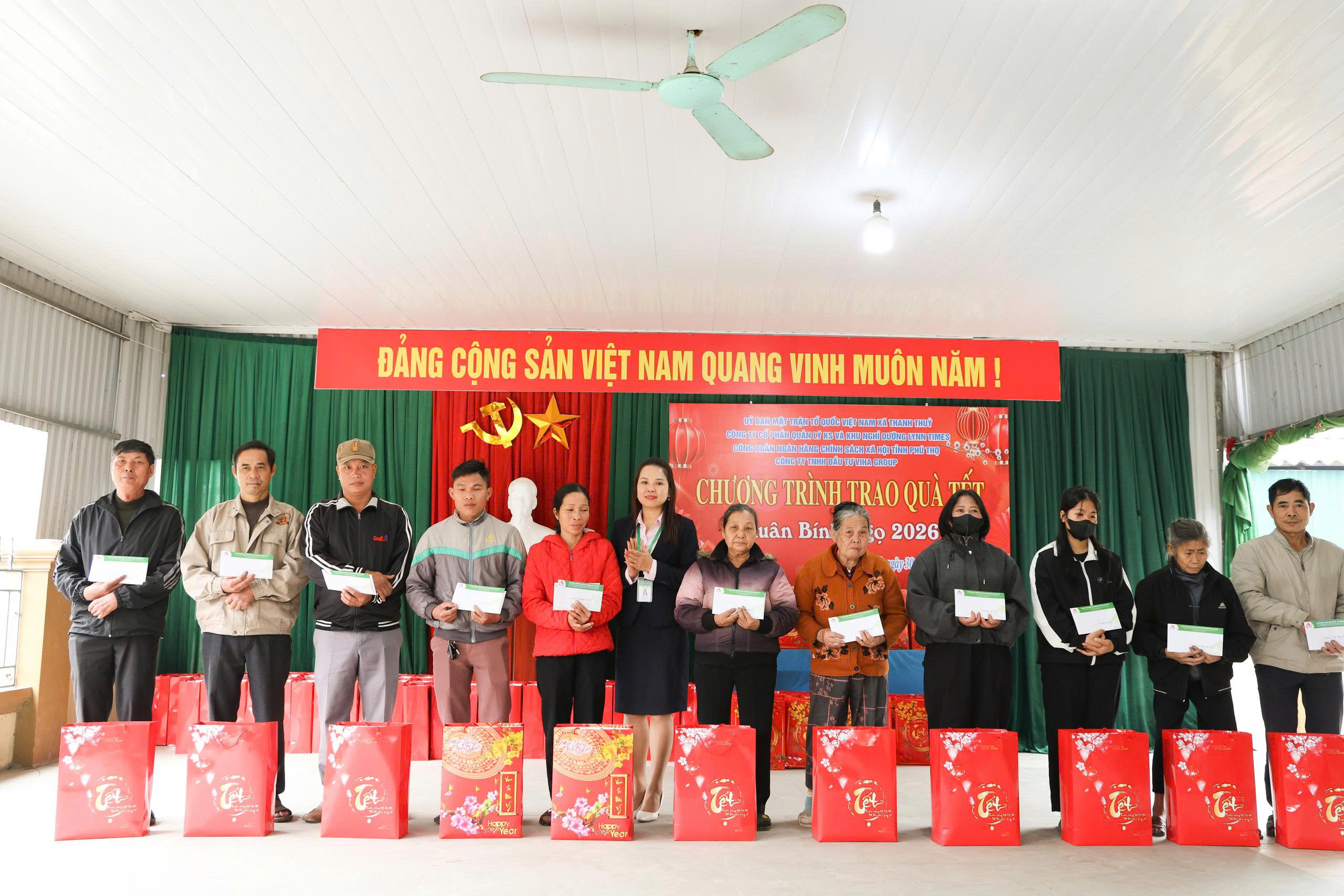 Công ty Cổ phần quản lý khách sạn và khu nghỉ dưỡng LynnTimes, Công đoàn Ngân hàng chính sách xã hội tỉnh Phú Thọ và Công Ty TNHH Đầu tư VIHA Group đã trao 60 suất quà cho 60 hộ nghèo, mỗi suất bao gồm: 1 triệu đồng tiền mặt, 1 phần quà Tết trị giá 300.000 đồng và 5kg gạo. Công ty Cổ phần quản lý khách sạn và khu nghỉ dưỡng LynnTimes trao thêm 34 suất quà cho các hộ cận nghèo, mỗi suất trị giá 800.000 đồng.