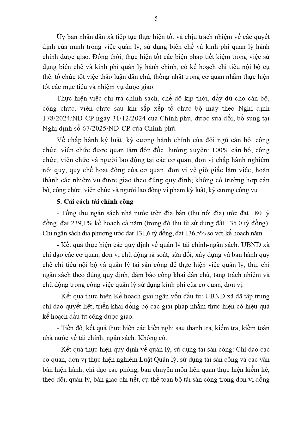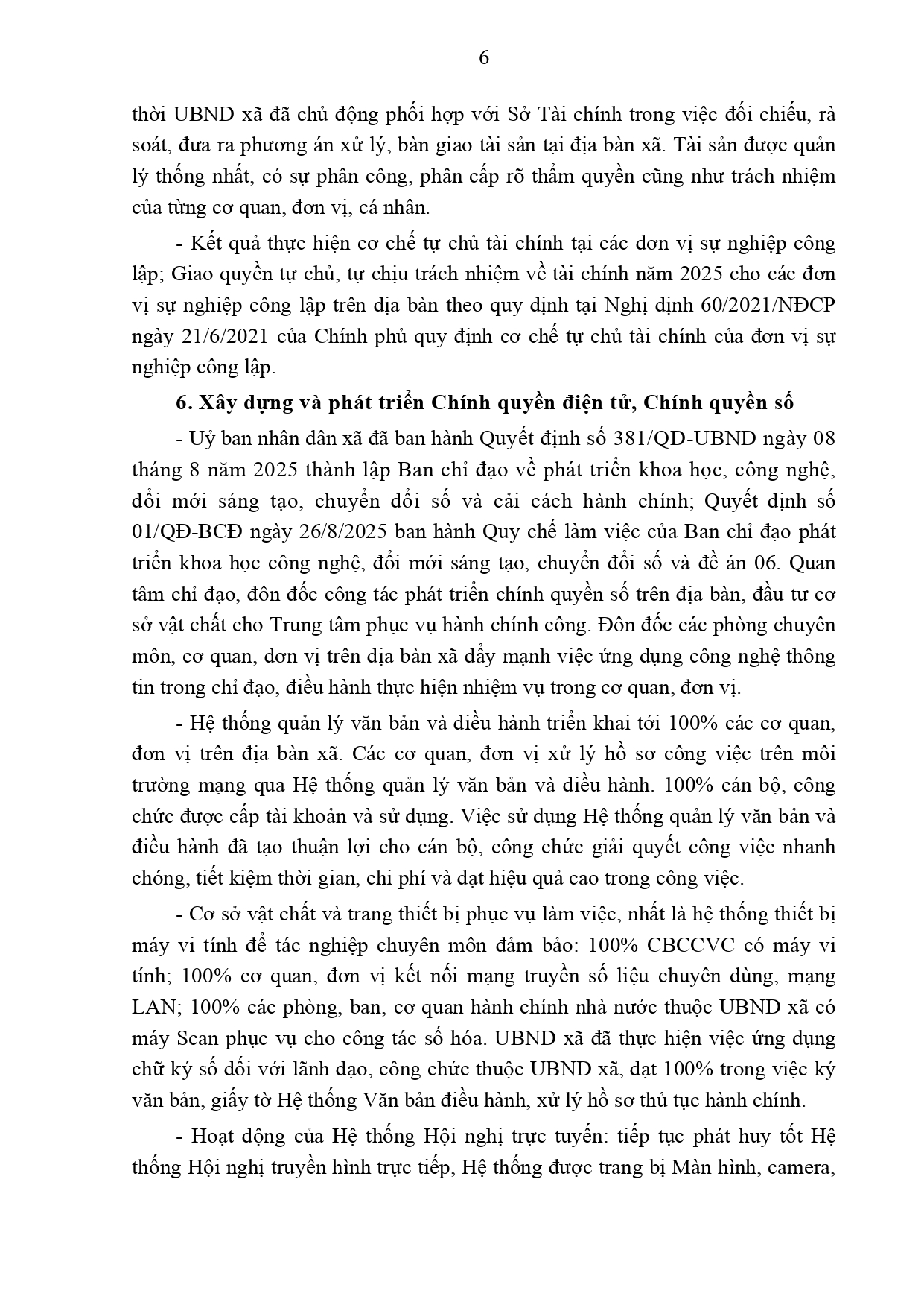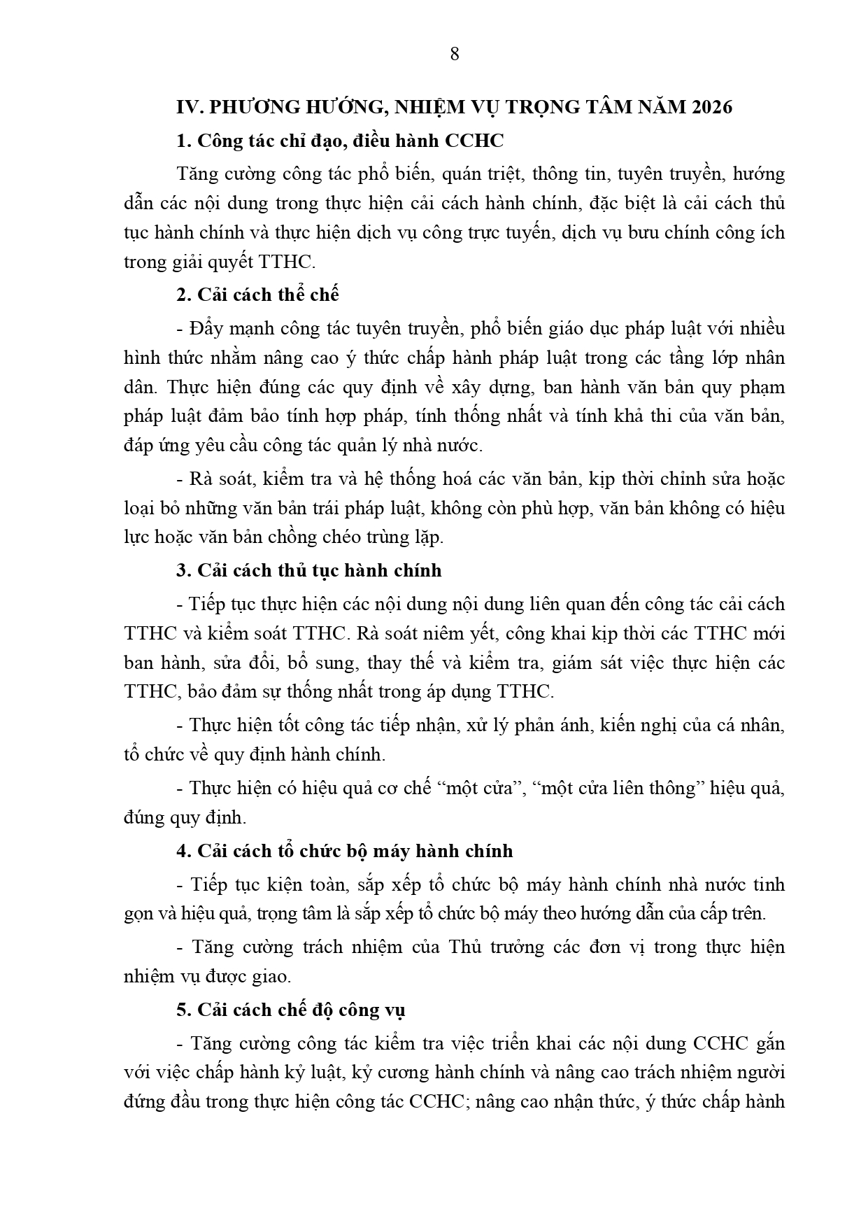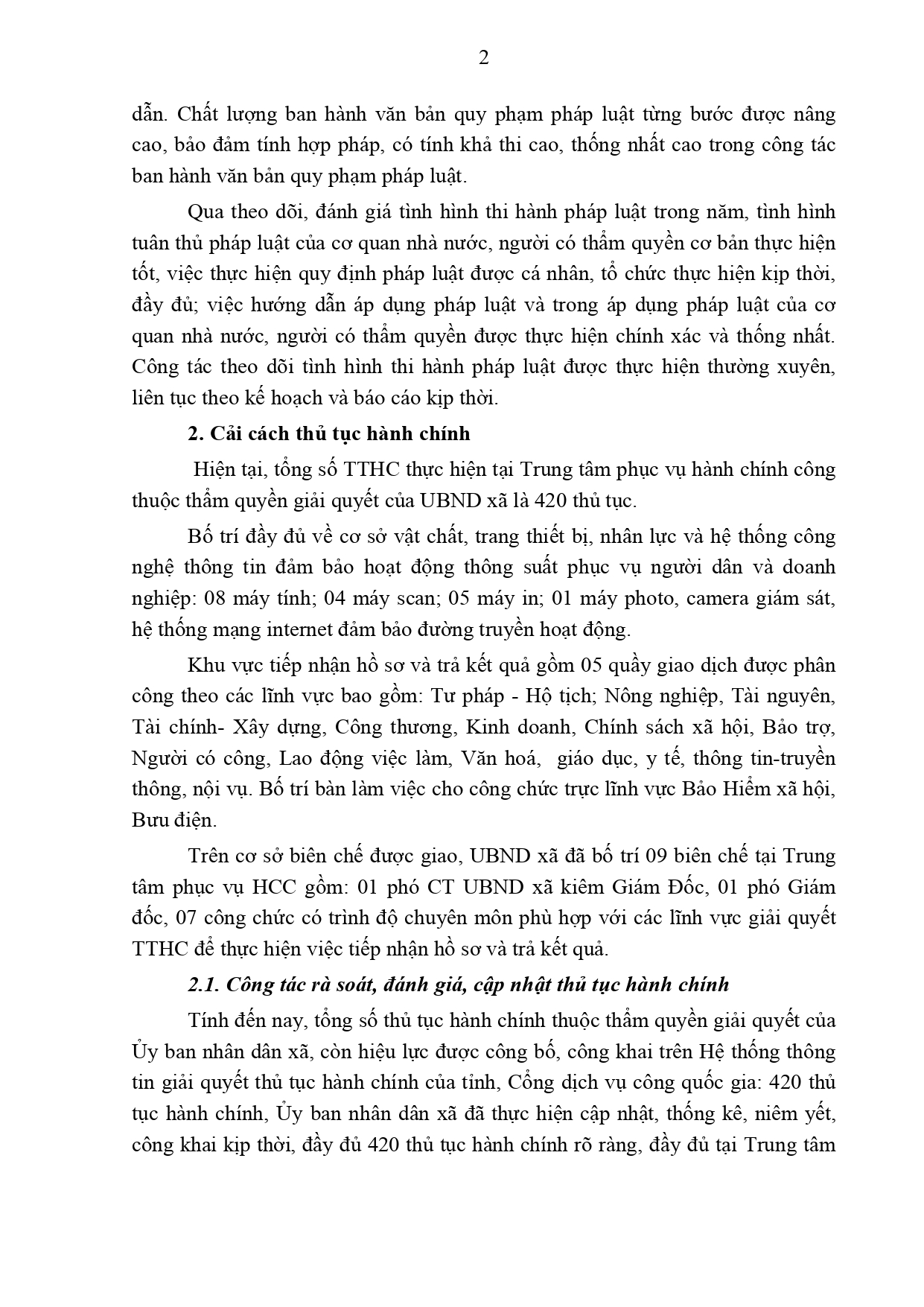 Thực hiện Văn bản số 207/SNV-CCHC ngày 11 tháng 7 năm 2025 của Sở Nội vụ tỉnh Phú Thọ về việc báo cảo cải cách hành chính định kỳ. Uỷ ban nhân dân xã báo cáo kết quả thực hiện công tác cải cách hành chính năm 2025, phương hướng, nhiệm vụ năm 2026, cụ thể như sau: