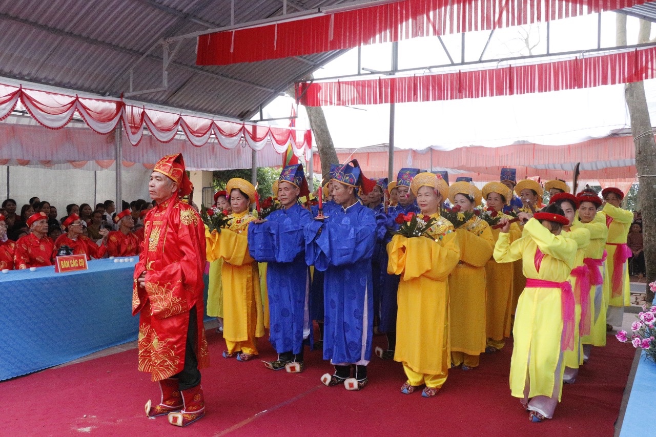 - Ngày sinh thần 4 tháng 4 chính tiệc (Trước 1 ngày nhân dân hành lễ đến nhà con trưởng; lợn đen, xôi, rượu, nghênh hồi vọng cung hành lễ, tế lễ, xướng ca). Các bộ phụng nghênh Sơn Thánh tam vị quốc chúa thiên vương hồi cung sở. Hội đồng dân làng hành lễ, trâu, dê, xôi, rượu, 3 bàn cỗ chay, bánh tròn trắng, đấu cờ 3 ngày, xưởng ca có cả.