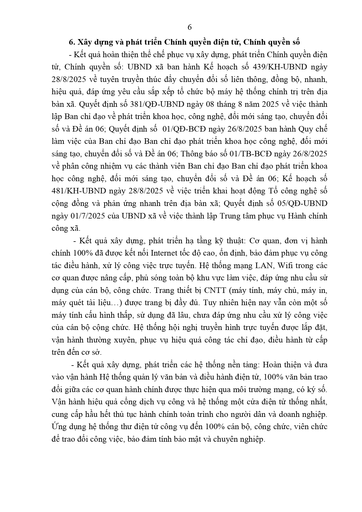 Thực hiện Văn bản số 207/SNV-CCHC ngày 11/7/2025 của Sở Nội vụ tỉnh Phú Thọ về việc báo cáo cải cách hành chính định kỳ. Ủy ban nhân dân xã