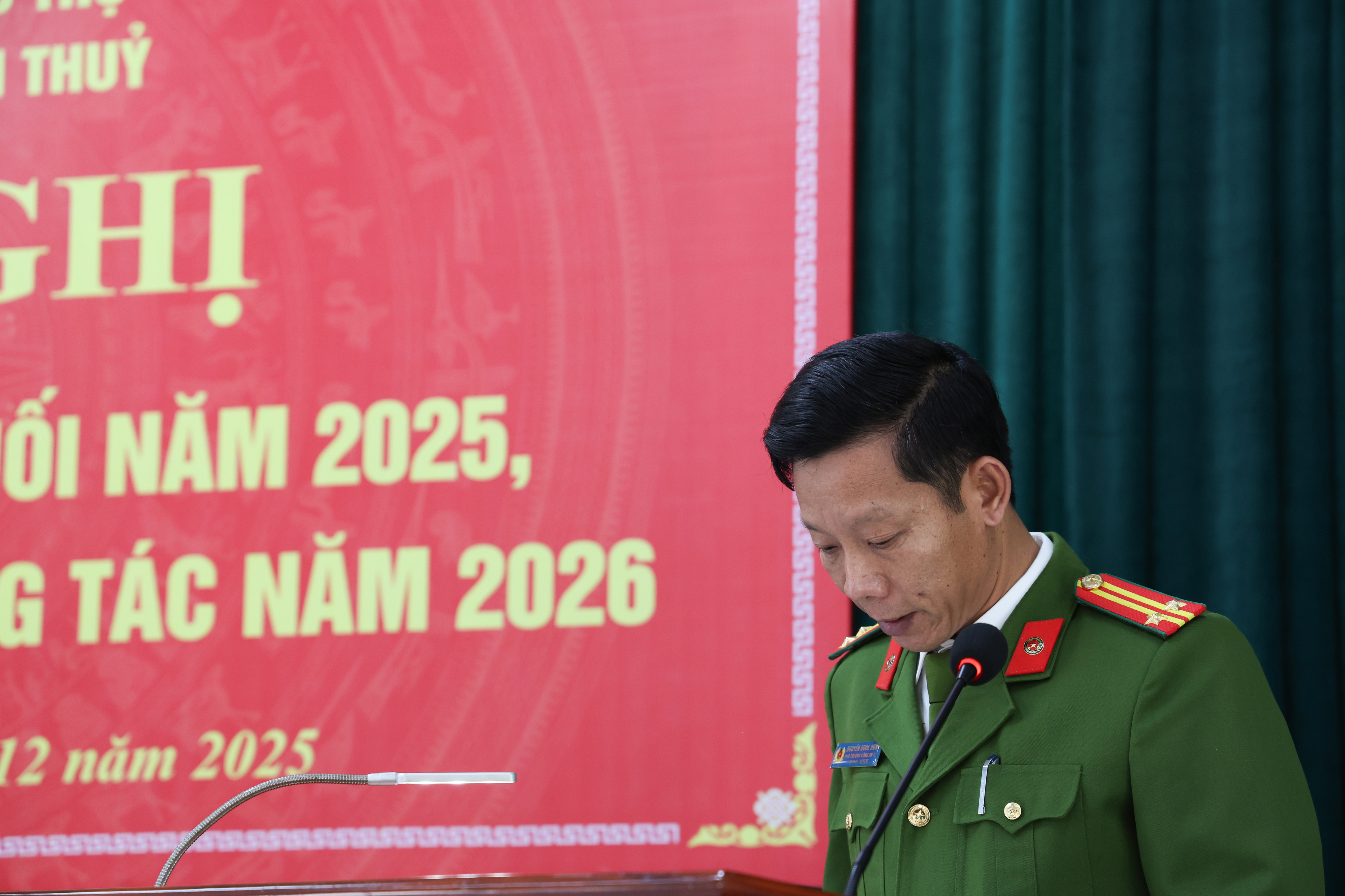 Lãnh đạo Công an xã trình bày báo cáo tổng kết năm 2025