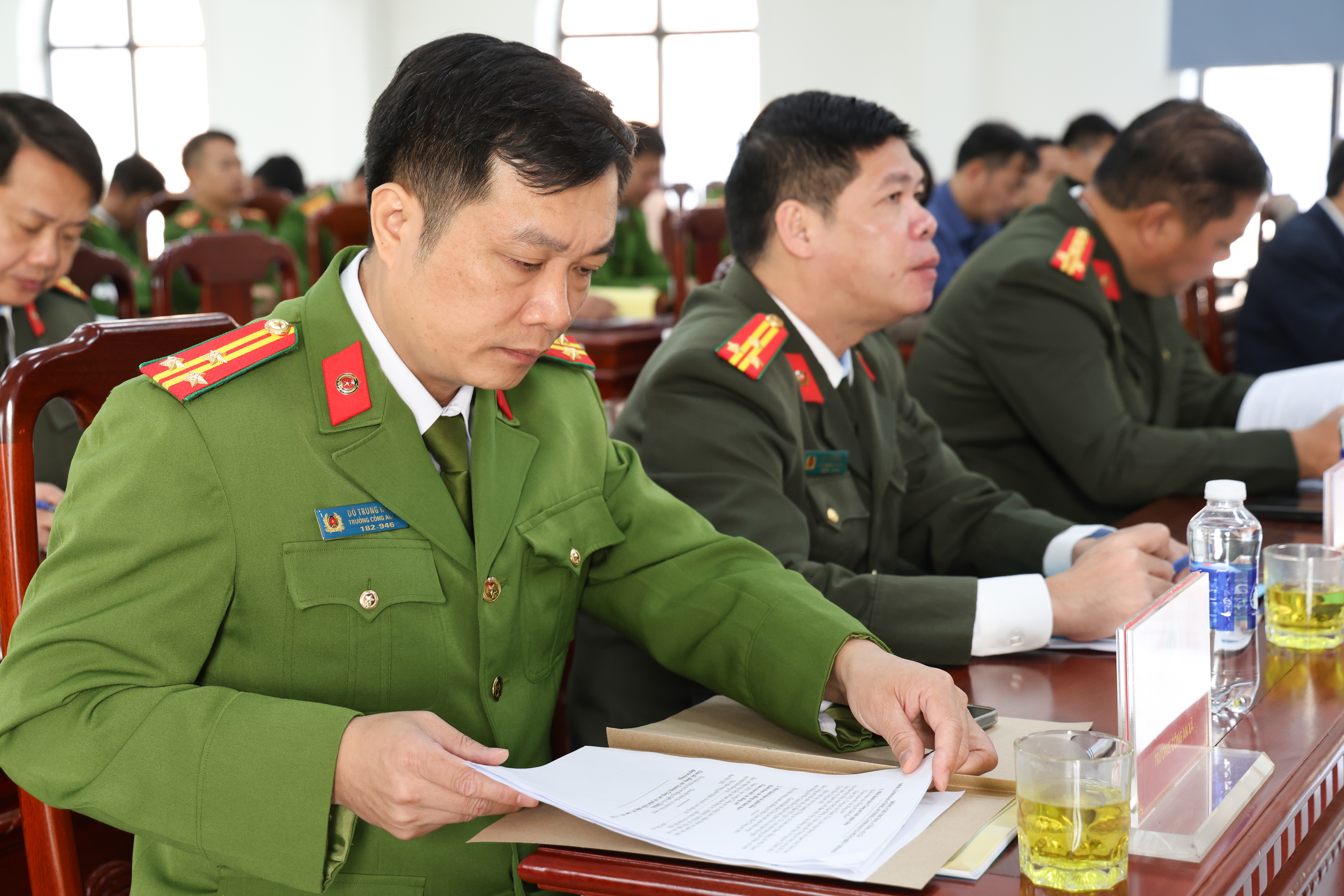 Đồng chí Trưởng Công an xã phát biểu tại hội nghị