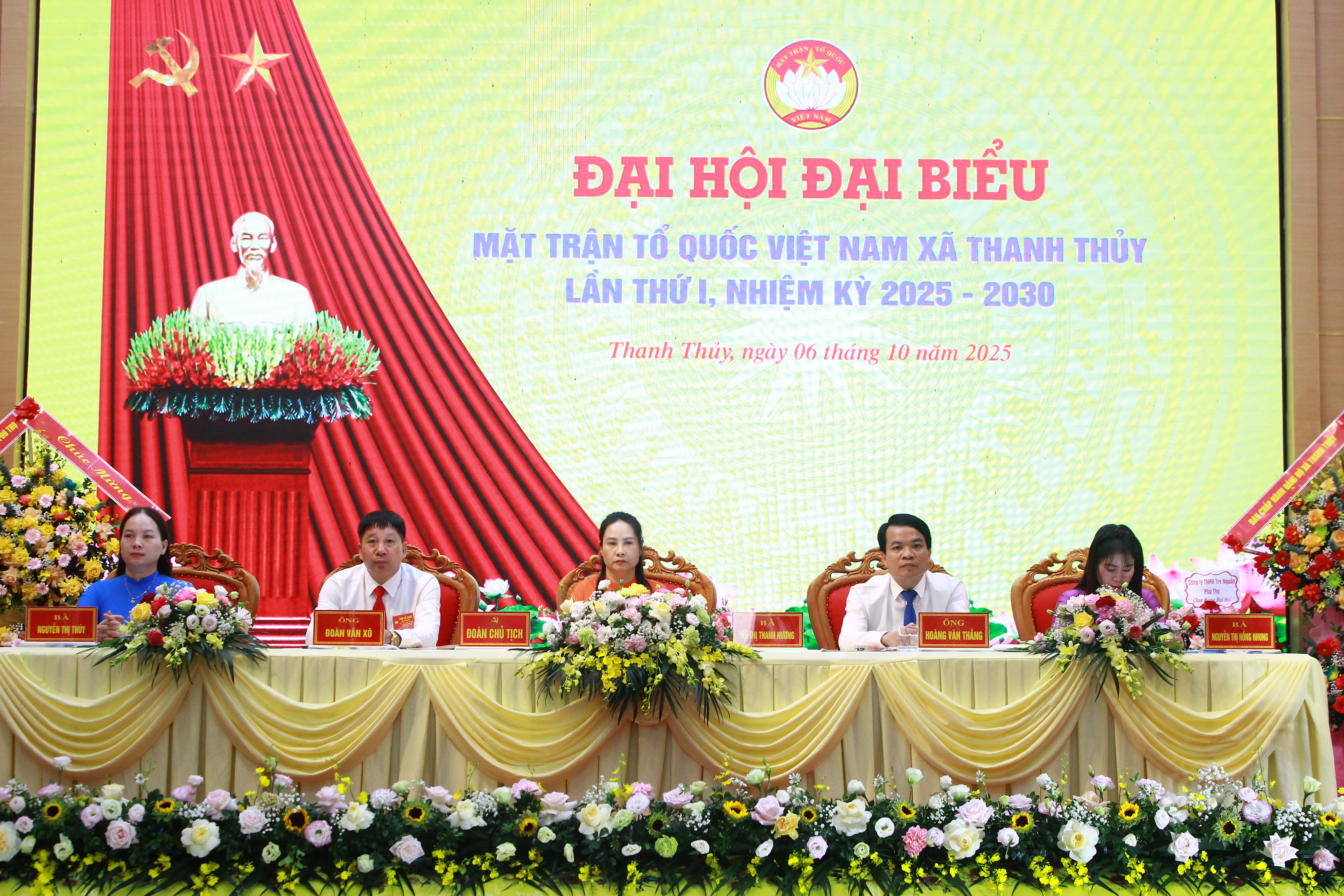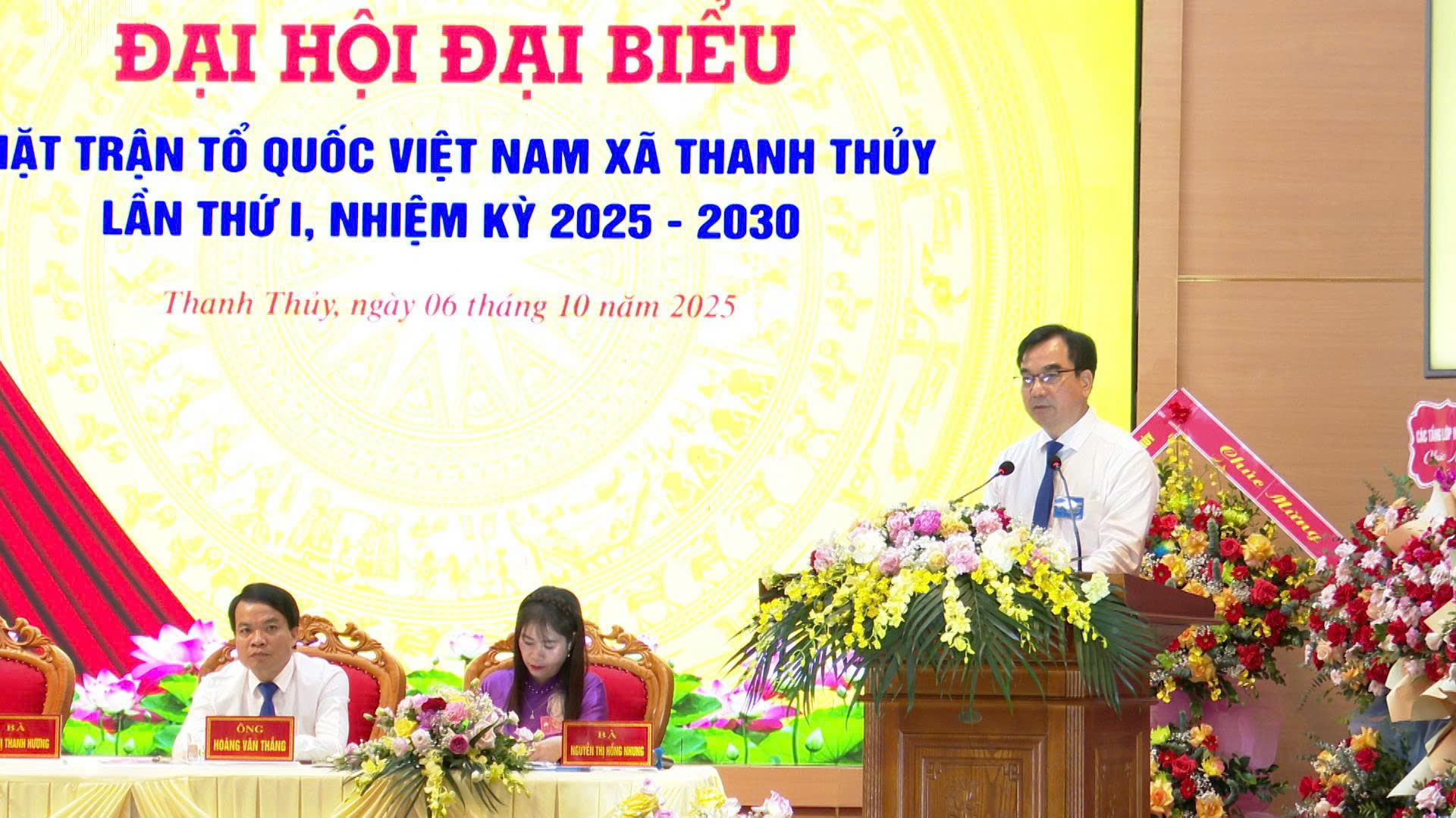 Sáng ngày 06/10, Ủy ban MTTQ Việt Nam xã Thanh Thuỷ tổ chức Đại hội đại biểu lần thứ I, nhiệm kỳ 2025-2030. Dự đại hội có đồng chí Trịnh Hùng Sơn - TUV, Bí thư Đảng uỷ, Chủ tịch HĐND xã; lãnh đạo Uỷ ban MTTQ tỉnh; đồng chí Nguyễn Minh Tân - Phó Bí thư Đảng uỷ, Chủ tịch UBND xã; đồng chí Vũ Minh Quốc - Phó Bí thư Thường trực Đảng uỷ; các đồng chí trong BTV Đảng uỷ; lãnh đạo các phòng, cơ quan, đơn vị và gần 100 đại biểu đại diện cho các tầng lớp nhân dân trên địa bàn xã.