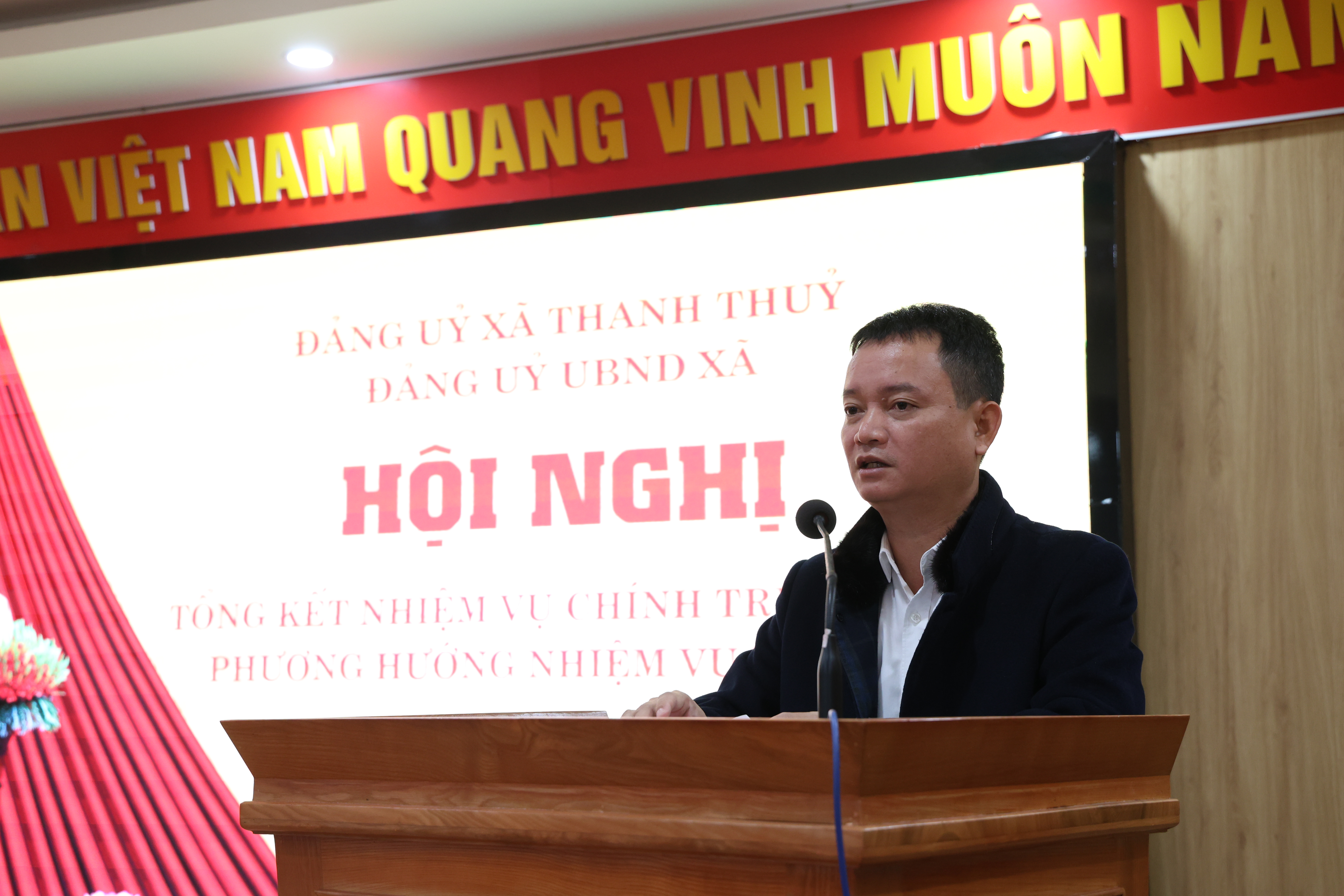 Phát biểu tại hội nghị, đồng chí Chủ tịch UBND xã Nguyễn Minh Tân ghi nhận và biểu dương tinh thần trách nhiệm, sự nỗ lực, đoàn kết của tập thể cán bộ, đảng viên Đảng bộ cơ quan UBND xã trong năm đầu tiên đi vào hoạt động theo mô hình tổ chức mới; nhấn mạnh những kết quả đạt được đã góp phần quan trọng vào việc ổn định bộ máy, nâng cao hiệu lực, hiệu quả quản lý, điều hành của chính quyền xã sau sáp nhập. Đồng chí đề nghị các phòng chuyên môn tiếp tục phối hợp với các cơ quan, đơn vị thực hiện đồng bộ các giải pháp phát triển du lịch, dịch vụ; tiếp tục quan tâm, thực hiện tốt công tác giải phóng mặt bằng; chú trọng, nâng cao chất lượng đời sống cho người dân cũng như thực hiện các chính sách an sinh xã hội; phối hợp với Trung tâm Y tế khu vực Thanh Thuỷ nâng cao chất lượng khám, chữa bệnh ban đầu cho người dân, tăng tỷ lệ bao phủ bảo hiểm y tế toàn dân; Nâng cao chất lượng cải cách thủ tục hành chính, chuyển đổi số đáp ứng nhu cầu của người dân và doanh nghiệp; Đồng chí đặc biệt yêu cầu mỗi cán bộ, đảng viên, công chức, viên chức cần củng cố đoàn kết, phát huy bản lĩnh, trí tuệ, linh hoạt trong tham mưu và tổ chức thực hiện nhiệm vụ, có nhận thức rõ ràng về trách nhiệm trong bối cảnh mới, góp phần củng cố vị thế, xây dựng chính quyền địa phương hoạt động hiệu lực, hiệu quả, hoàn thành tốt nhiệm vụ năm 2026.