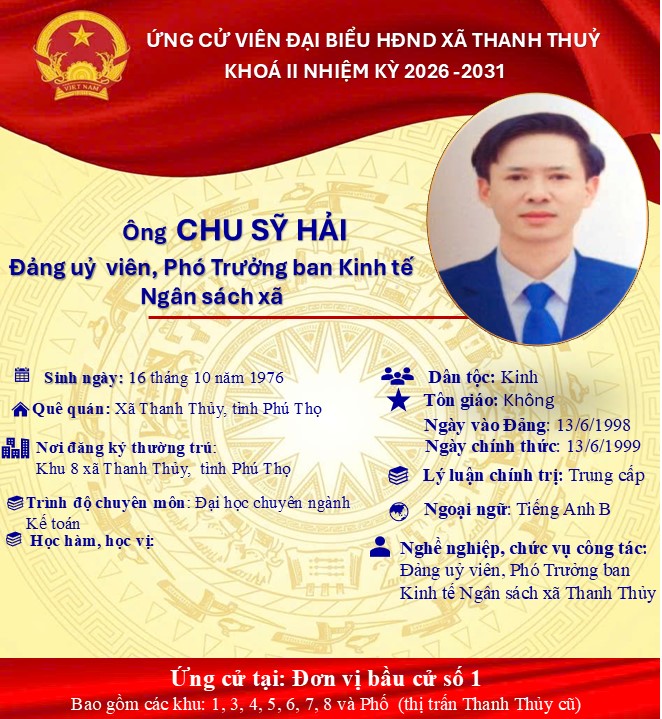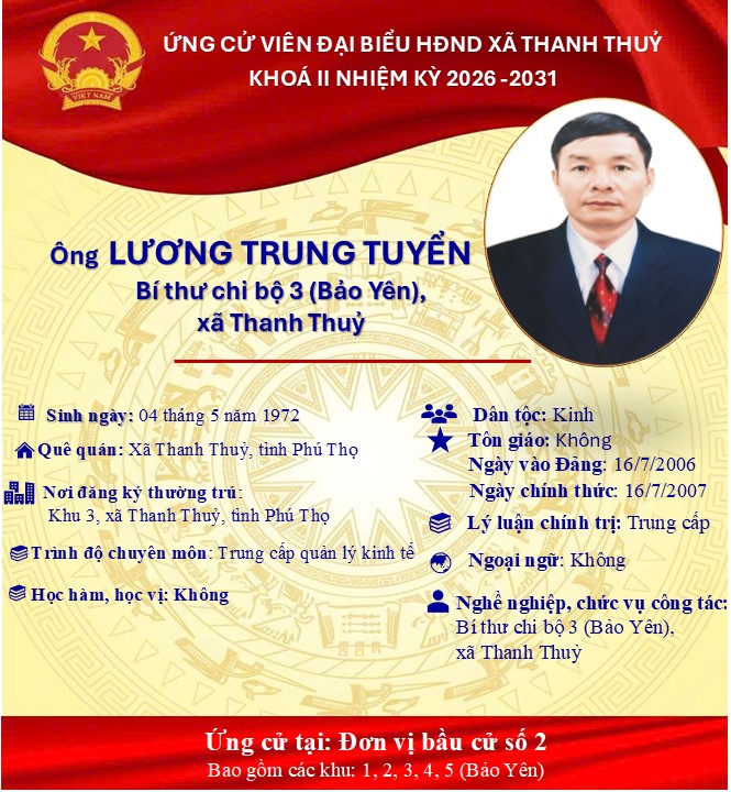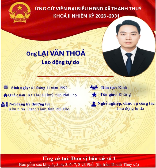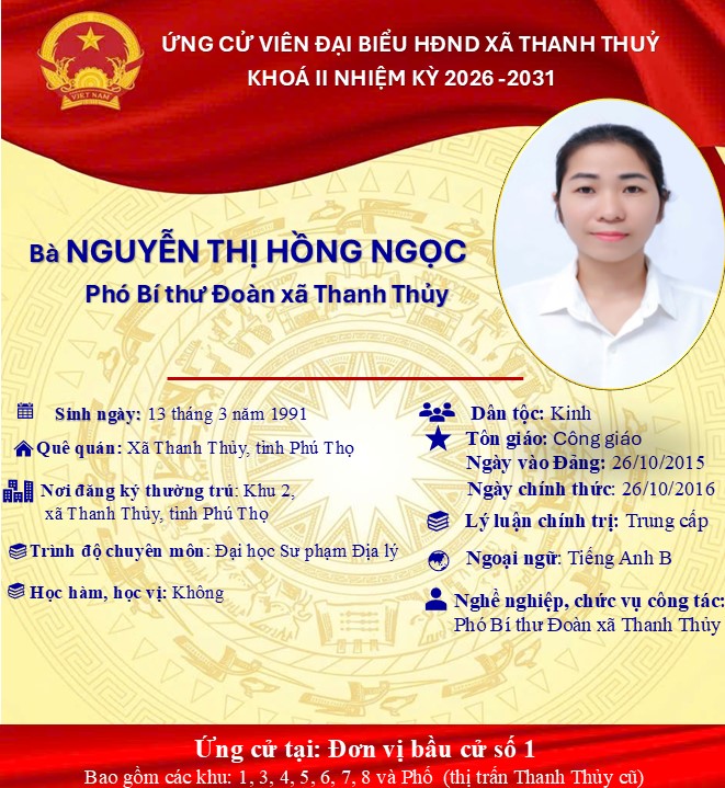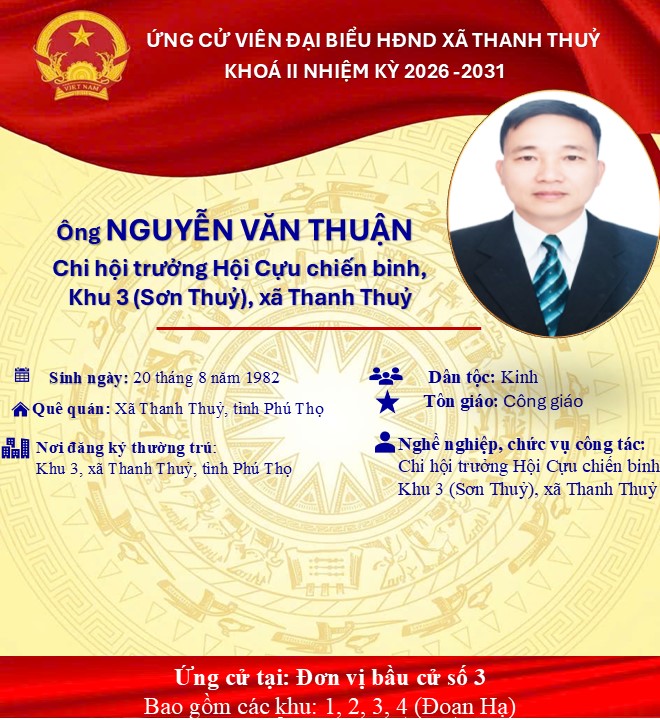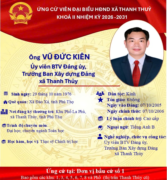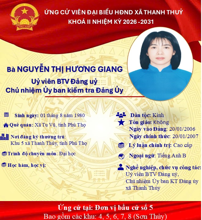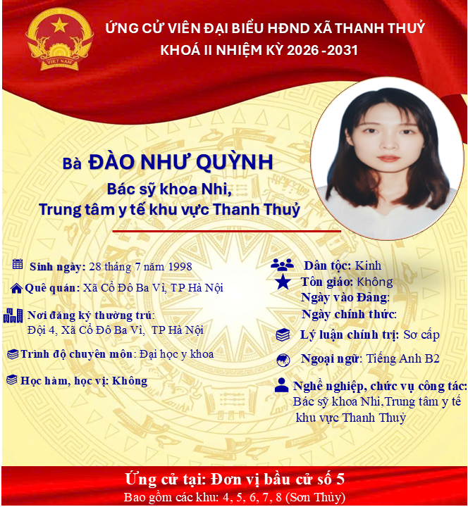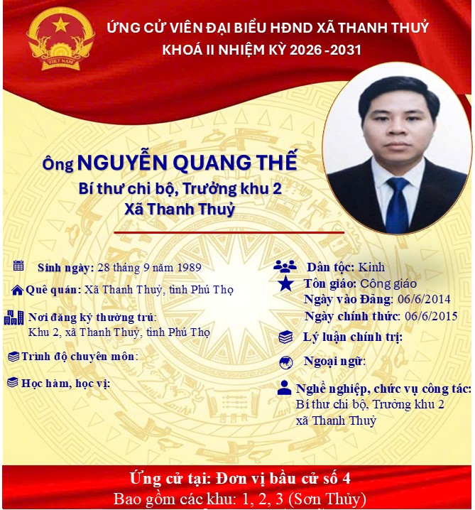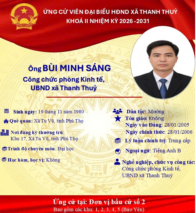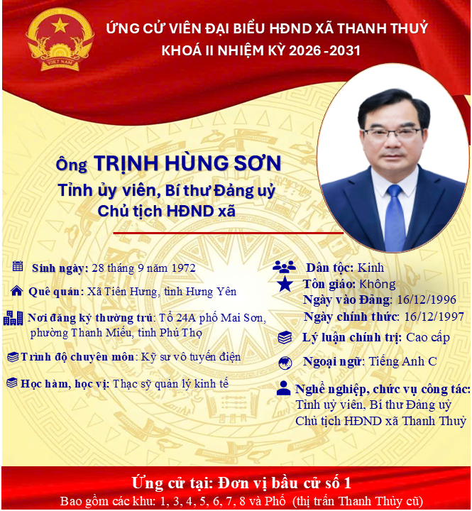 Thông tin tóm tắt lý lịch của 34 ứng cử viên Đại biểu HĐND xã Thanh Thuỷ khoá II nhiệm kỳ 2026 - 2031