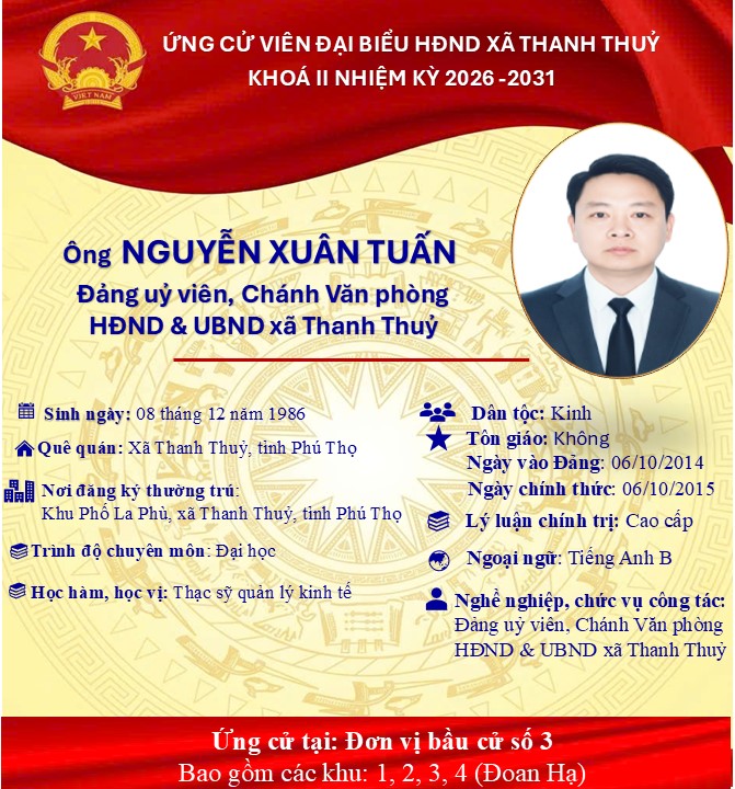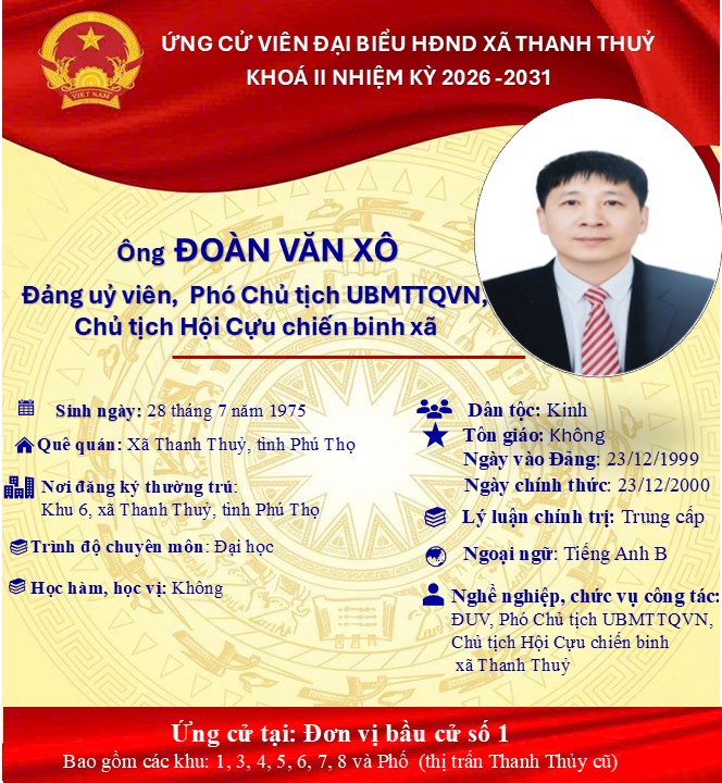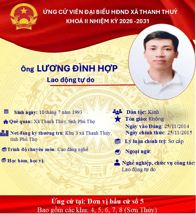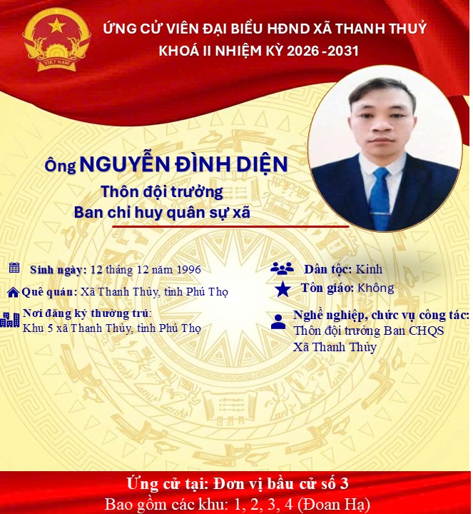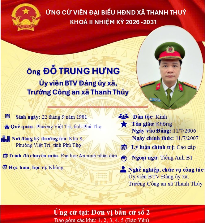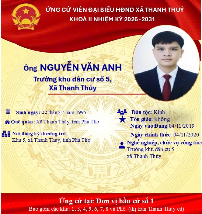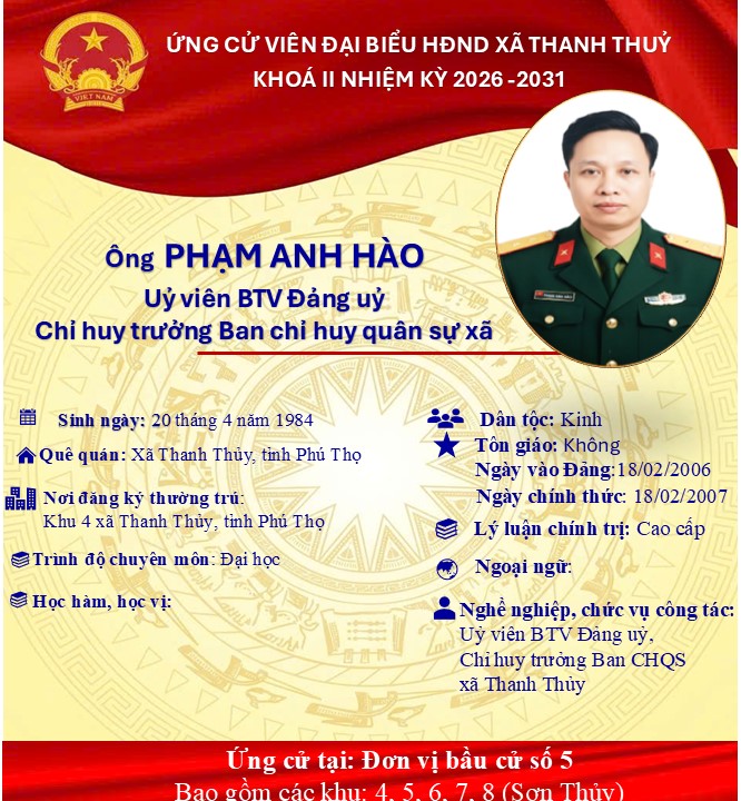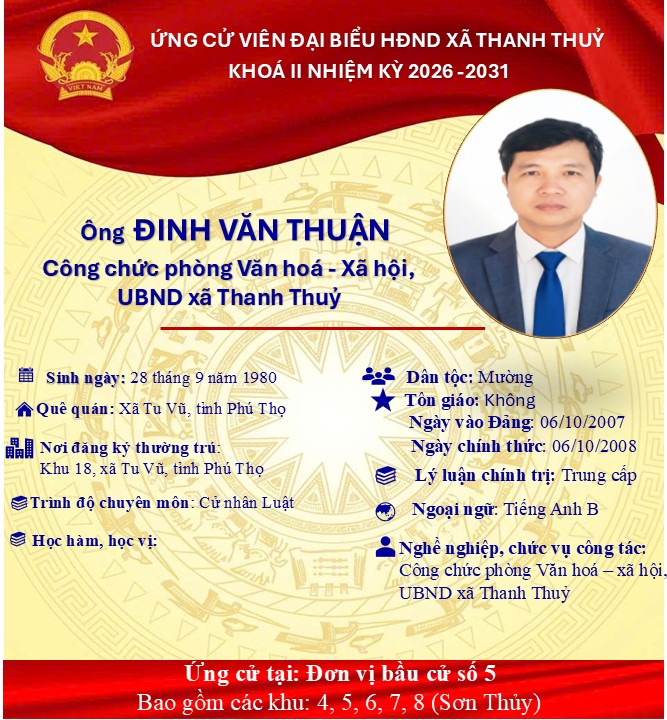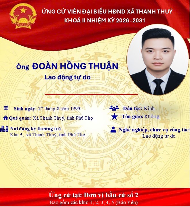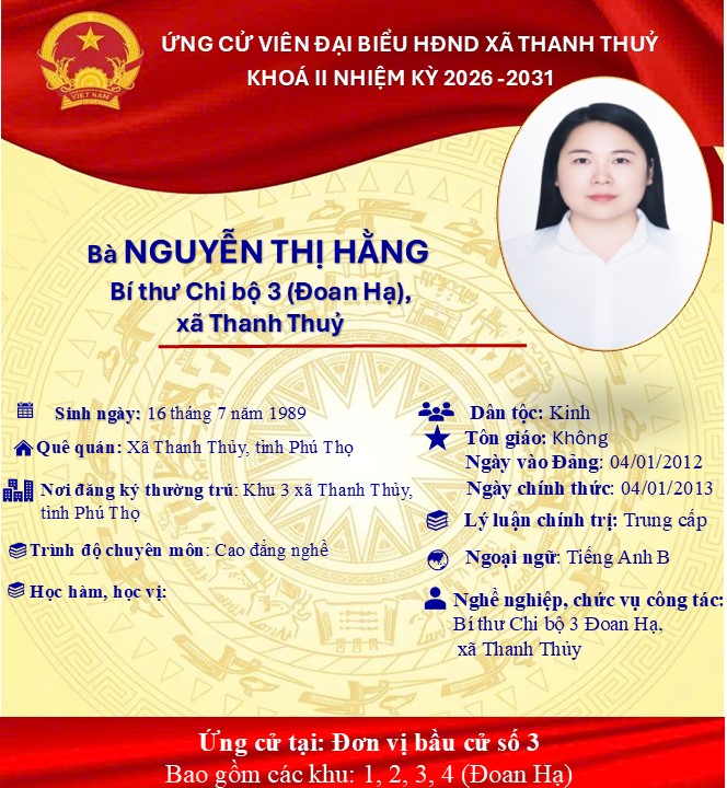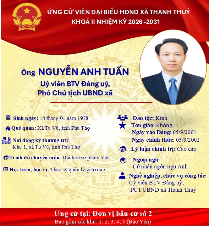 Thông tin tóm tắt lý lịch của 34 ứng cử viên Đại biểu HĐND xã Thanh Thuỷ khoá II nhiệm kỳ 2026 - 2031