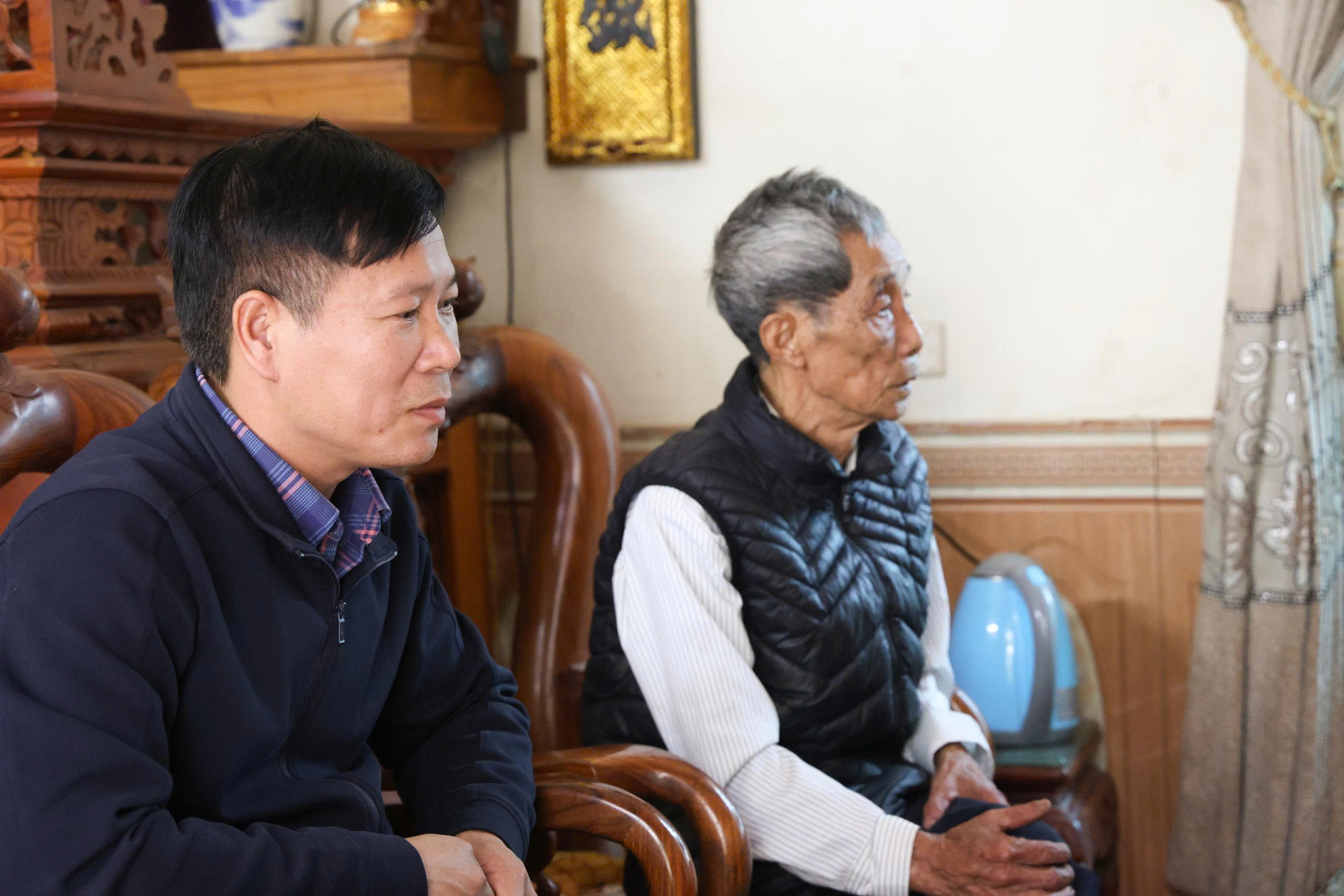 Đồng chí Trịnh Hùng Sơn - TUV, Bí thư Đảng uỷ, Chủ tịch HĐND xã thăm, tặng quà Tết gia đình ông Kiều Thế Khanh - Nạn nhân CĐDC