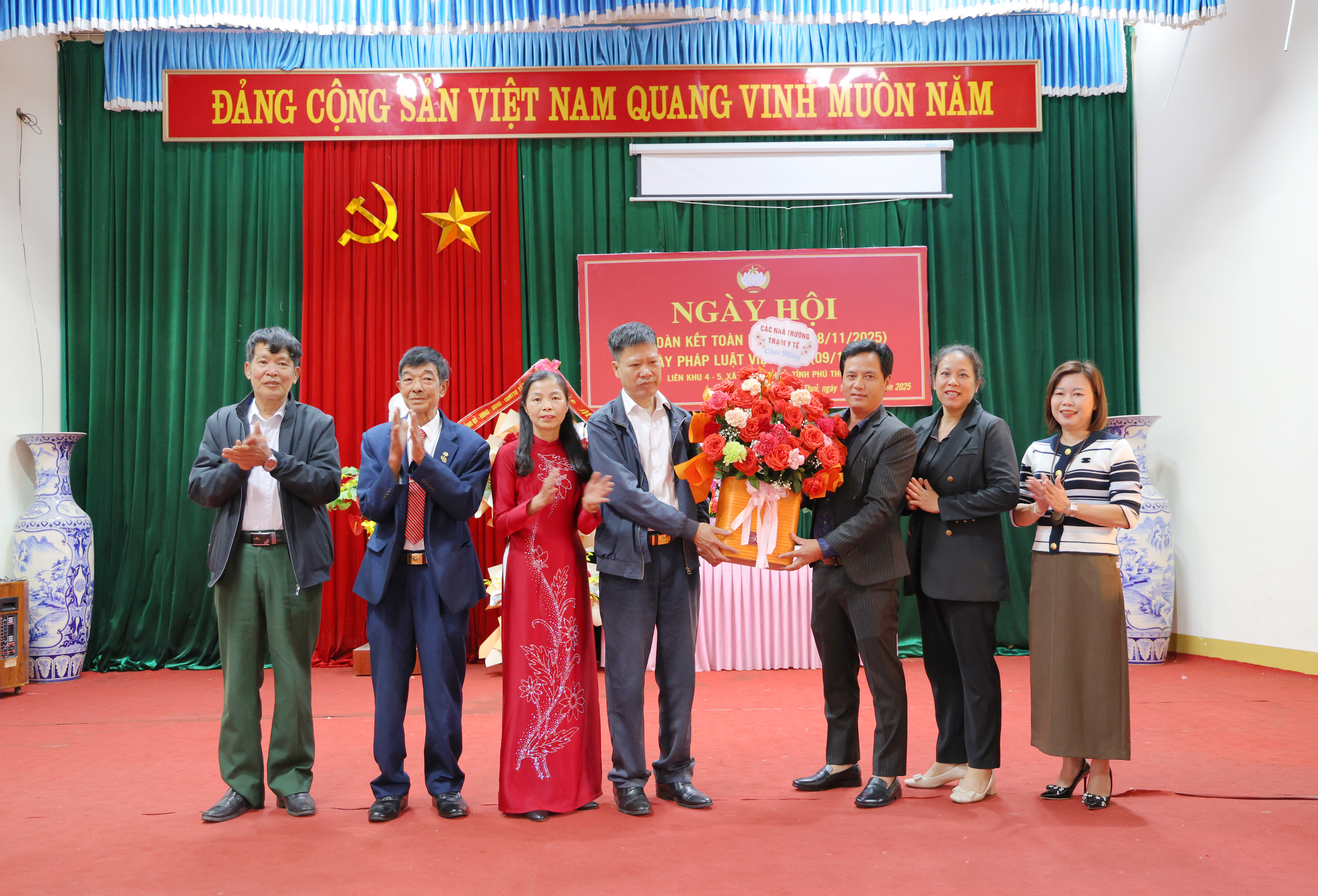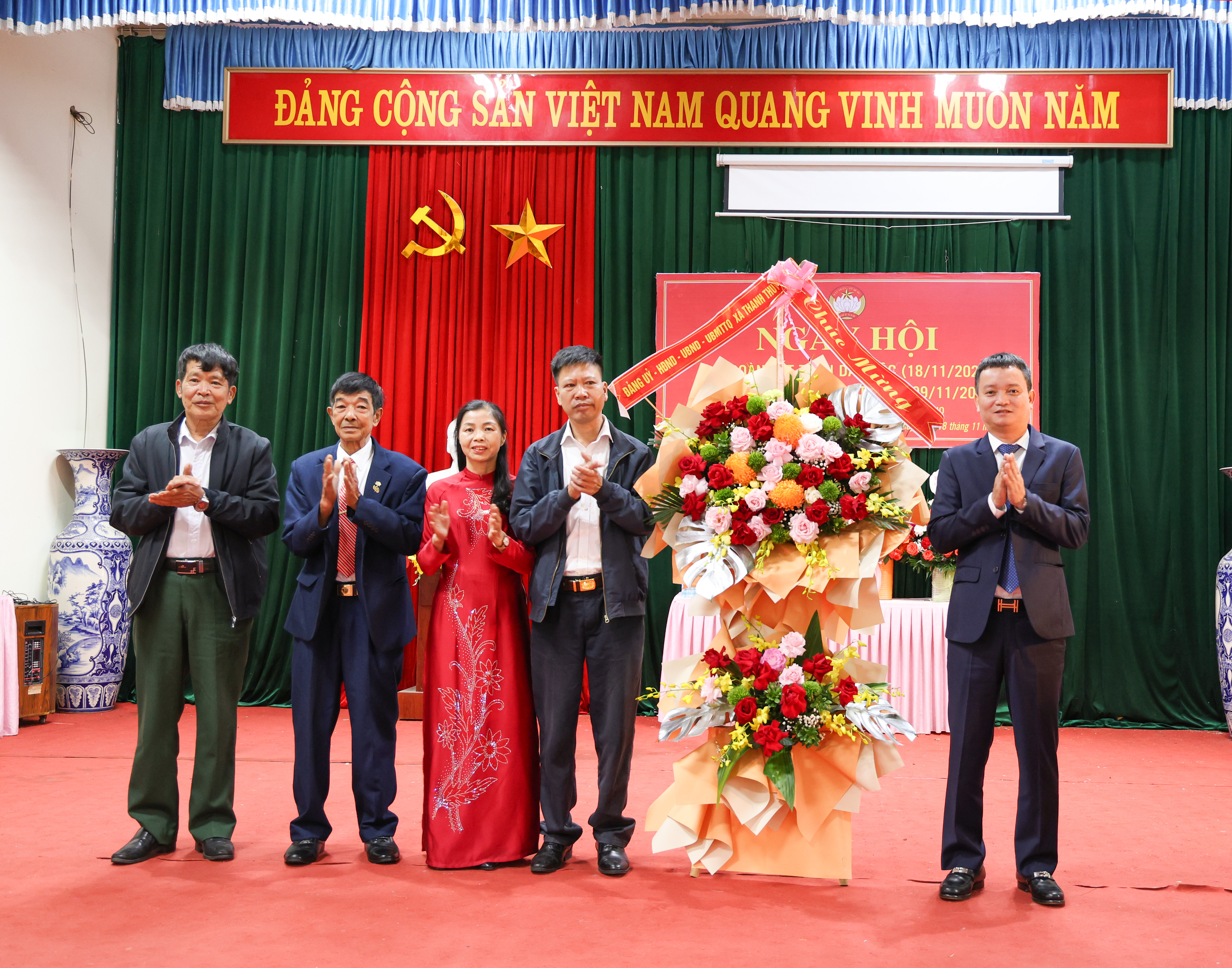 Đồng chí Chủ tịch UBND xã tặng hoa chúc mừng cán bộ, đảng viên và Nhân dân liên khu 4 - 5