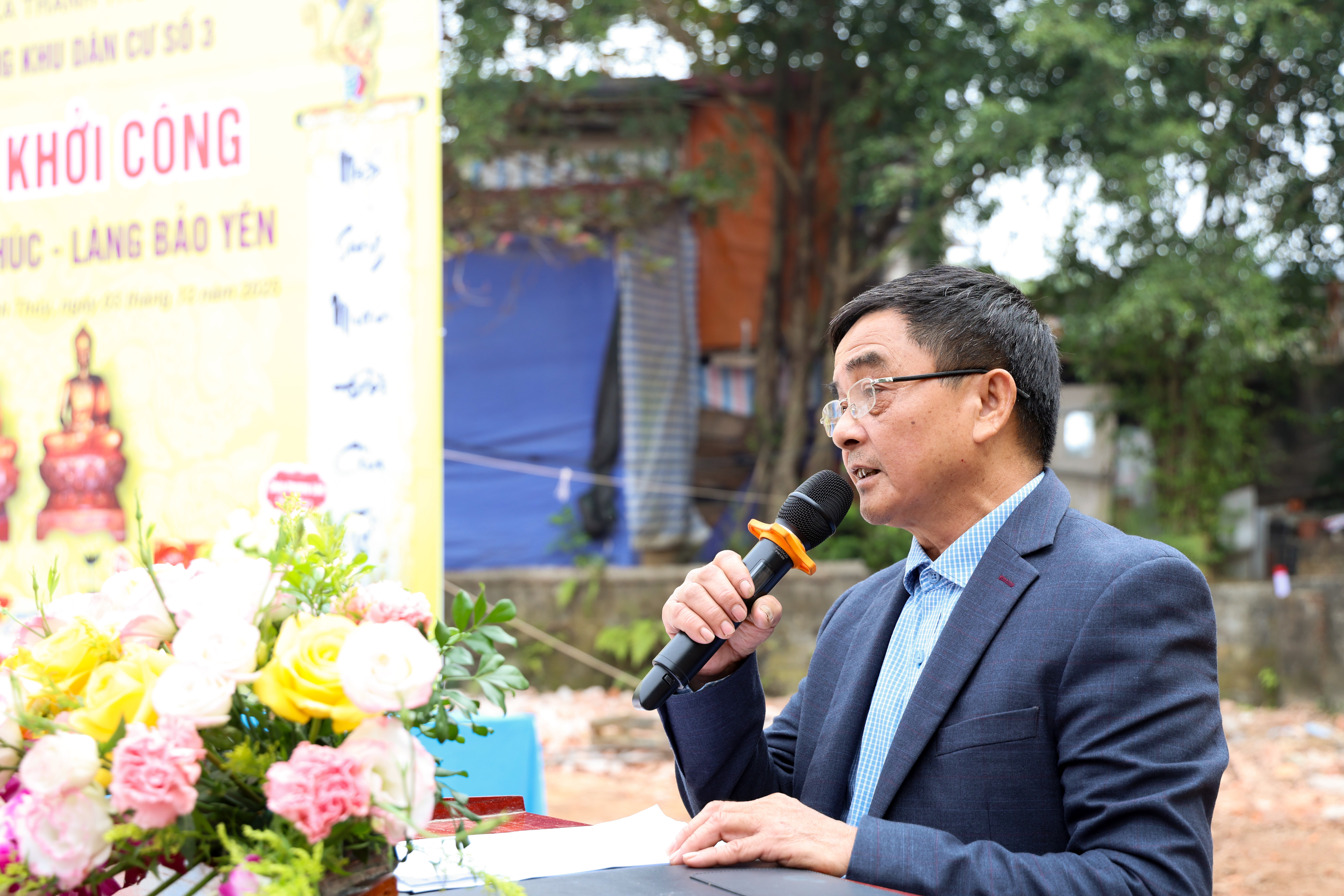 Các đồng chí lãnh đạo xã Thanh Thuỷ cùng các đại biểu làm lễ động thổ xây dựng Chùa Ninh Phúc làng Bảo Yên