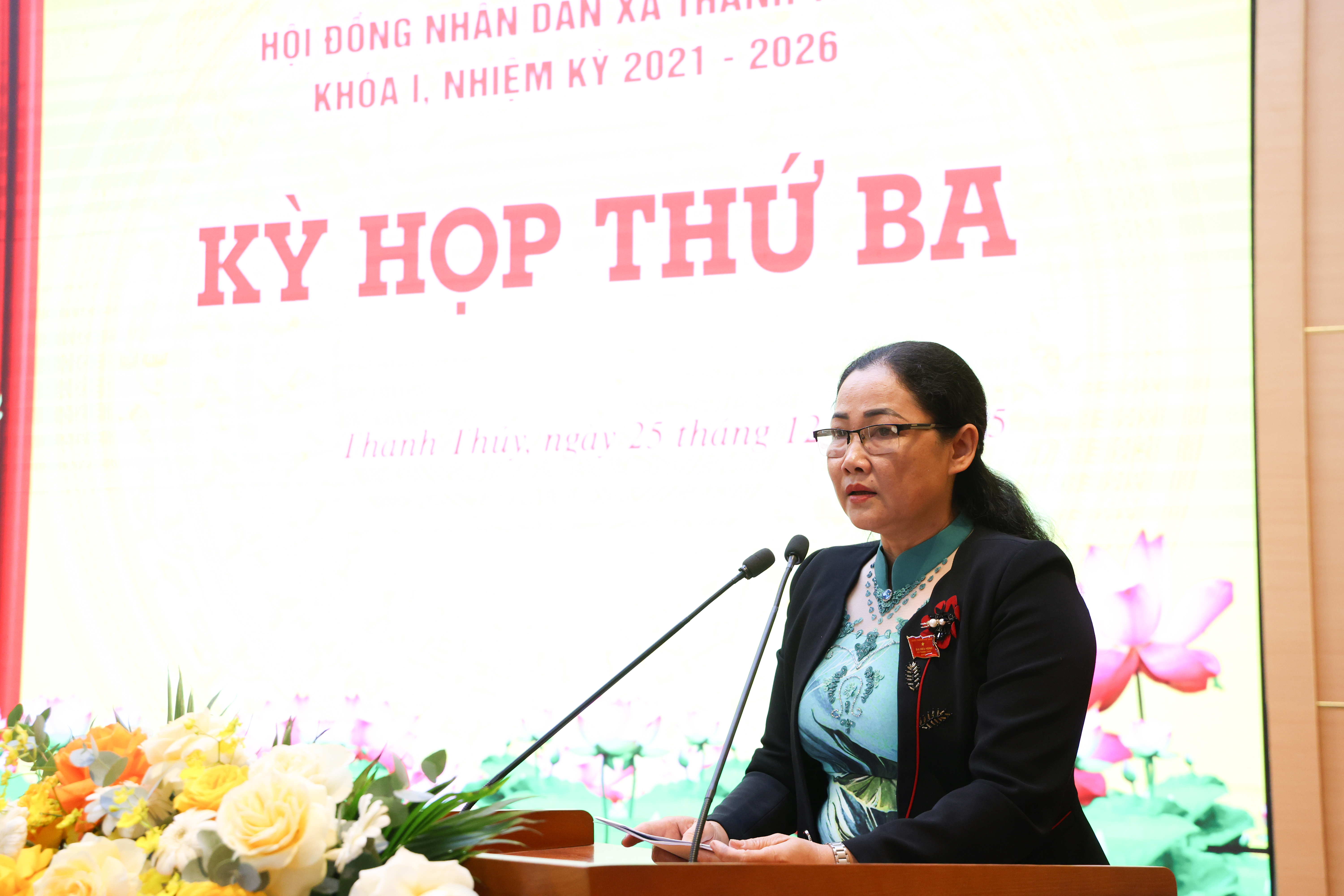 Đồng chí Nguyễn Thị Thanh Huyền - Ủy viên Ban Thường vụ Tỉnh ủy, Phó Bí thư Thường trực chuyên trách Đảng ủy các cơ quan Đảng tỉnh, Trưởng ban Dân tộc HĐND tỉnh và các đại biểu dự kỳ họp