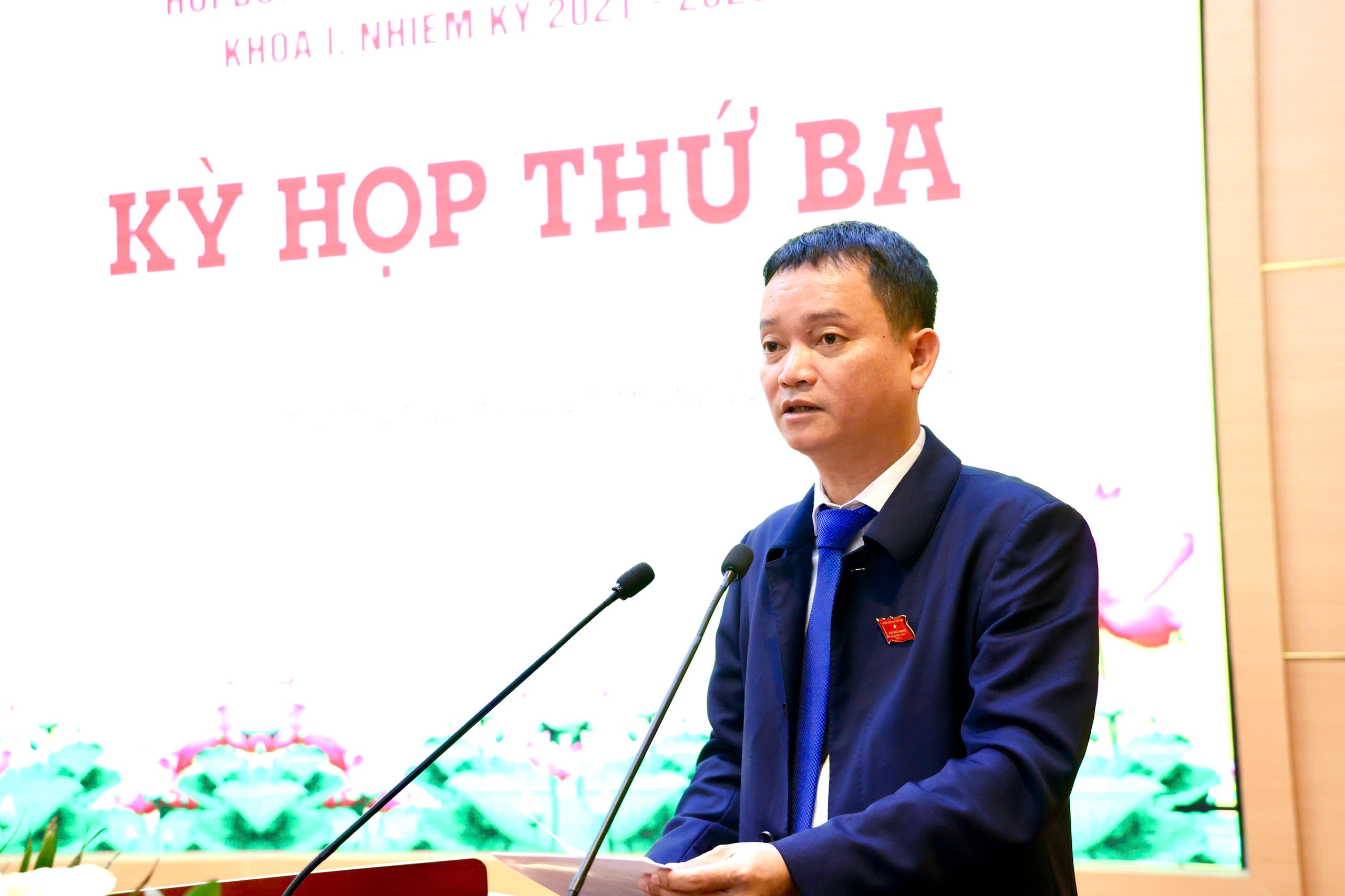 Đồng chí Nguyễn Minh Tân - Phó Bí thư Đảng uỷ, Chủ tịch UBND xã phát biểu tại kỳ họp