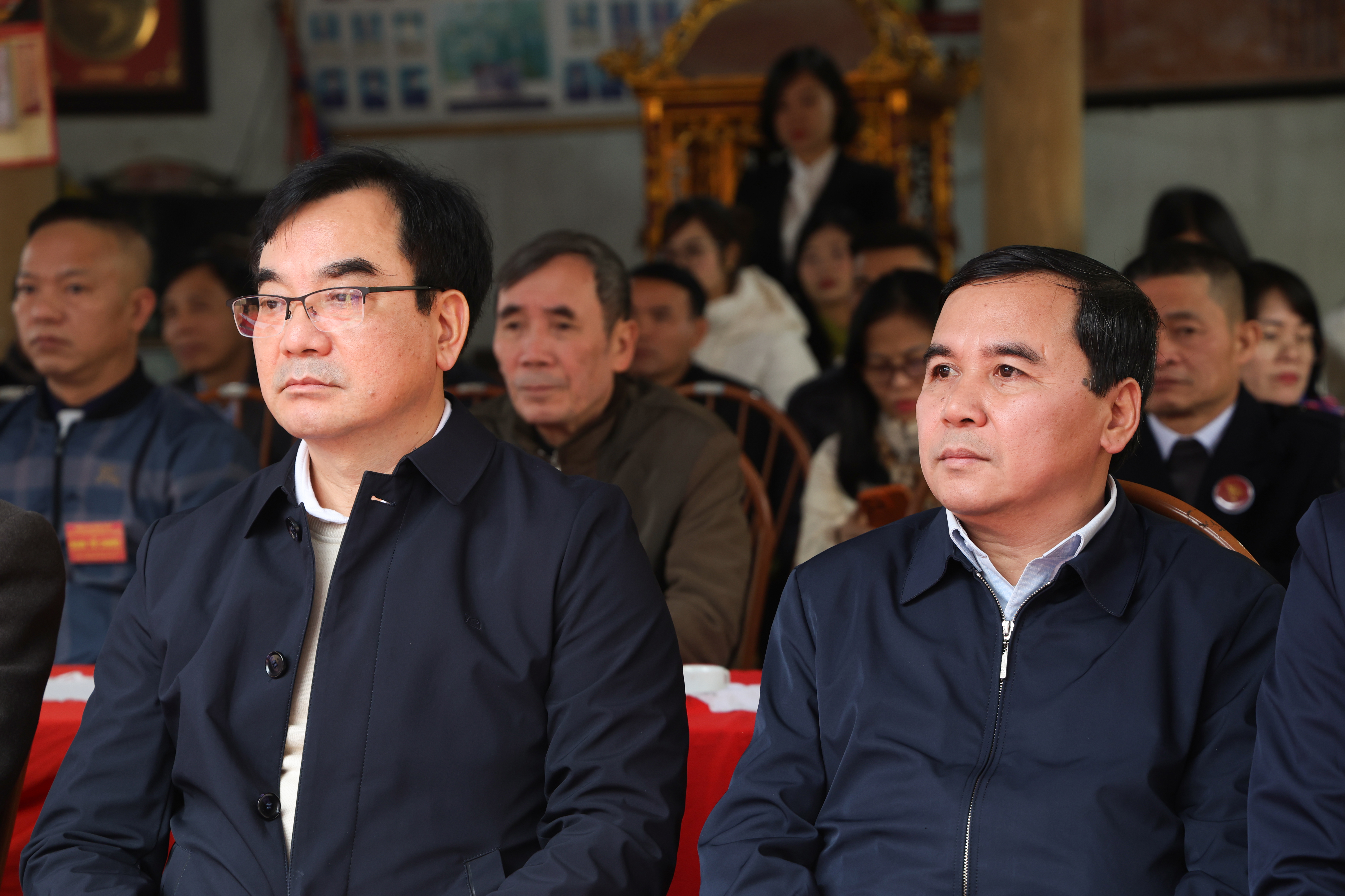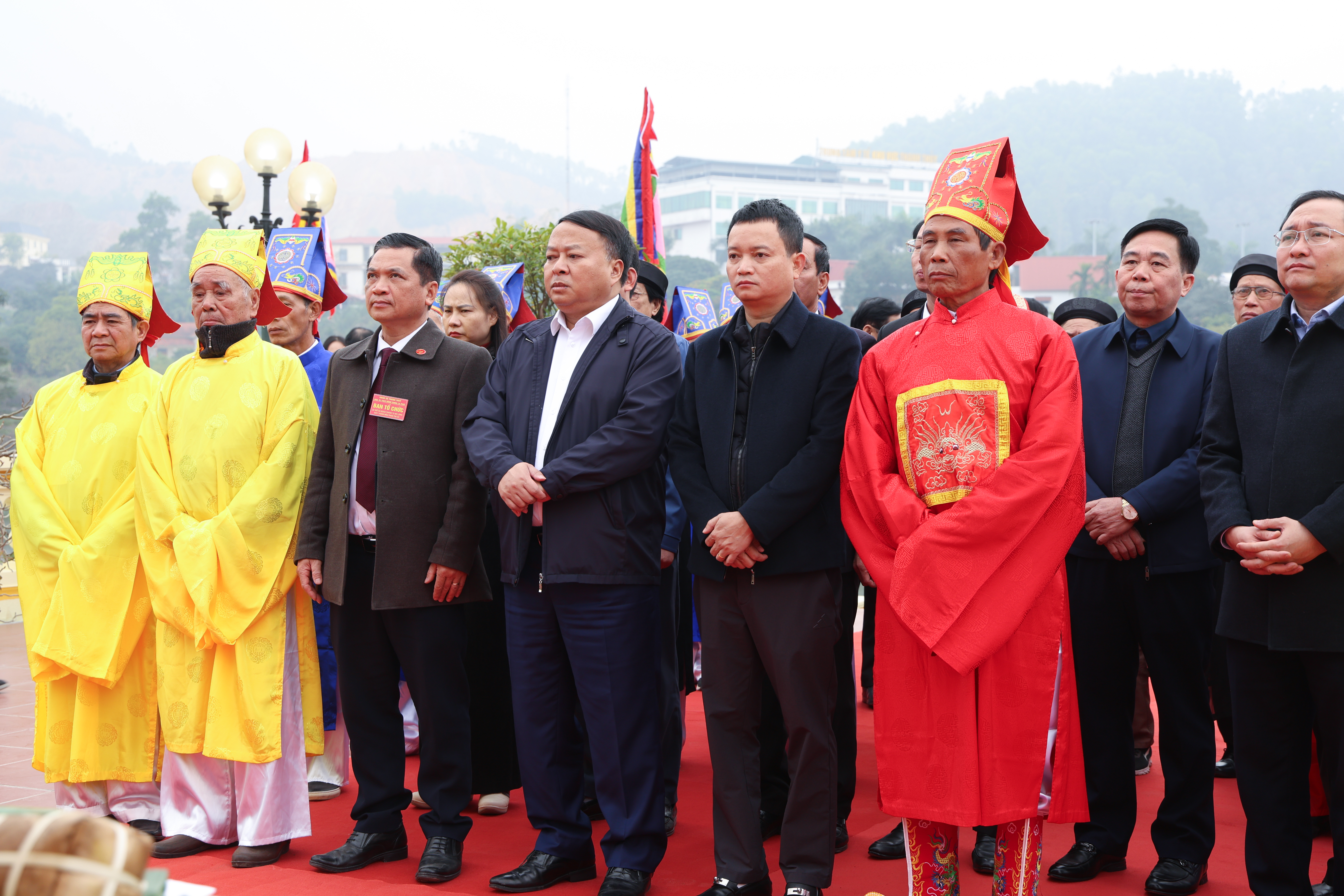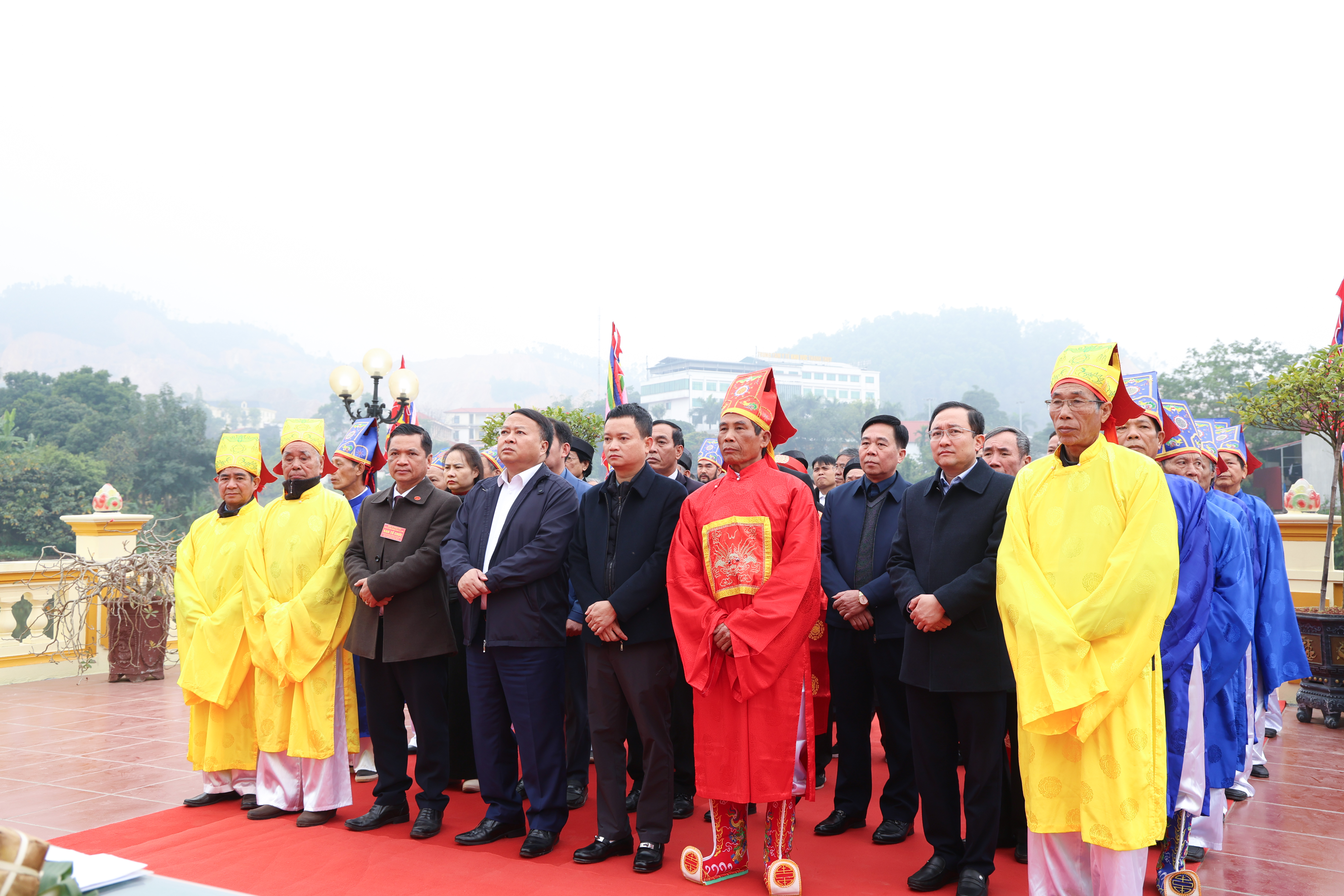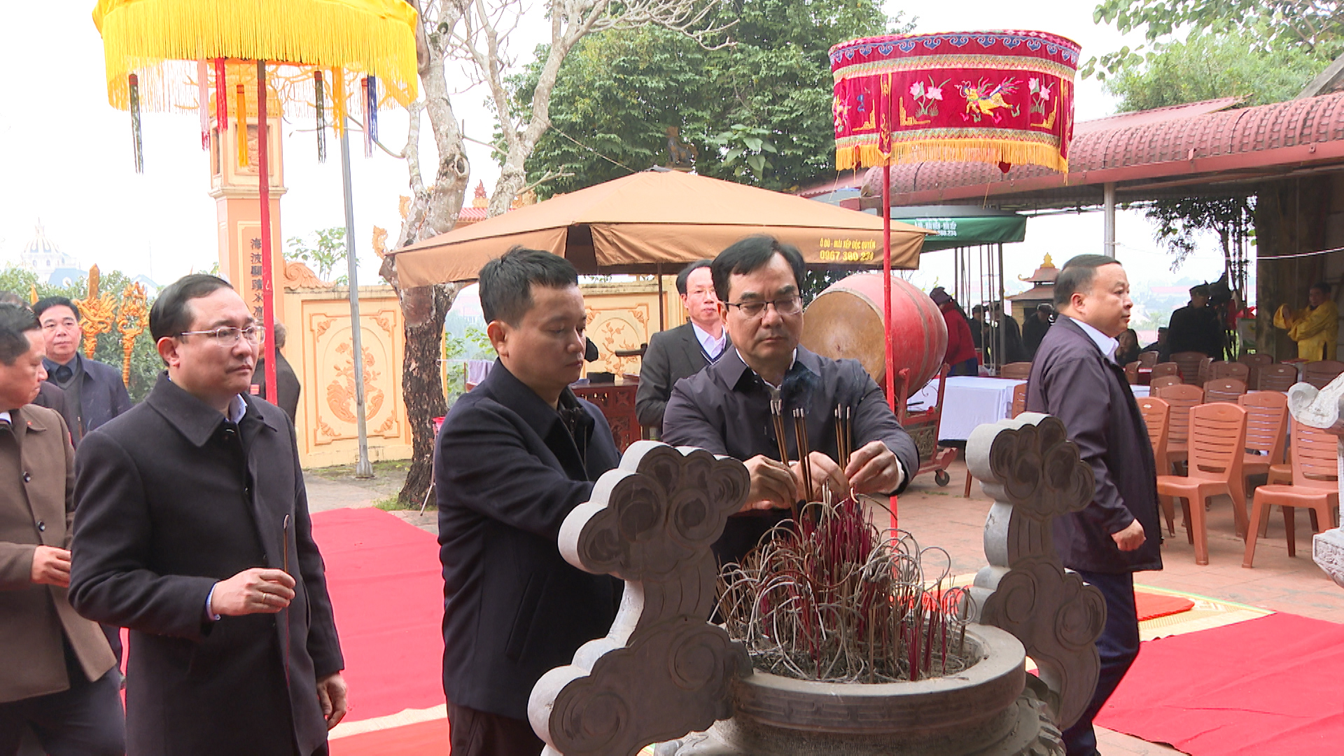 Đồng chí Chủ tịch UBND tỉnh Tuyên Quang Phan Huy Ngọc và đồng chí Chủ tịch UBND xã Nguyễn Minh Tân cùng các đại biểu dự tại Lăng Đức Thánh mẫu