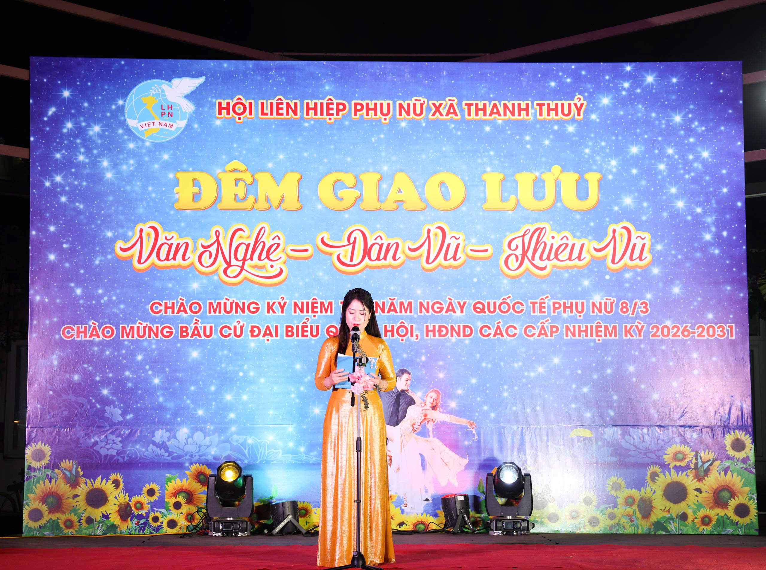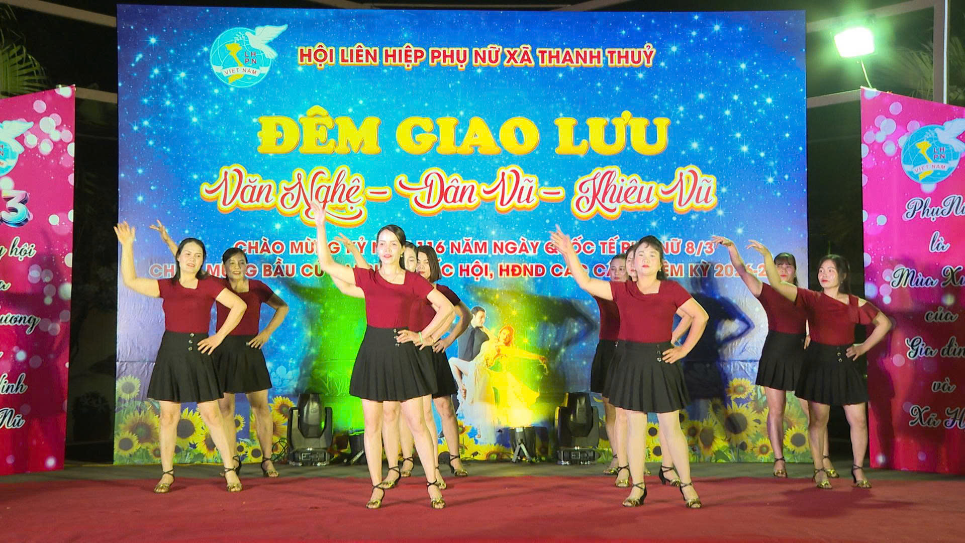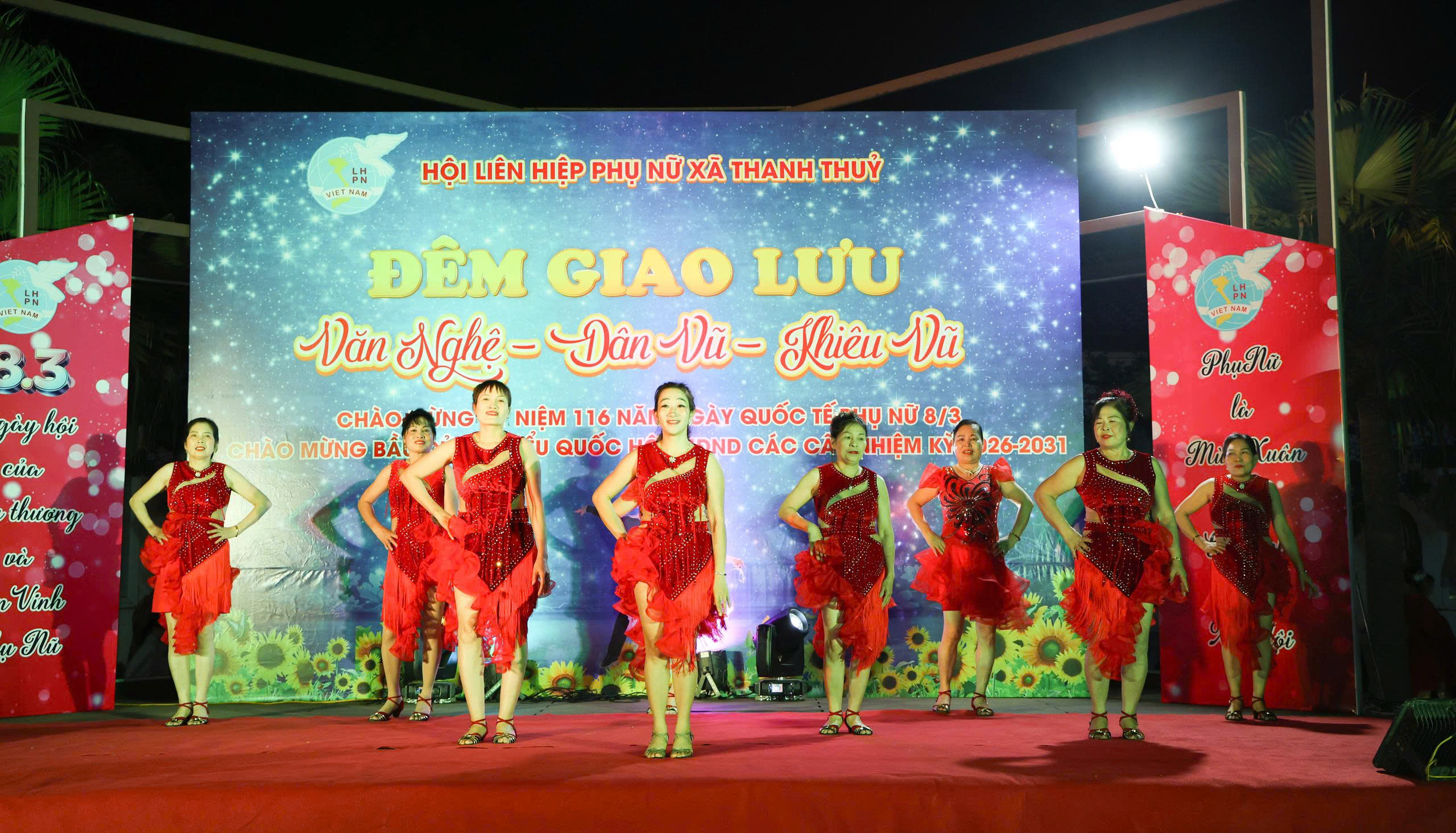 Hòa chung không khí thi đua sôi nổi của phụ nữ cả nước hướng tới những sự kiện trọng đại của quê hương, đất nước, tối ngày 6/3/2026, Hội LHPN xã Thanh Thuỷ tổ chức Đêm giao lưu văn nghệ - dân vũ - khiêu vũ với chủ đề "Chào mừng cuộc bầu cử Đại biểu Quốc hội khóa XVI và Đại biểu HĐND các cấp, nhiệm kỳ 2026-2031; chào mừng kỷ niệm 116 năm ngày Quốc tế phụ nữ 8/3 (8/3/1910-8/3/2026).