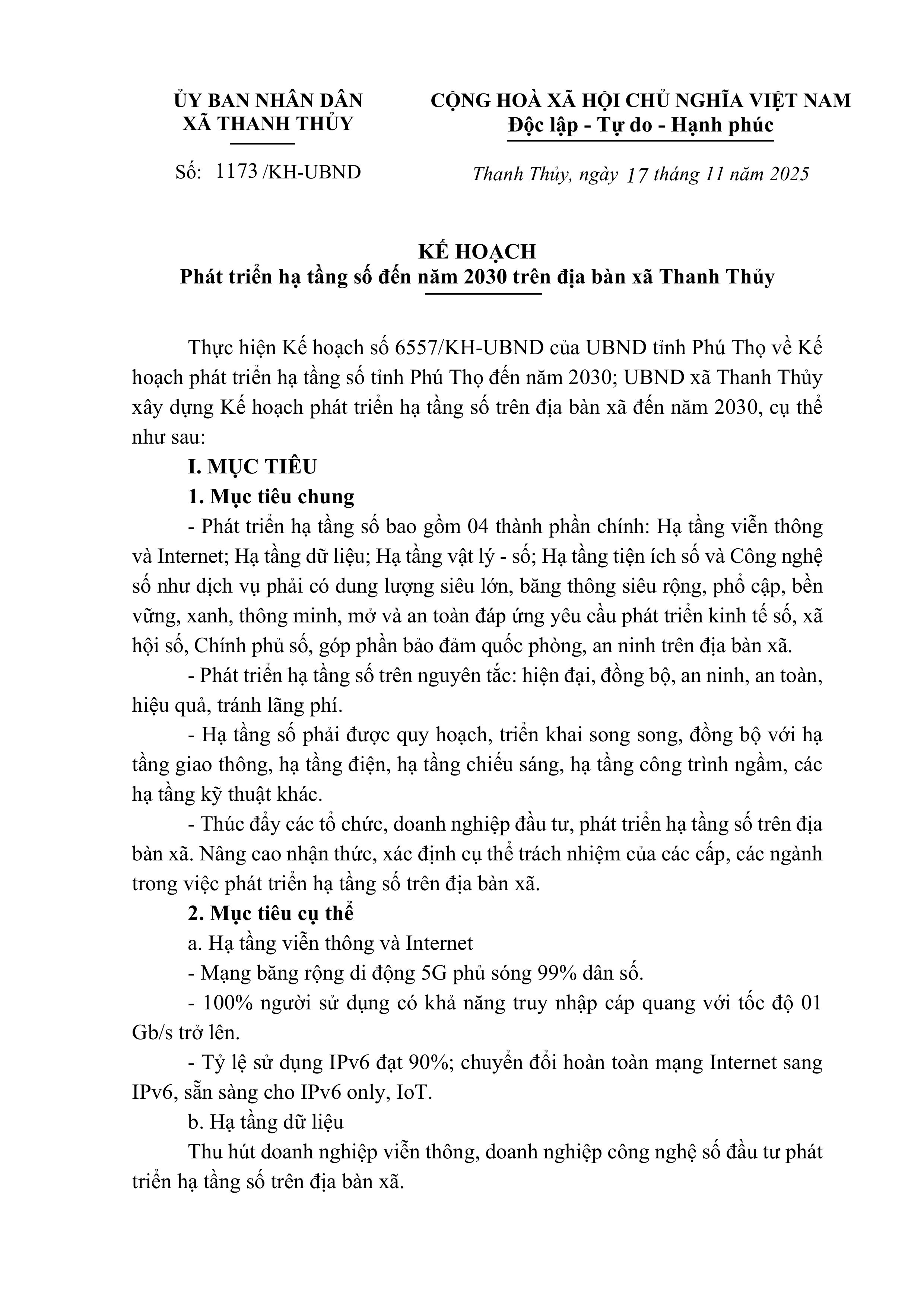 • Kế hoạch Phát triển hạ tầng số đến năm 2030 trên địa bàn xã Thanh Thủy (28/11/2025 4:01:55 CH)