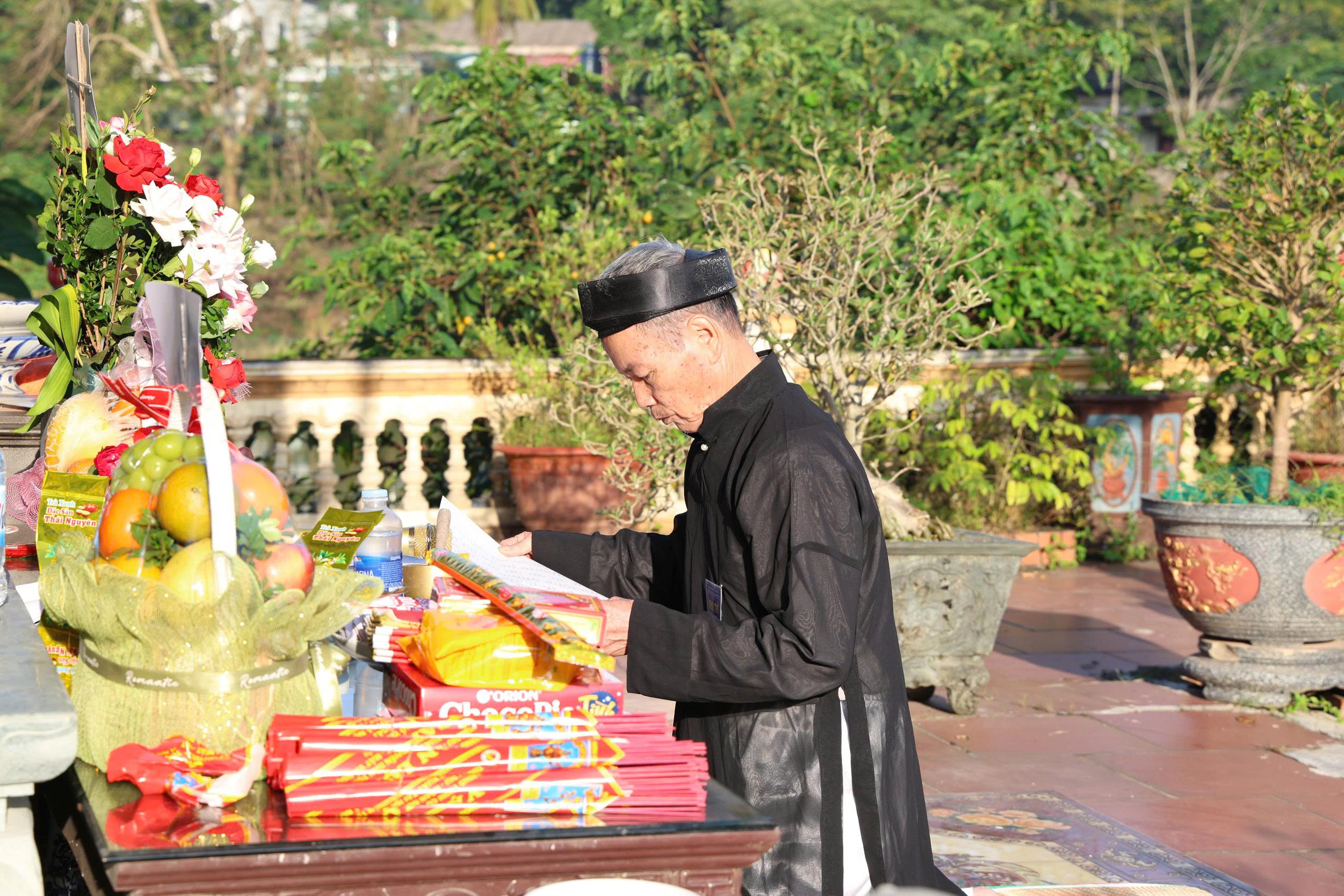 Thủ từ Lăng Mẫu làm lễ dâng thổ thần, thổ địa trước Lễ dâng hương