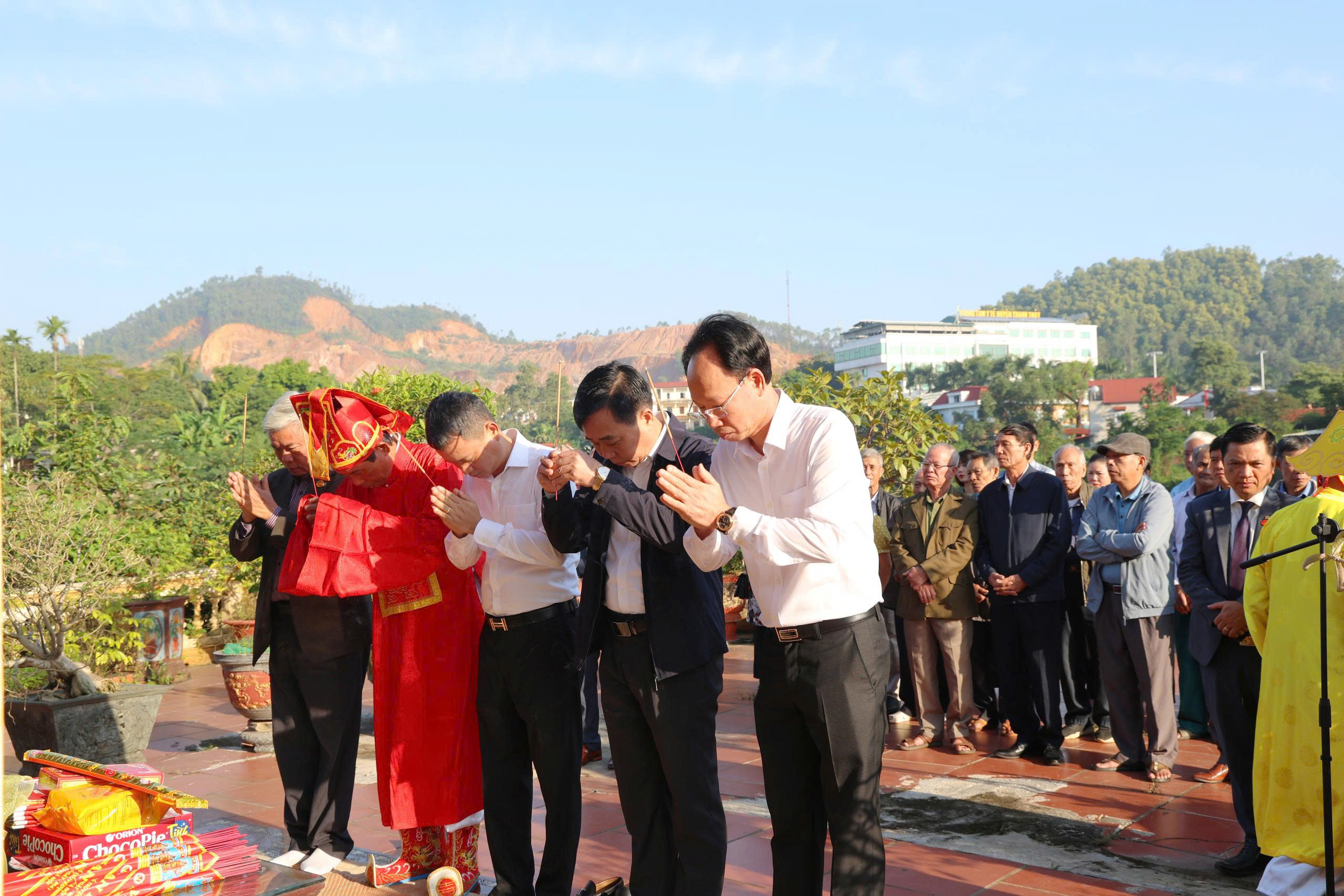 Đồng chí Chủ tịch UBND xã Nguyễn Minh Tân và các đại biểu dâng hương lên Thánh Mẫu