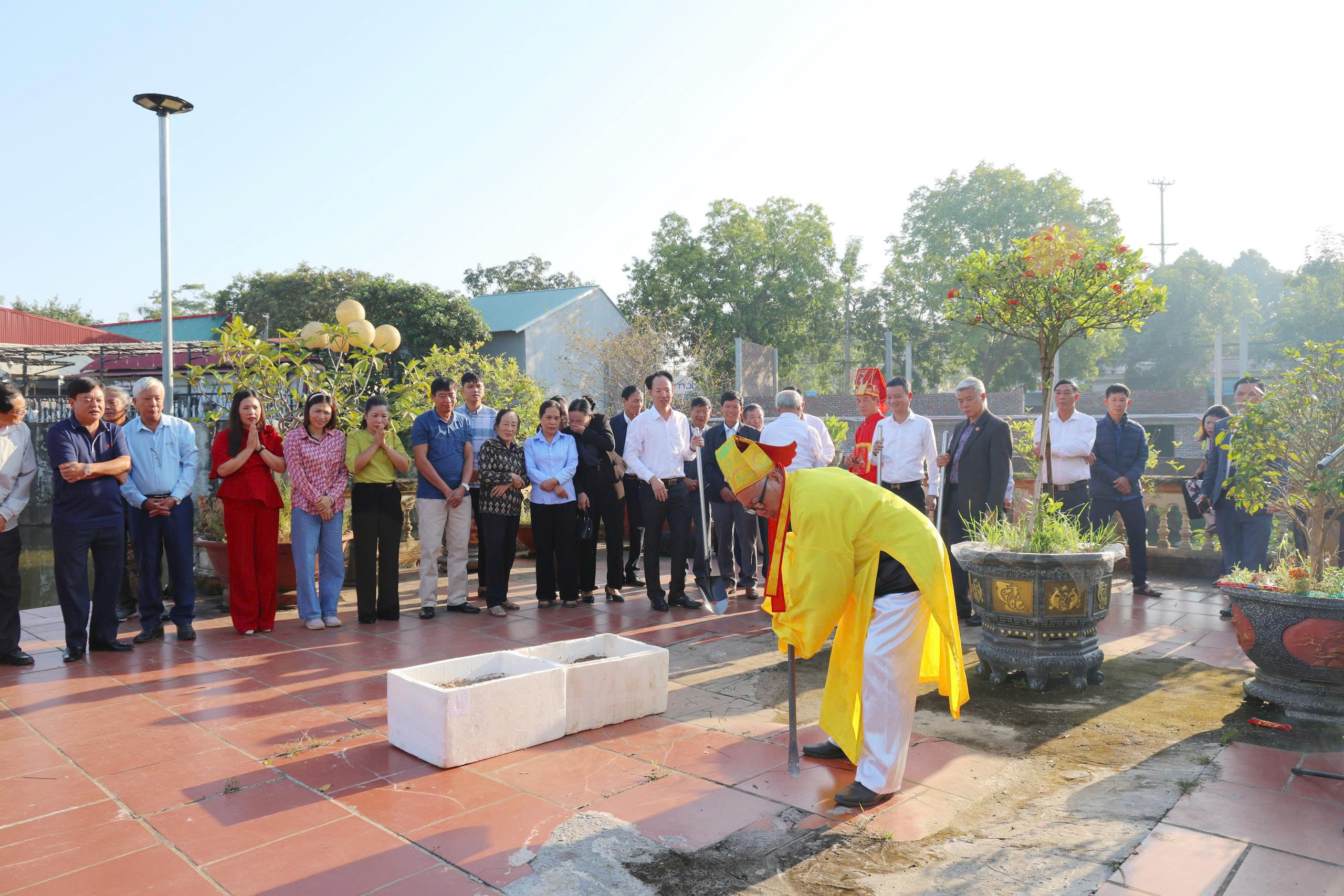Đồng chí Nguyễn Minh Tân - Phó Bí thư Đảng uỷ, Chủ tịch UBND xã cùng các đại biểu dự Lễ động thổ