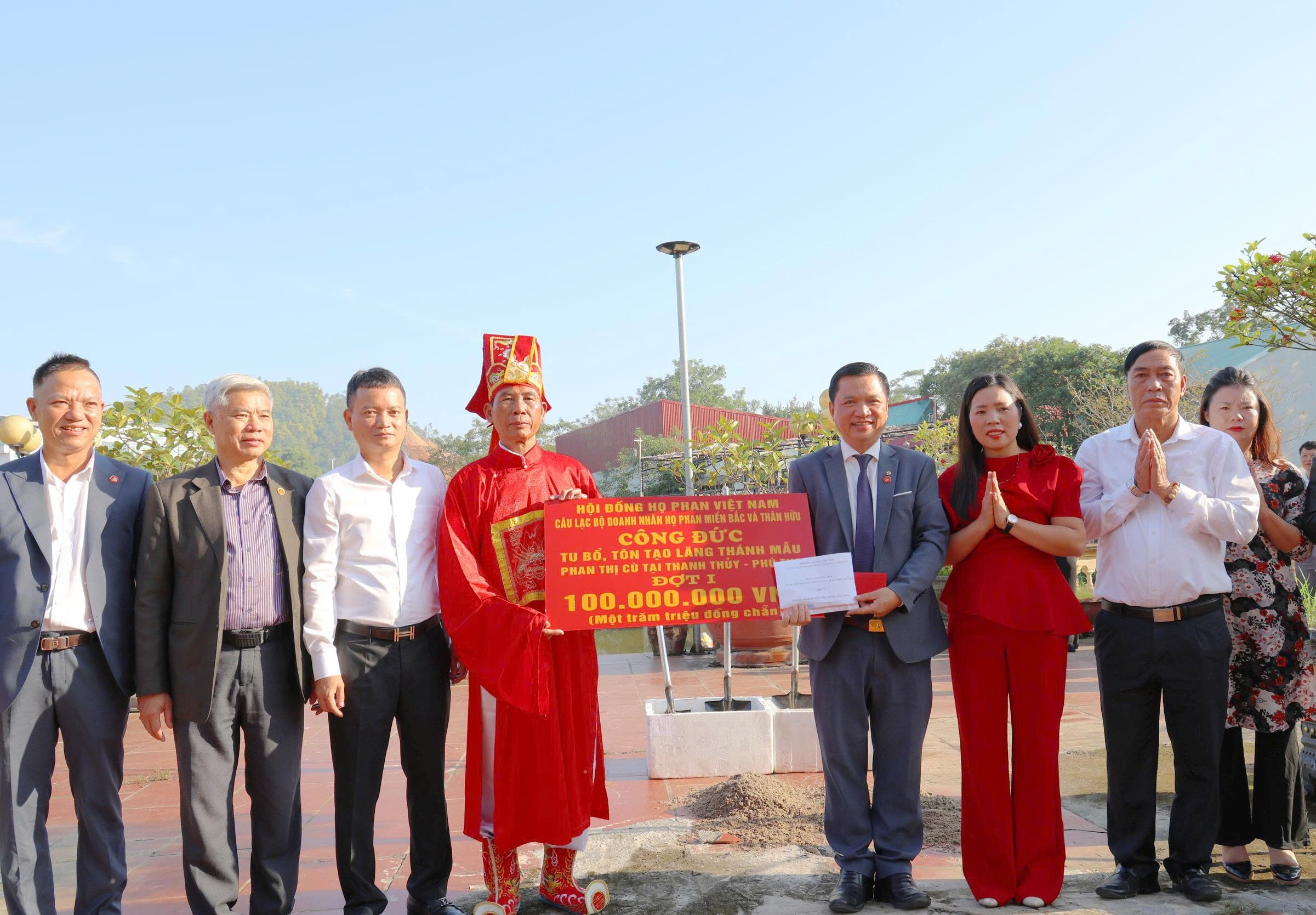 Tại Lễ khởi công, các đại biểu dự lễ, doanh nghiệp, nhân dân và hậu duệ họ Phan đã phát tâm công đức hàng trăm triệu đồng.