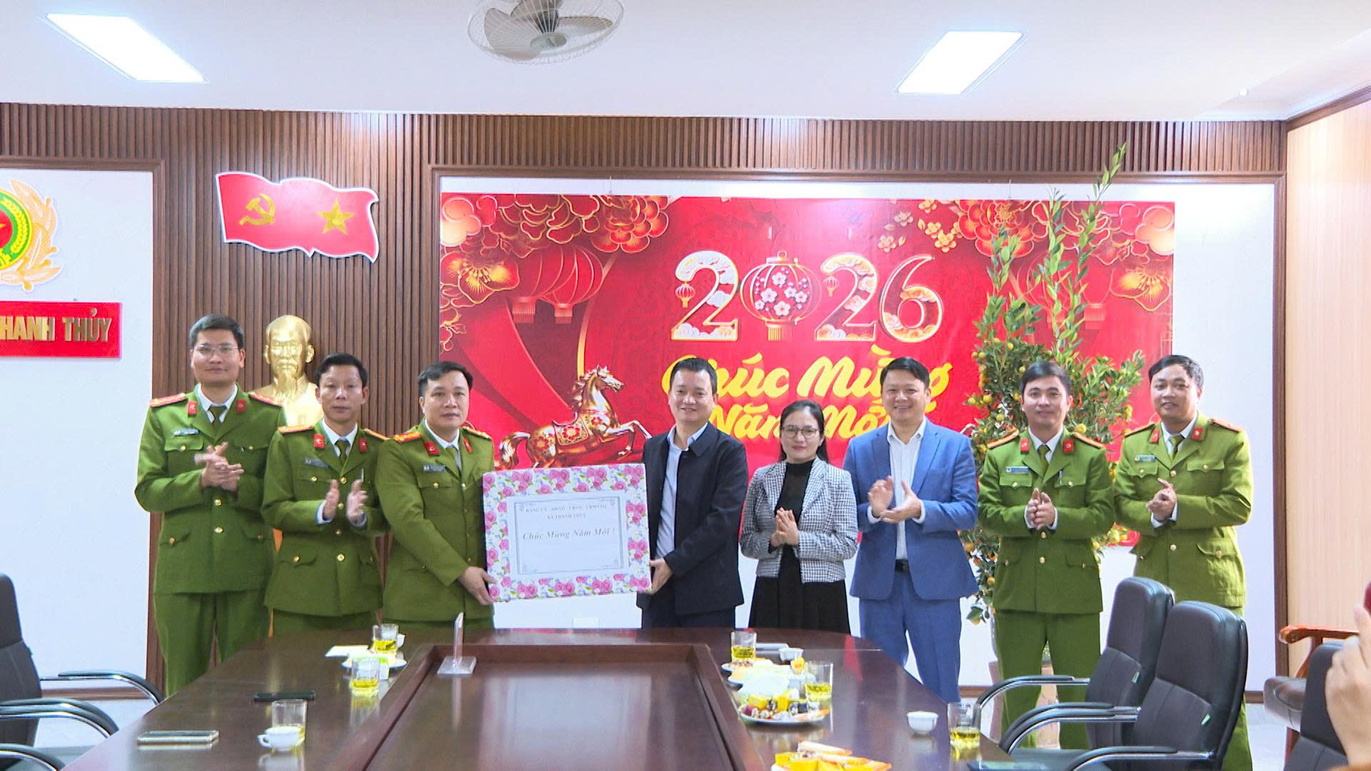 Đến thăm, chúc tết Công an xã, đồng chí Chủ tịch UBND xã Nguyễn Minh Tân nghi nhận và biểu dương thành tích của cán bộ, chiến sỹ Công an xã đã đạt được trong năm qua, góp phần bảo đảm tình hình an ninh chính trị, trật tự an toàn xã hội trên địa bàn. Đồng chí đề nghị, để Nhân dân đón Tết cổ truyền bình yên, bên cạnh việc tổ chức các hoạt động vui xuân, chăm lo Tết cho cán bộ chiến sĩ, Công an xã Thanh Thuỷ cần tập trung huy động tối đa lực lượng, phương tiện, thiết bị kỹ thuật; triển khai đồng bộ, quyết liệt, hiệu quả các biện pháp nghiệp vụ; chủ động phòng ngừa, đấu tranh có hiệu quả, không để tội phạm hoạt động phức tạp gây bức xúc dư luận. Phối hợp với Ban Chỉ huy Quân sự xã đảm bảo Lễ giao nhận quân diễn ra trang trọng, an toàn. Đồng thời, có phương án đảm bảo an ninh trật tự trước, trong và sau cuộc bầu cử Đại biểu Quốc hội khoá XVI và Đại biểu HĐND các cấp nhiệm kỳ 2026-2031.