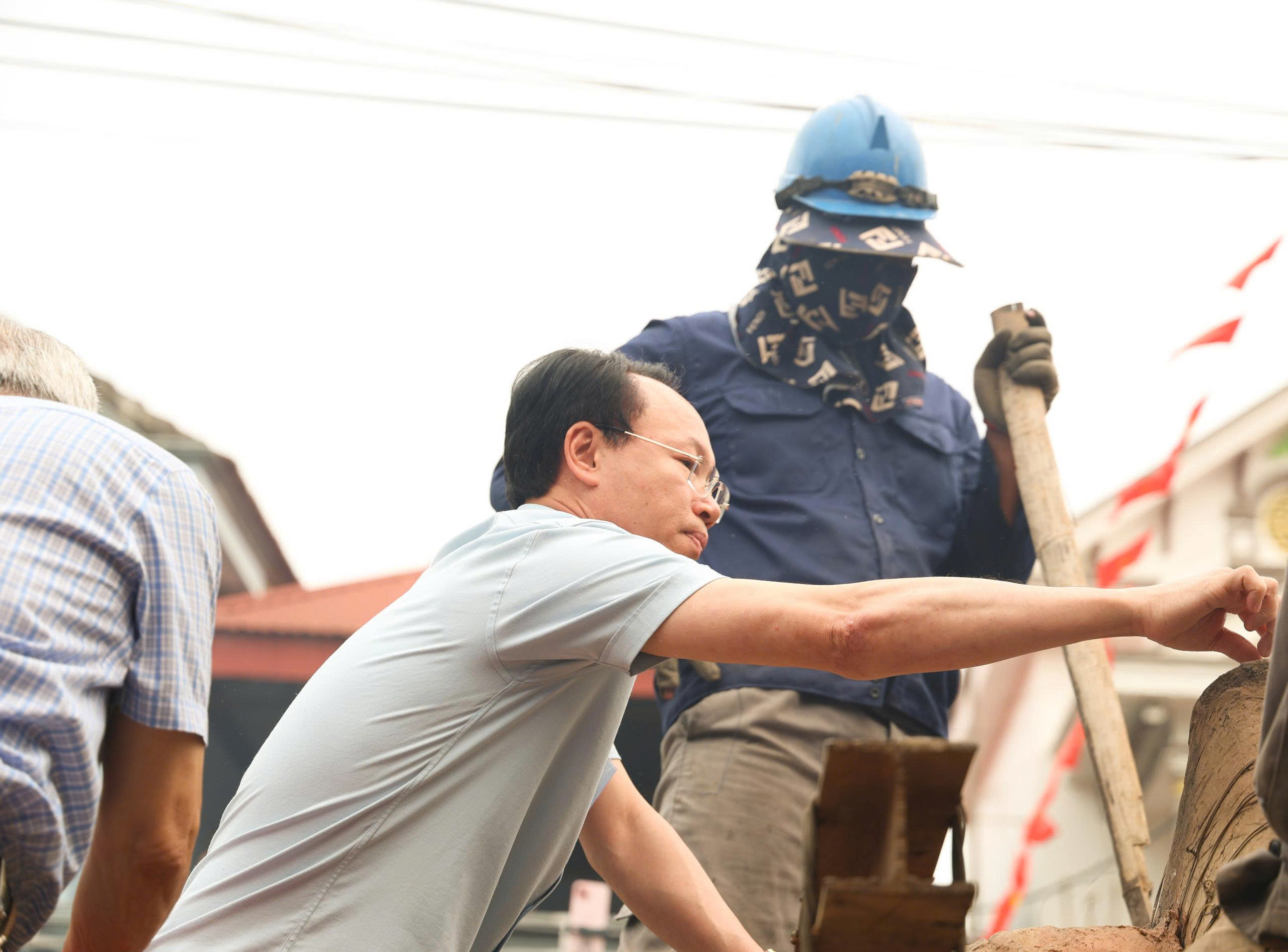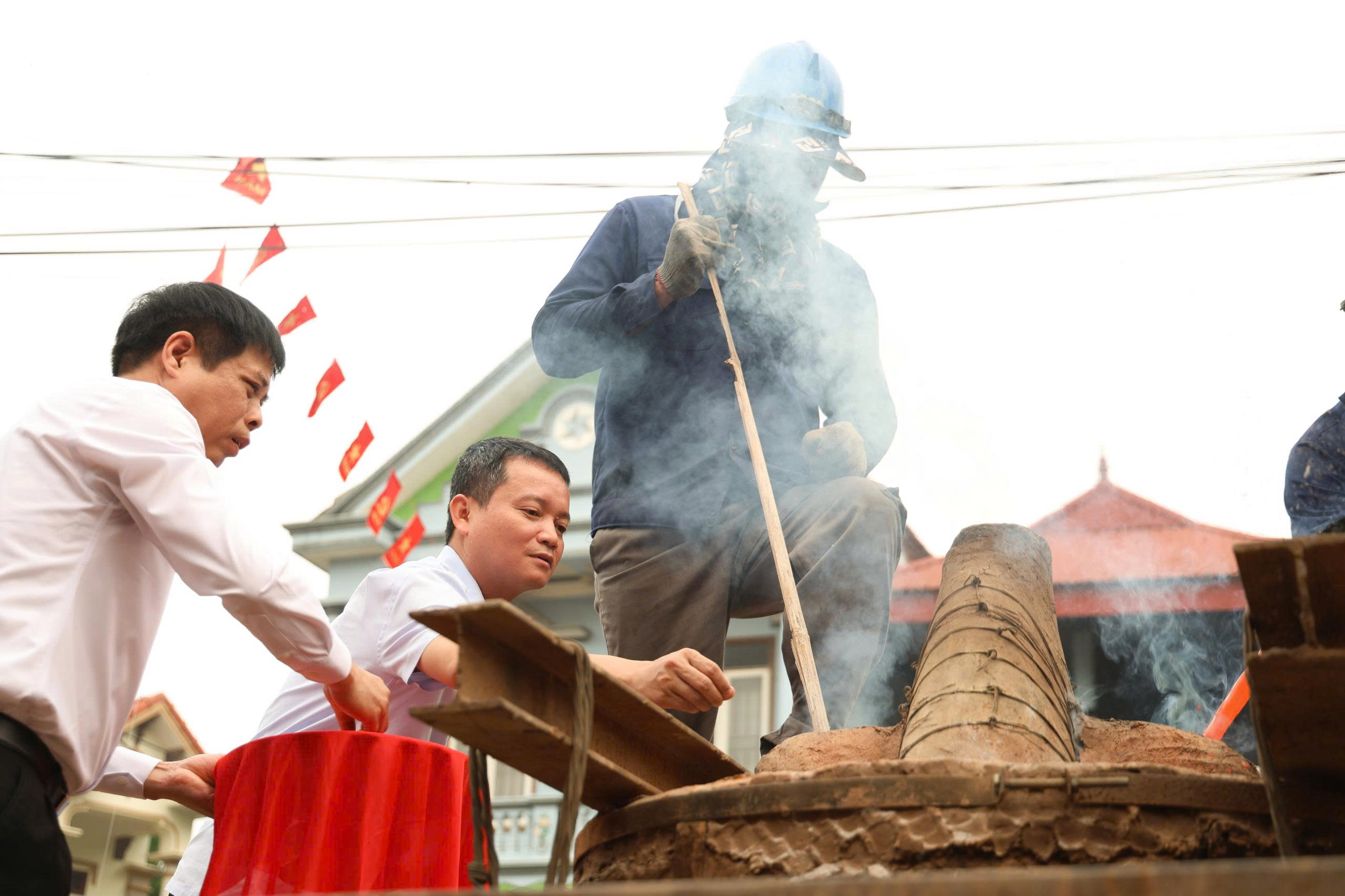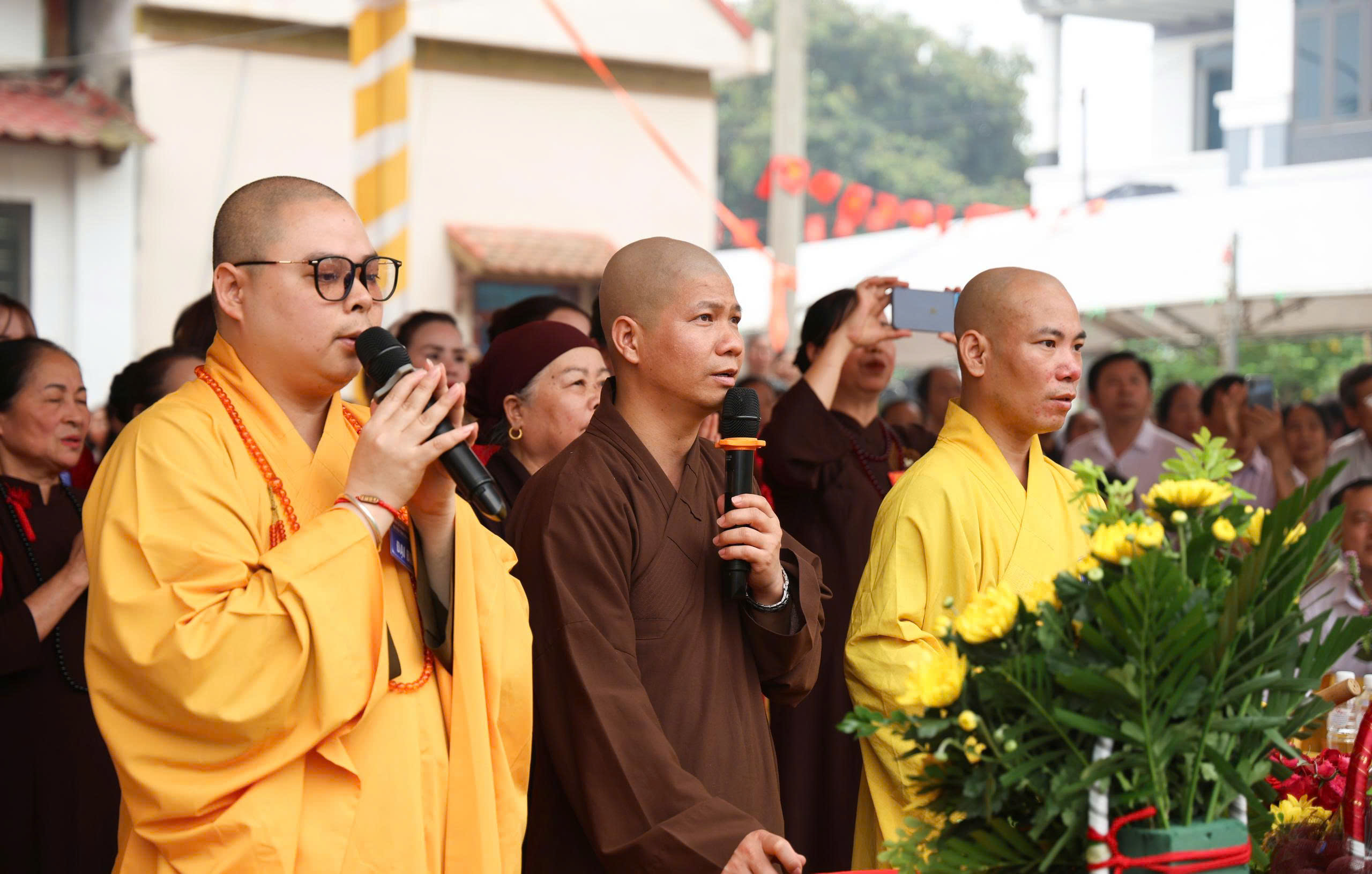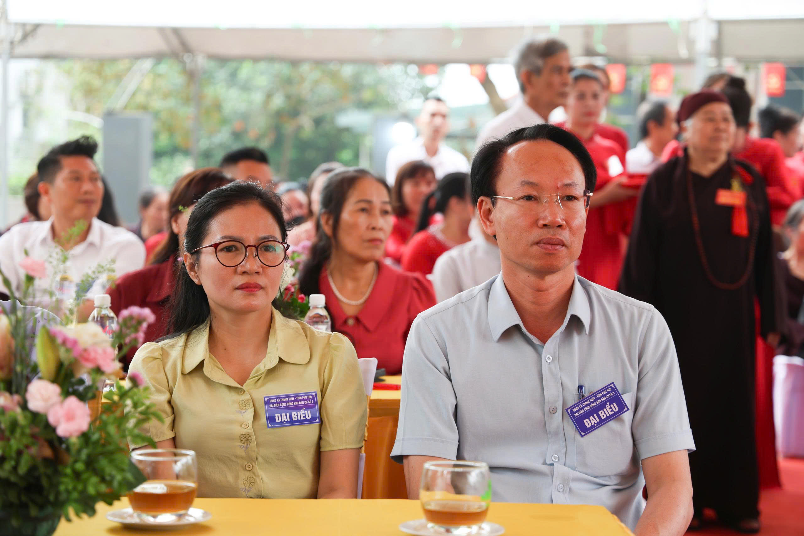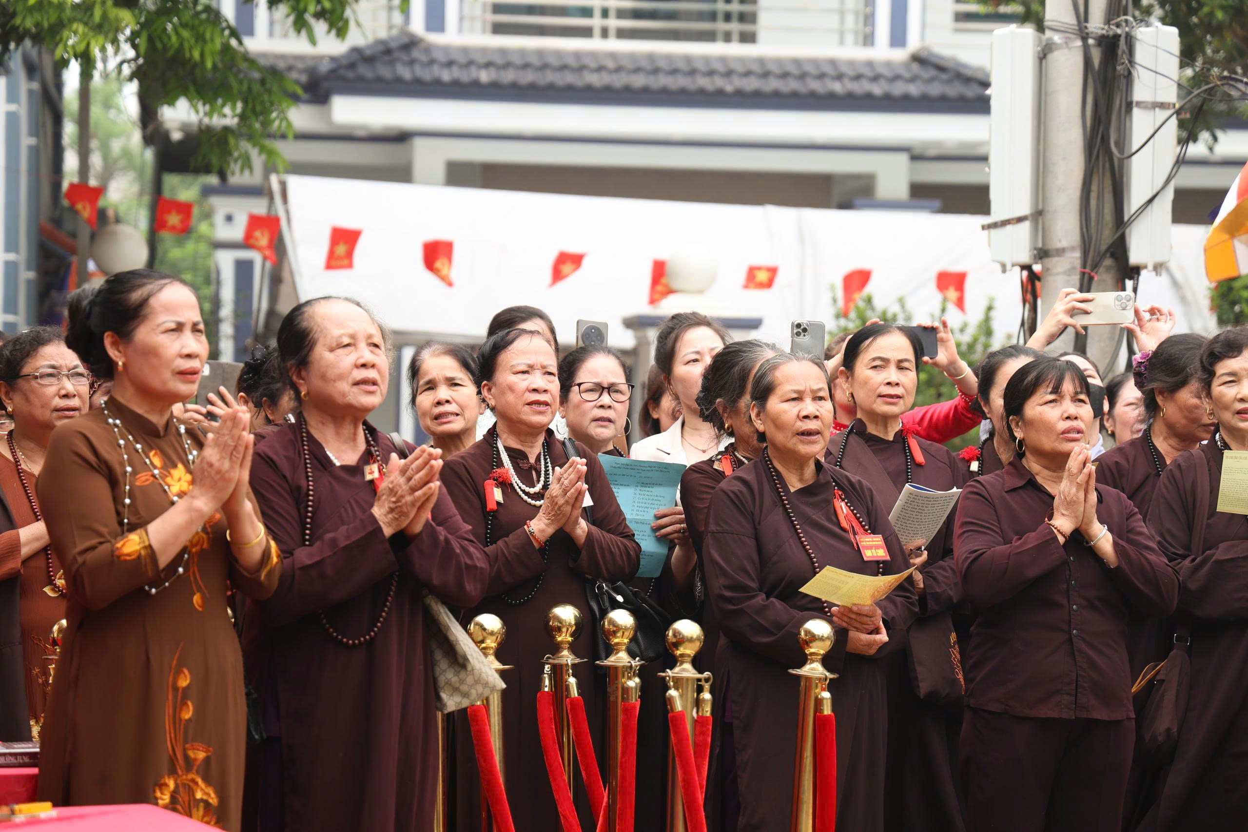 Đồng chí Chủ tịch UBND xã Nguyễn Minh Tân và các đại biểu dự Lễ đúc chuông chùa Ninh Phúc