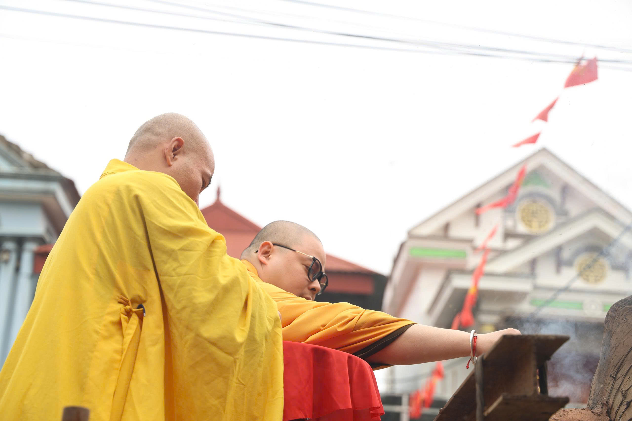 Các đại biểu cùng toàn thể Hội chúng Phật tử đã tụng kinh, trì chú, sái tịnh quanh khu vực khuôn đúc