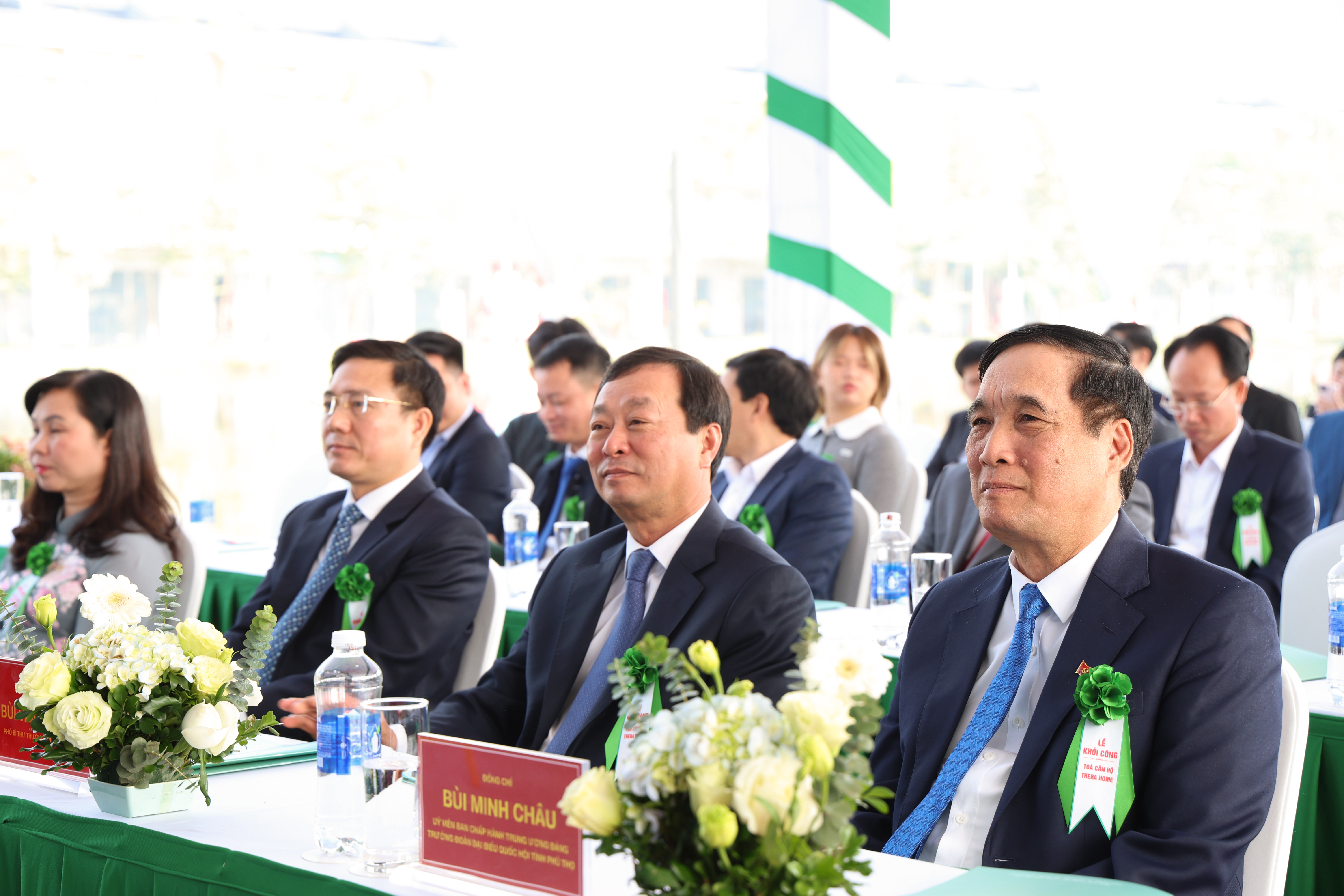 Đồng chí Bùi Minh Châu - Ủy viên Ban Chấp hành Trung ương Đảng, Trưởng đoàn Đại biểu Quốc hội tỉnh Phú Thọ; Bùi Văn Quang - Phó Bí thư Thường trực Tỉnh uỷ dự lễ khởi công.
