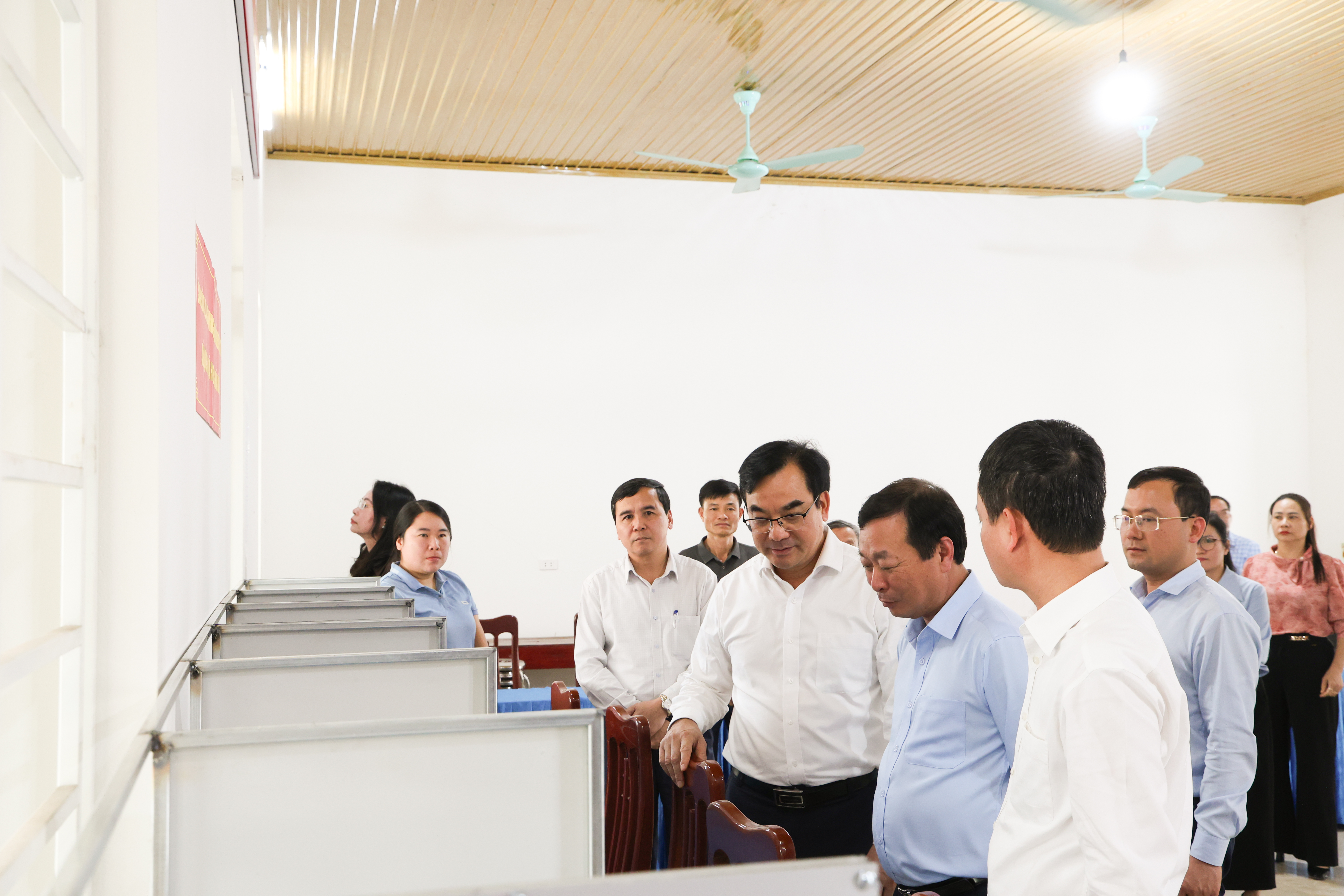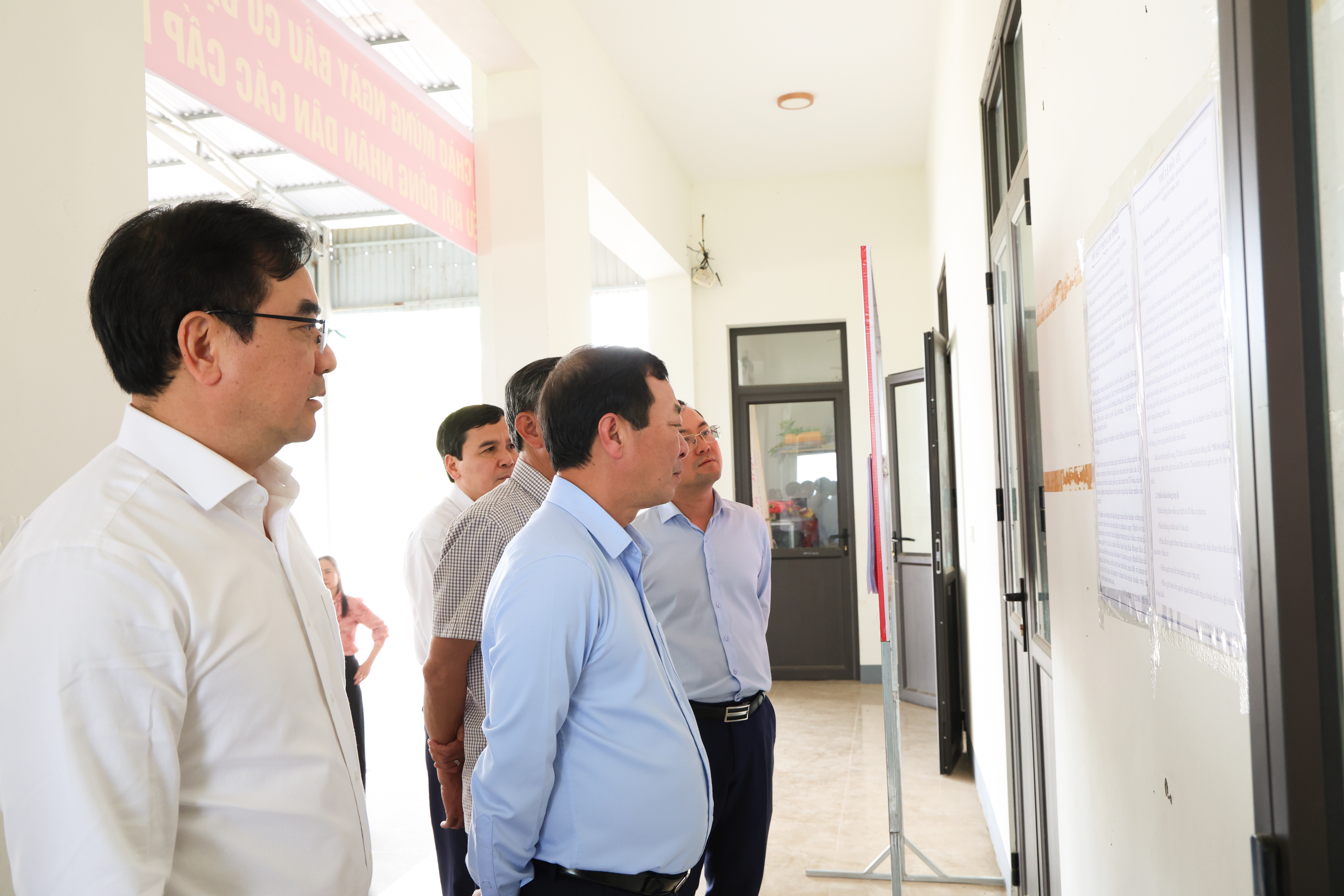 Đồng chí Bùi Văn Quang - Phó Bí thư Thường trực Tỉnh ủy cùng đoàn công tác và lãnh đạo xã Thanh Thuỷ kiểm tra công tác chuẩn bị bầu cử tại khu vực bỏ phiếu số 16 (khu 3 xã Đoan Hạ cũ)