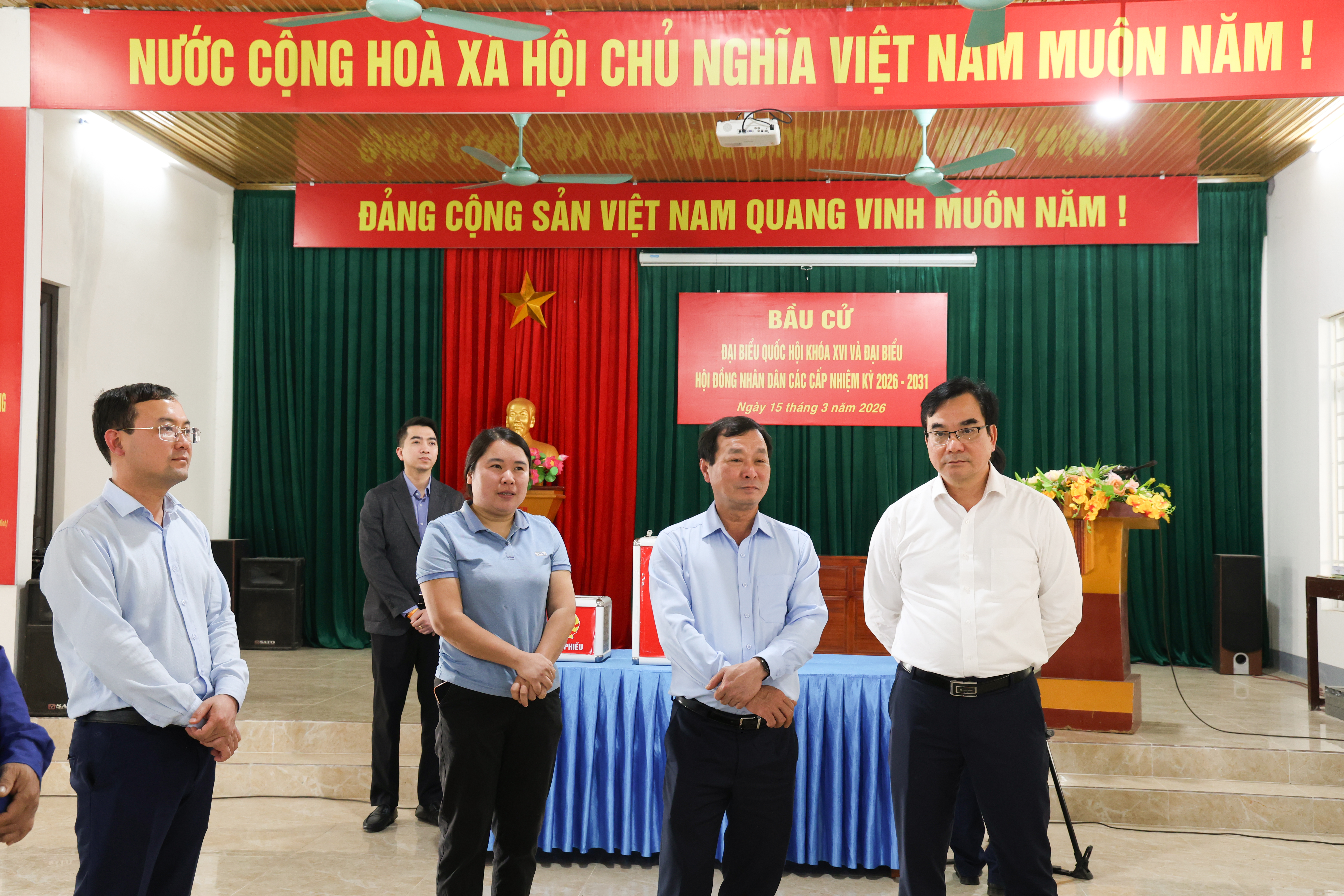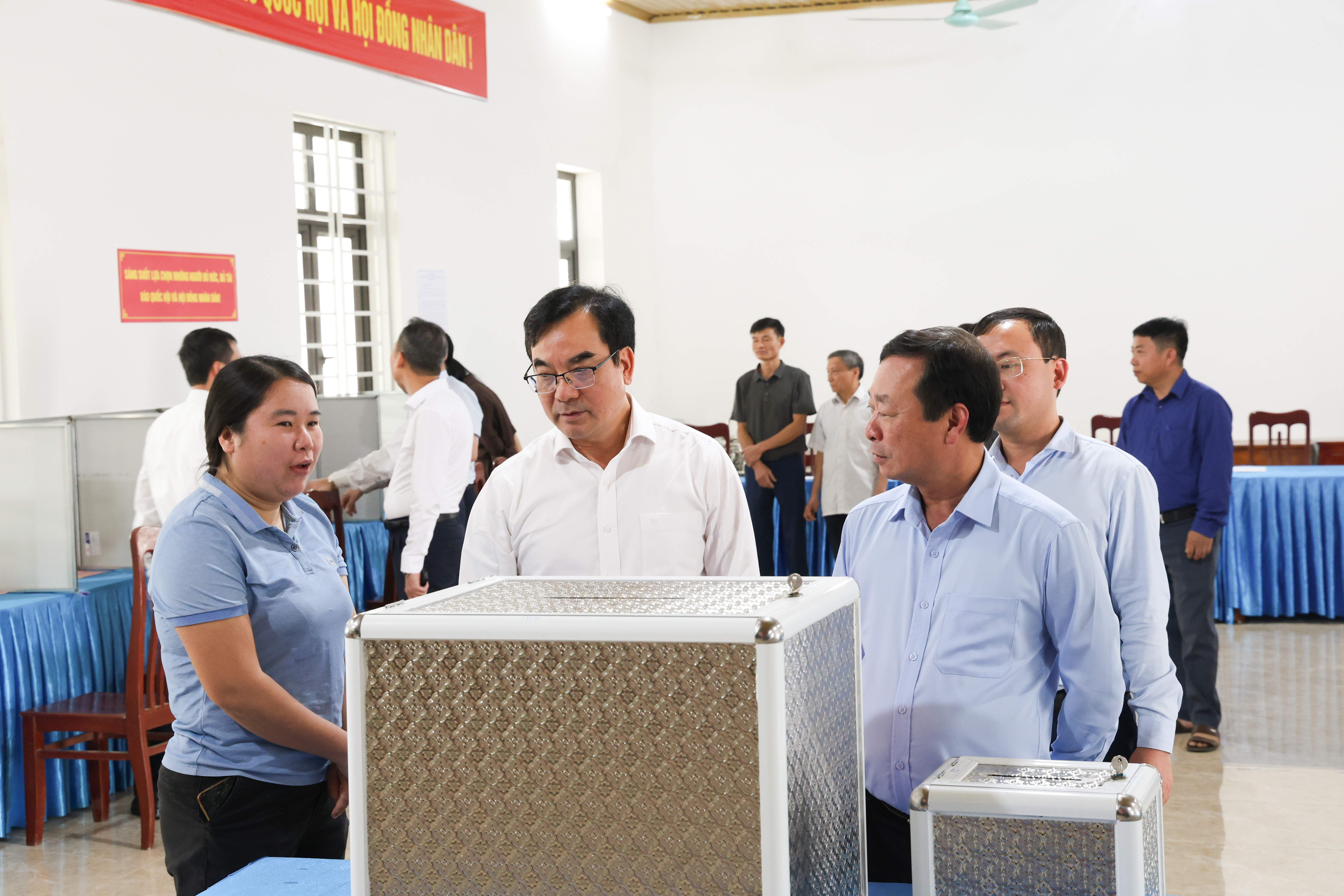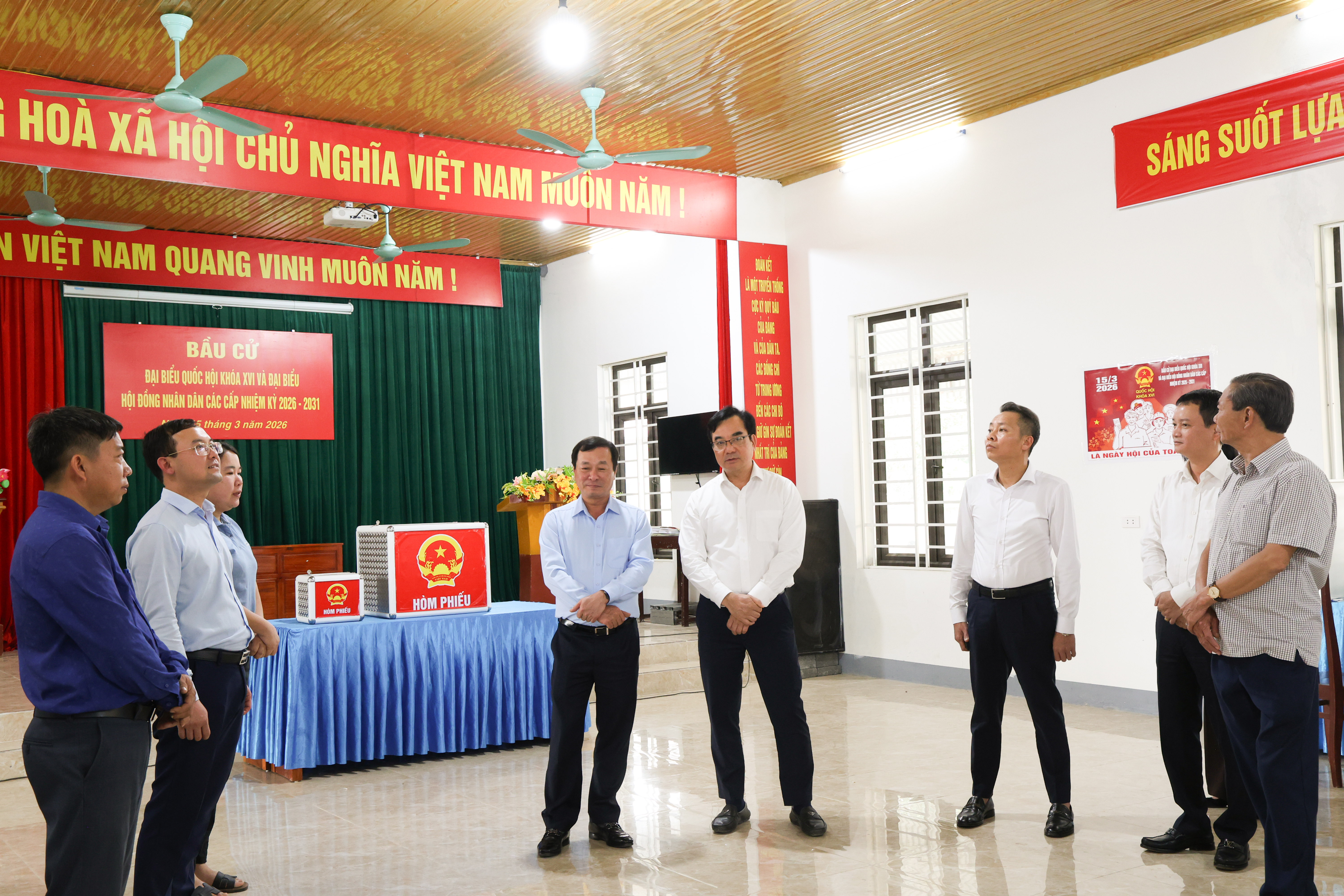 Đoàn công tác của tỉnh Phú Thọ và xã Thanh Thuỷ kiểm tra công tác bầu cử Quốc hội và HĐND các cấp tại khu vực bỏ phiếu số 13 ( xã Bảo Yên cũ)