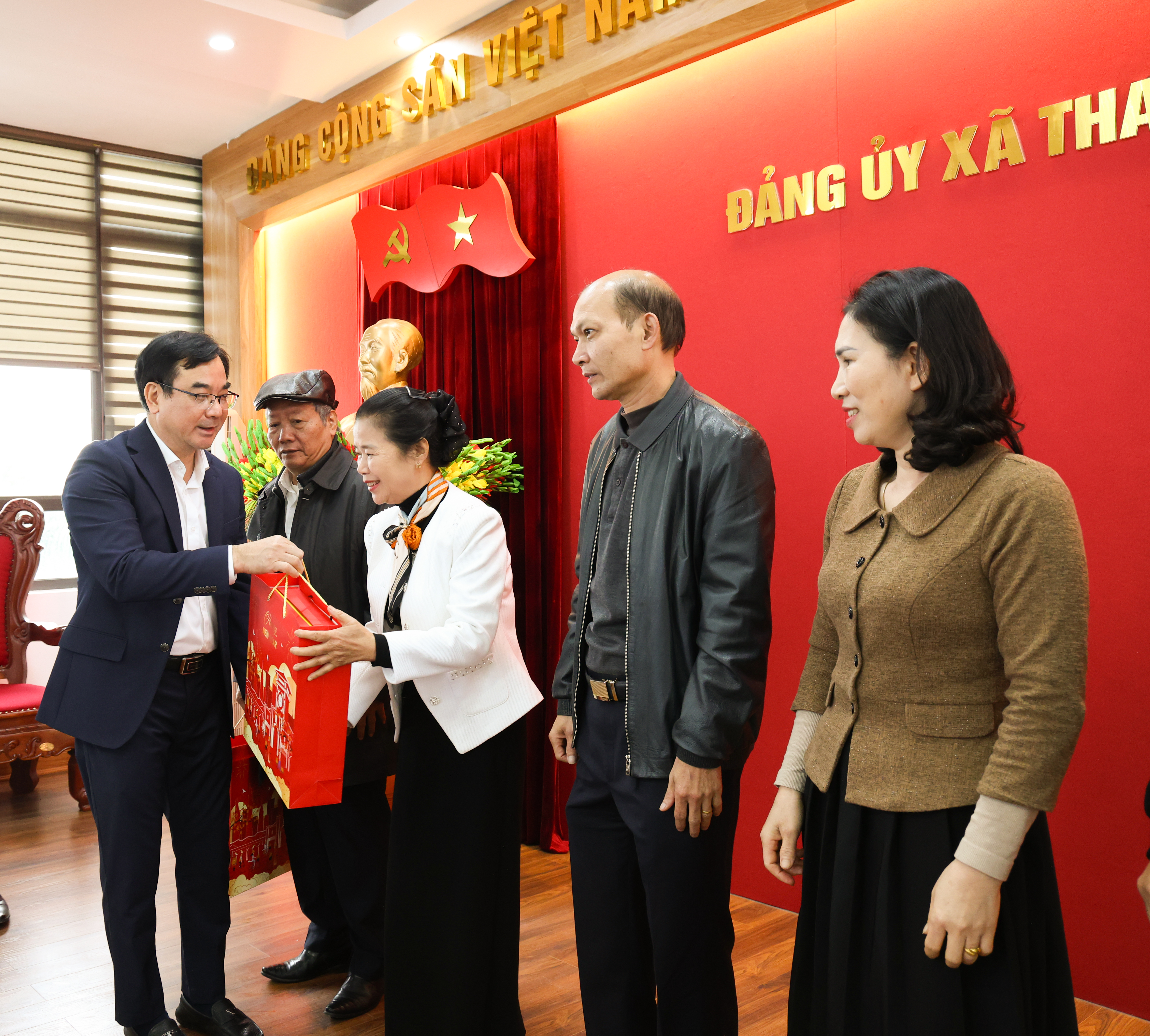 Đồng chí Bí thư Đảng uỷ, Chủ tịch HĐND xã Trịnh Hùng Sơn tặng quà cho các đồng chí nguyên Ban thường vụ Đảng uỷ qua các thời kỳ, hiện đang nghỉ hưu trên địa bàn xã.