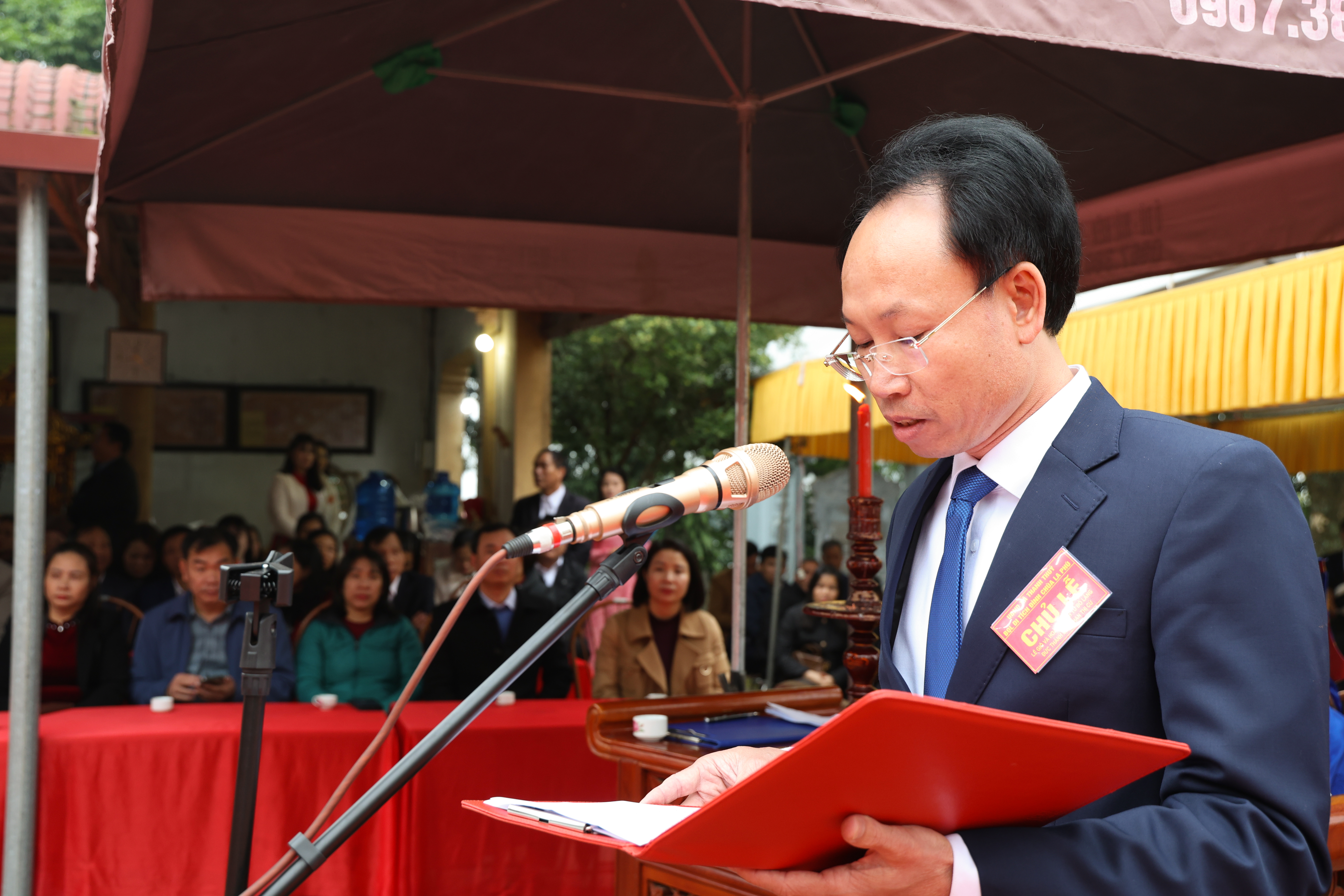 Chủ tế báo cáo kết quả tu bổ, tôn tạo Lăng Mẫu và vận động ủng hộ