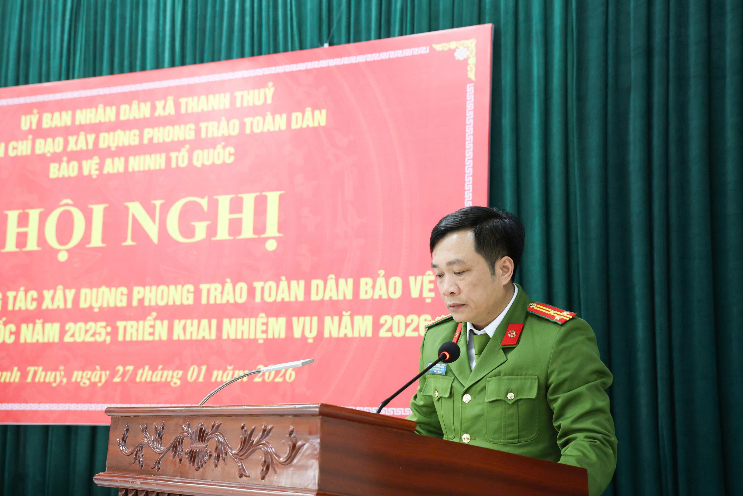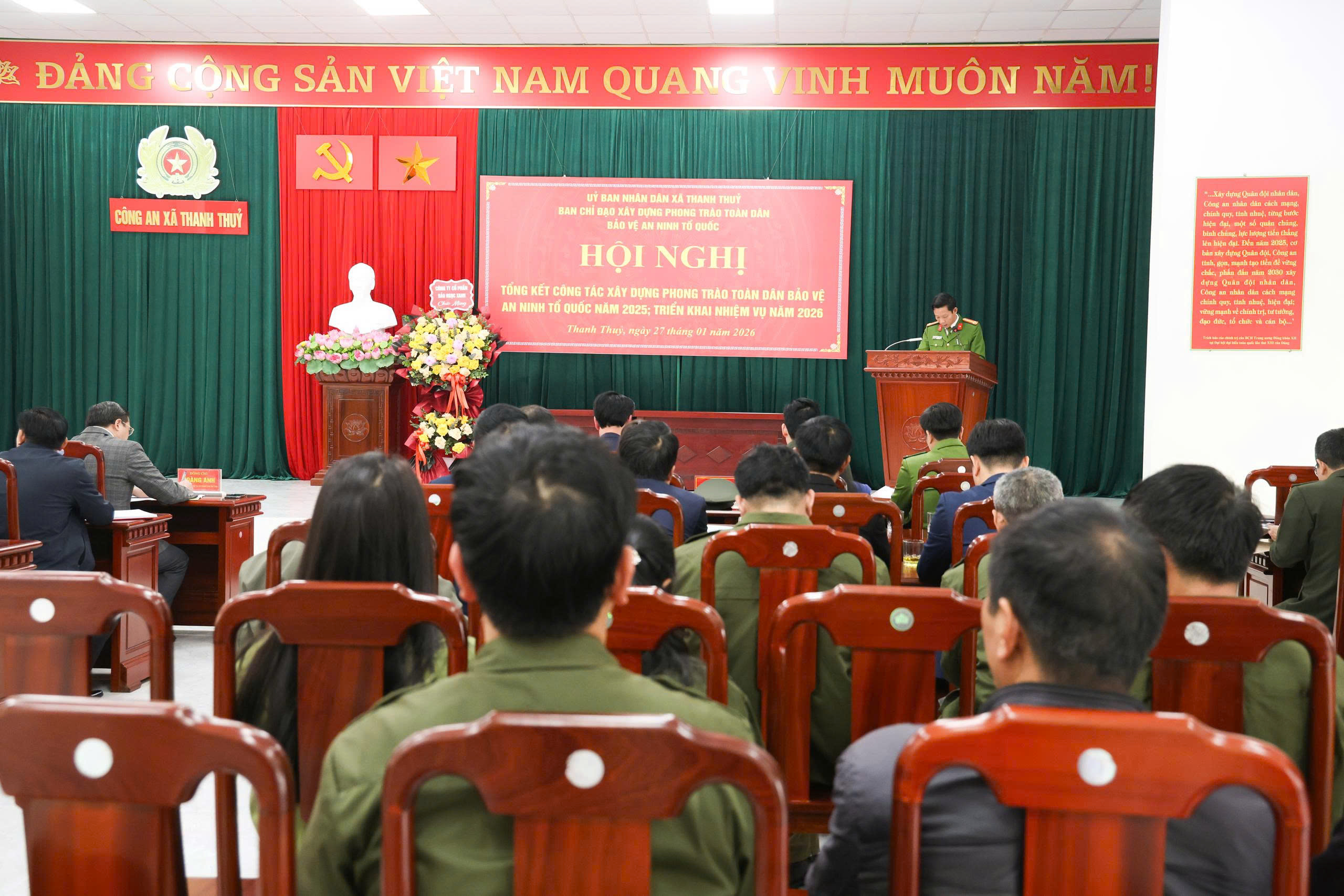 Chiều ngày 27/1, Ban chỉ đạo xây dựng phong trào toàn dân bảo vệ an ninh tổ quốc xã Thanh Thuỷ tổ chức hội nghị tổng kết công tác xây dựng phong trào toàn dân bảo vệ an ninh tổ quốc năm 2025, triển khai nhiệm vụ năm 2026.