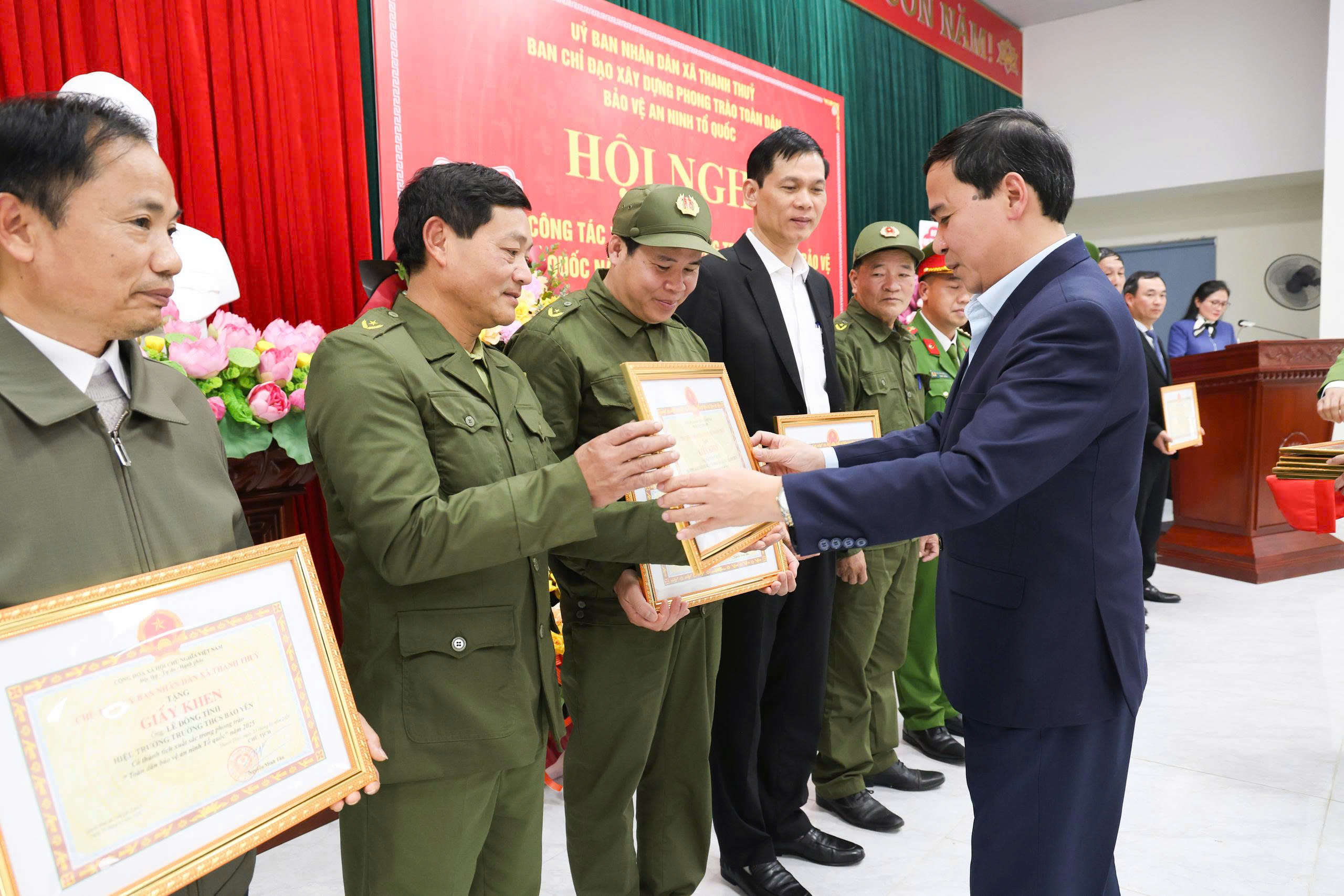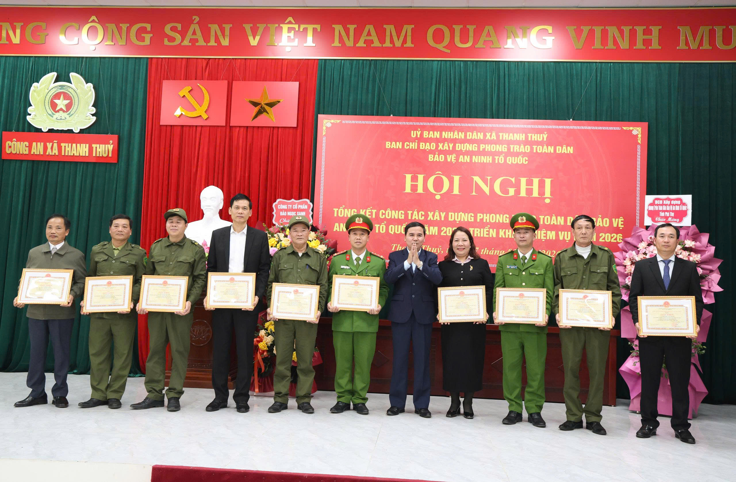Lãnh đạo xã Thanh Thuỷ khen thưởng các tập thể, cá nhân và trao giấy chứng nhận “An toàn về an ninh trật tự” cho các cơ quan, đơn vị và khu dân cư