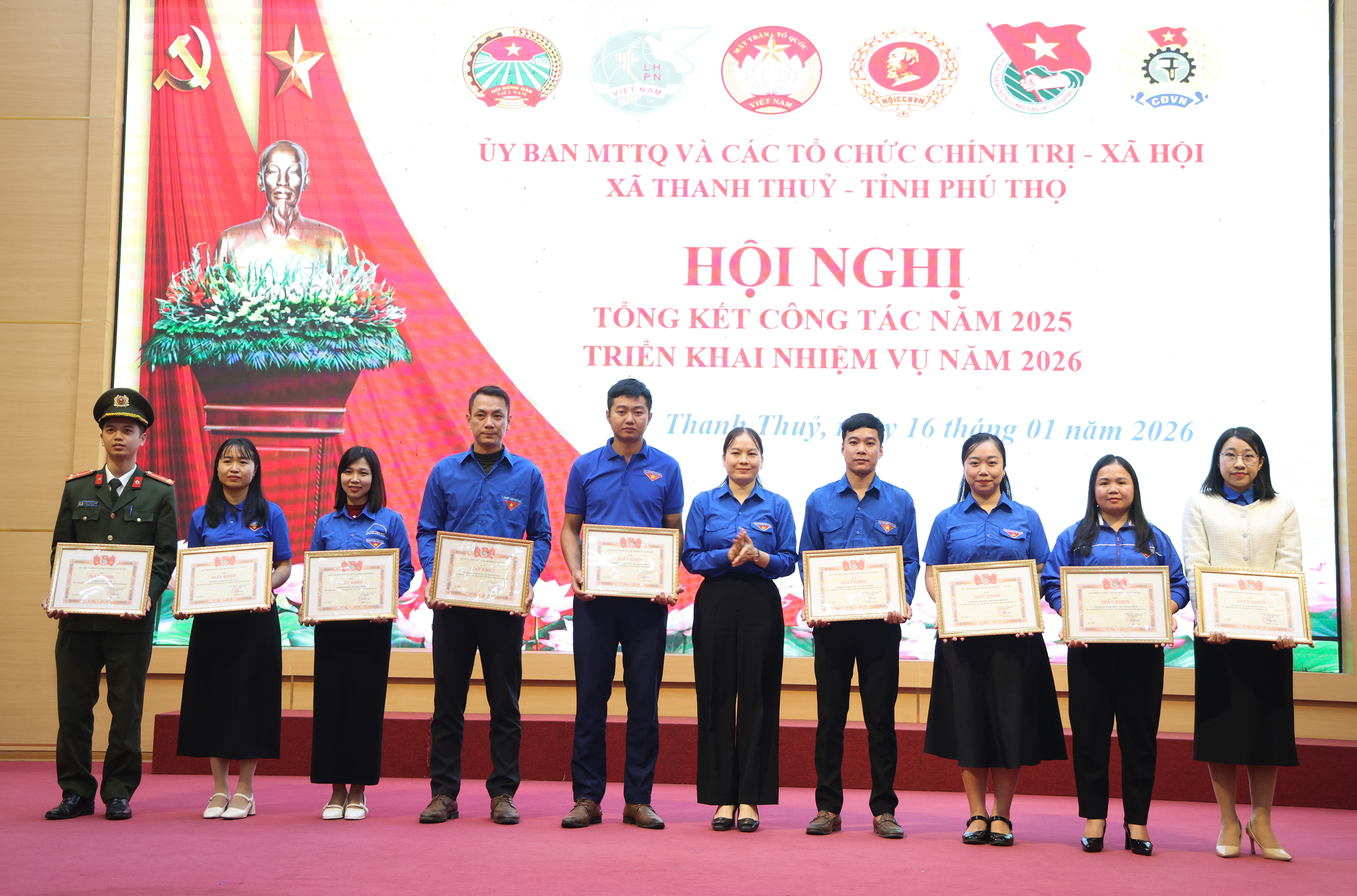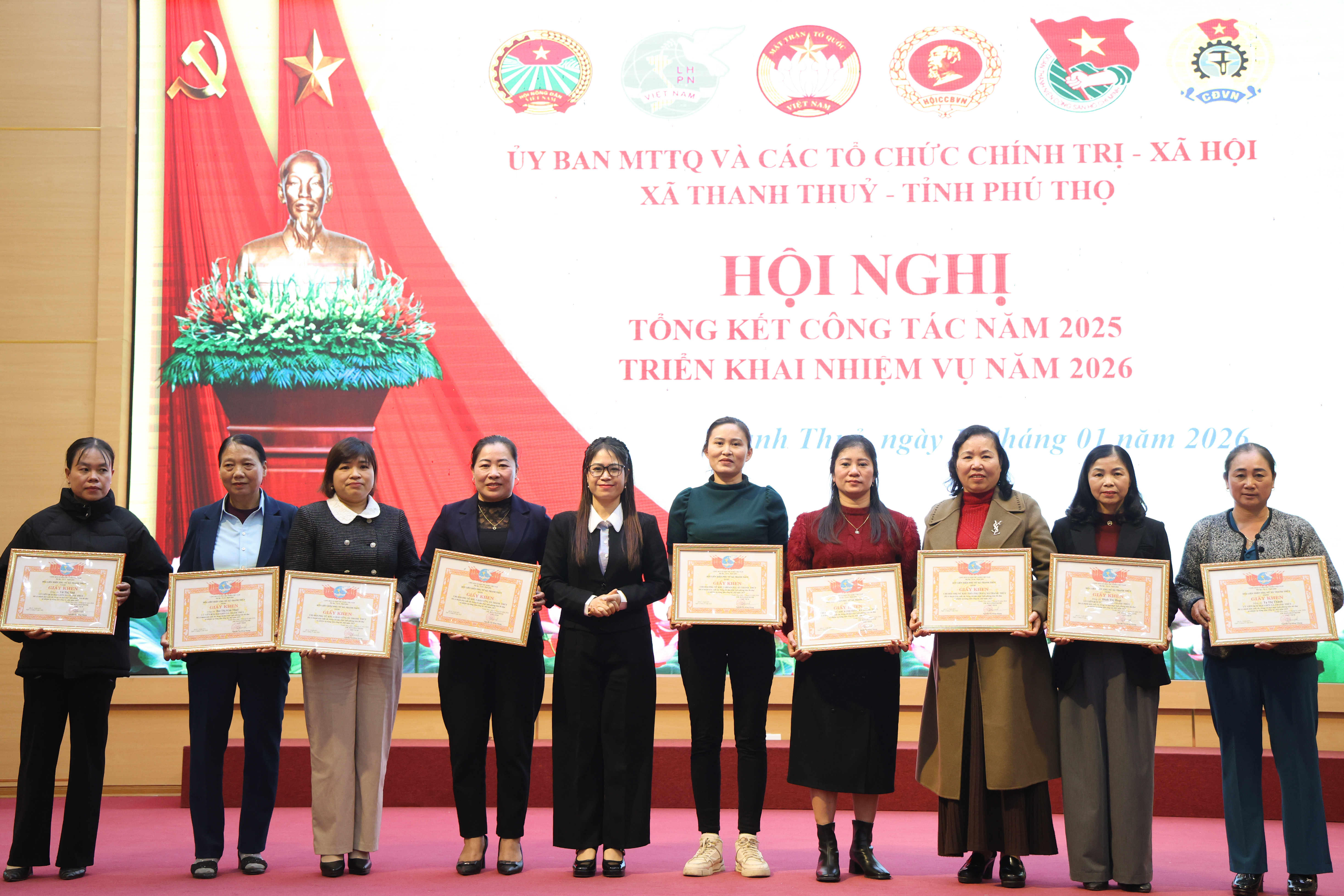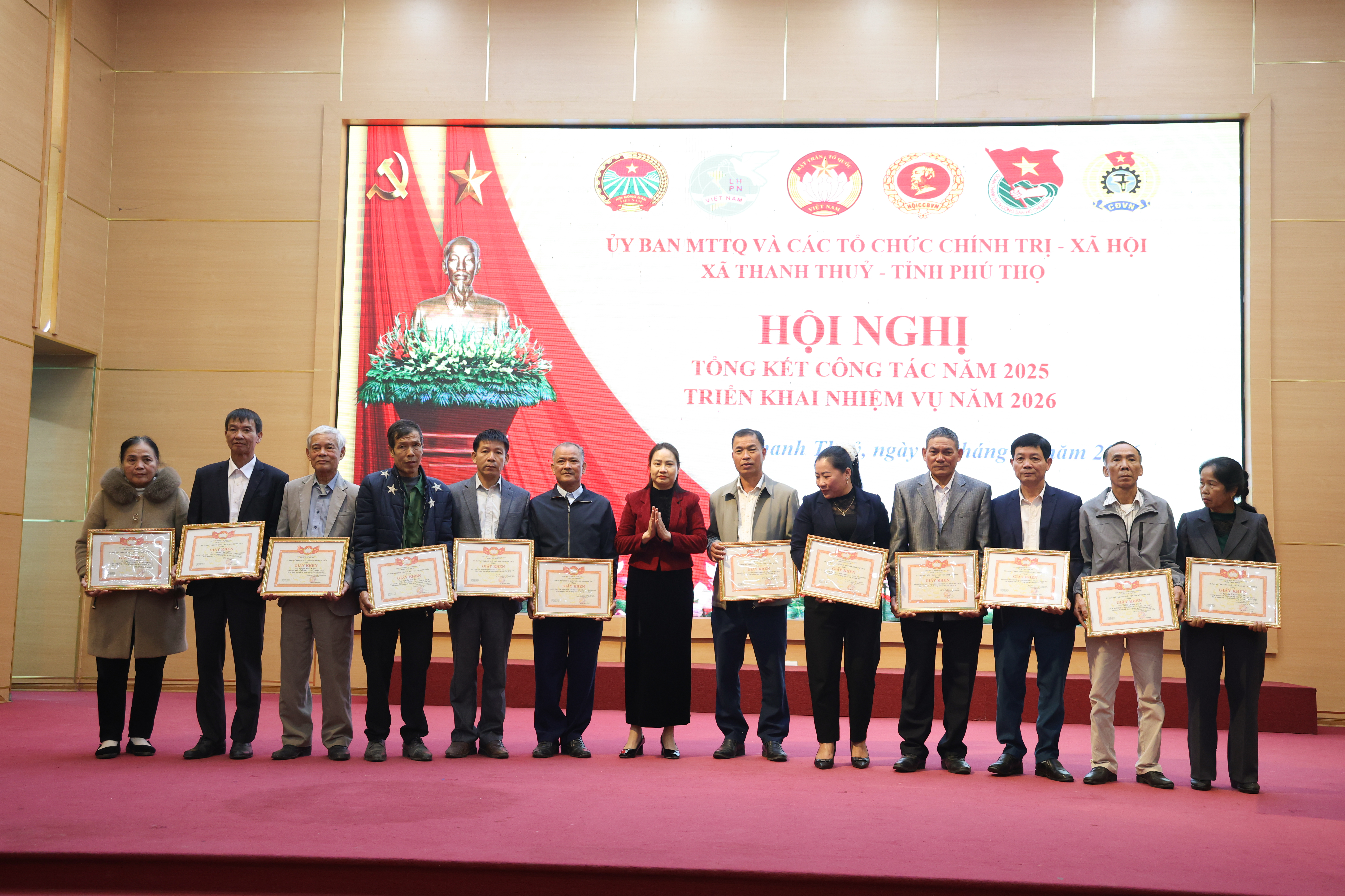 Nhân dịp này, Hội nghị đã tiến hành khen thưởng các tập thể và cá nhân có thành tích xuất sắc trong công tác Mặt trận và phong trào thi đua của các tổ chức chính trị - xã hội năm 2025.