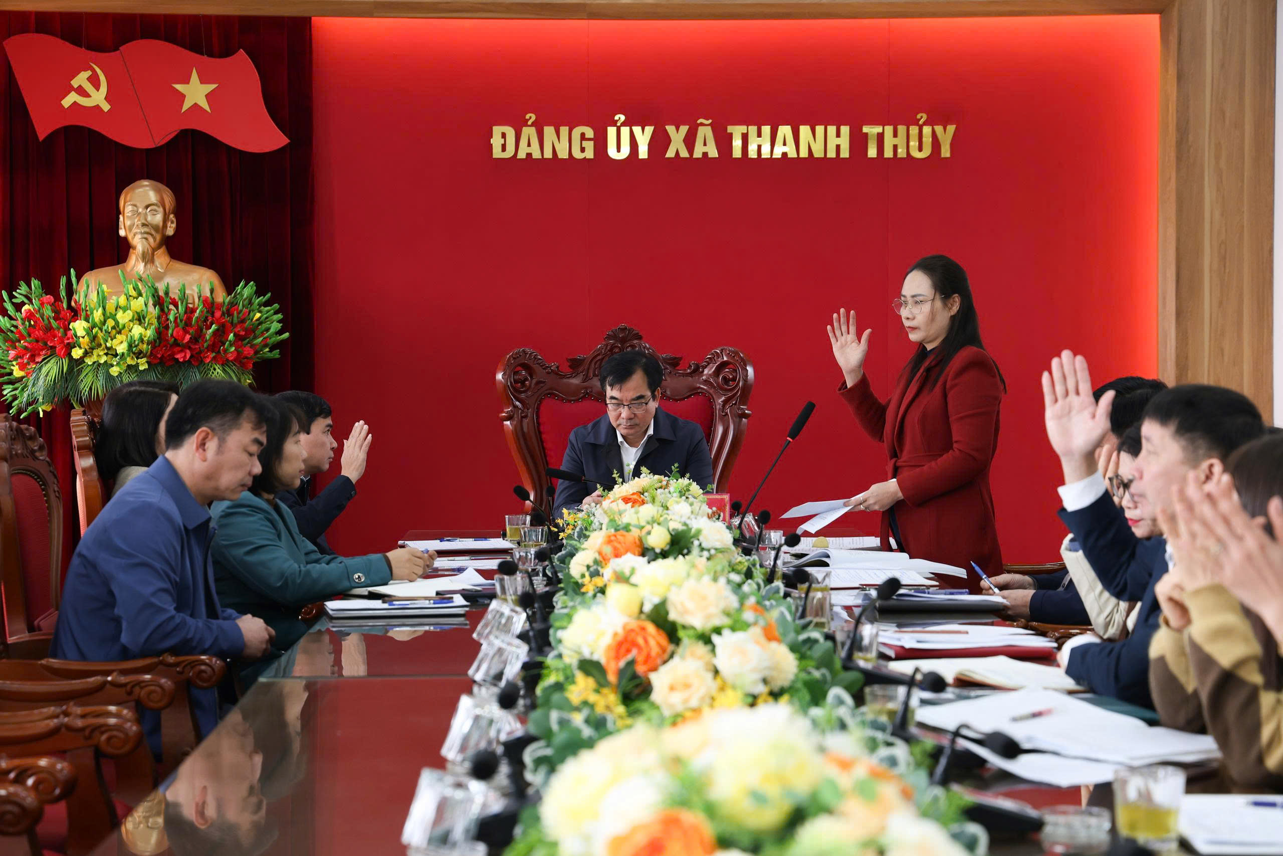 Đại biểu biểu quyết thông qua danh sách người đủ tiêu chuẩn ứng cử đại biểu HĐND xã Thanh Thuỷ khóa II, nhiệm kỳ 2026-2031