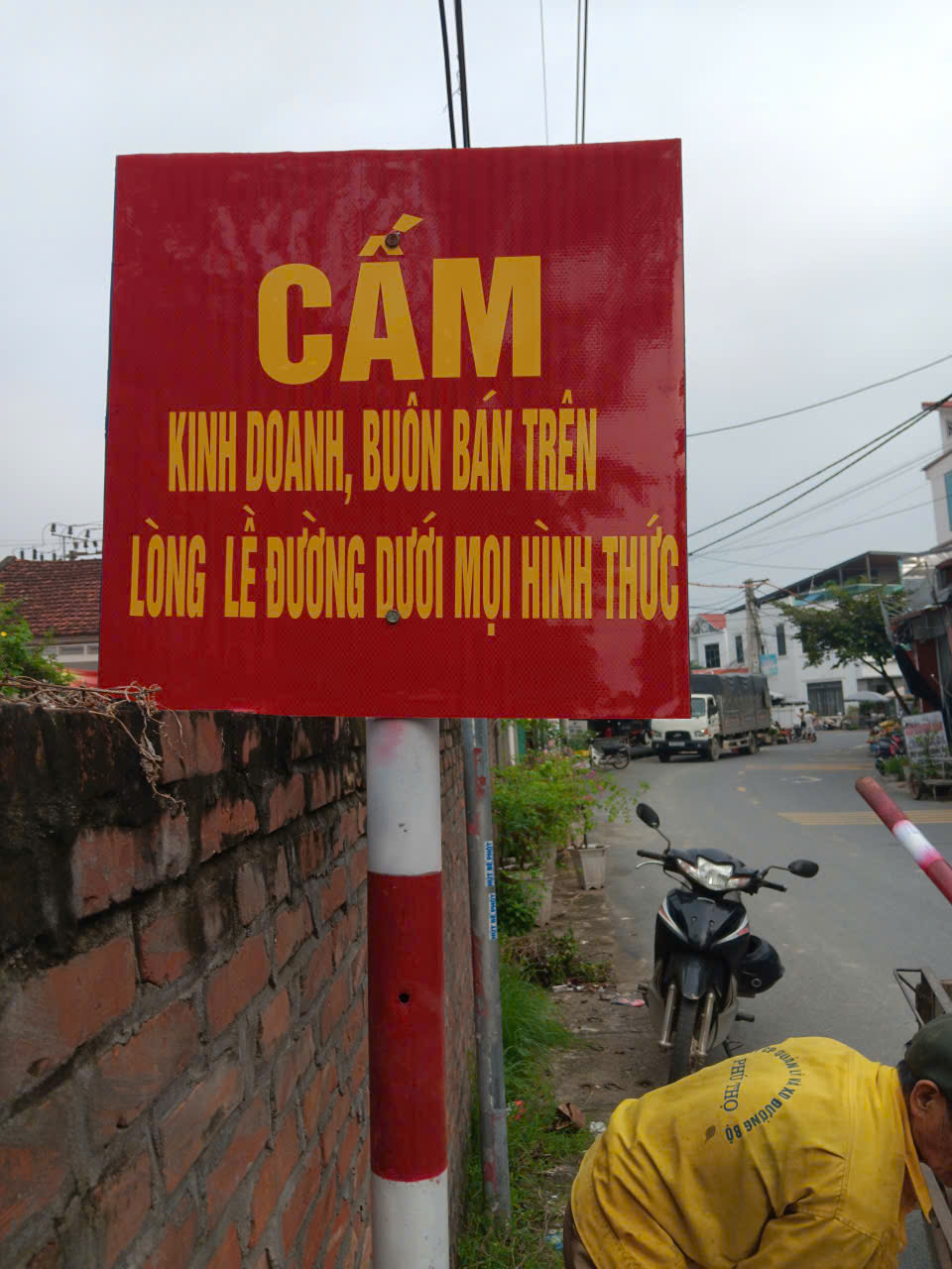 Biển cấm kinh doanh, buôn bán trên lòng, lề đường được cắm tại điểm kinh doạch dịch vụ (chợ Đoan Hạ cũ)
