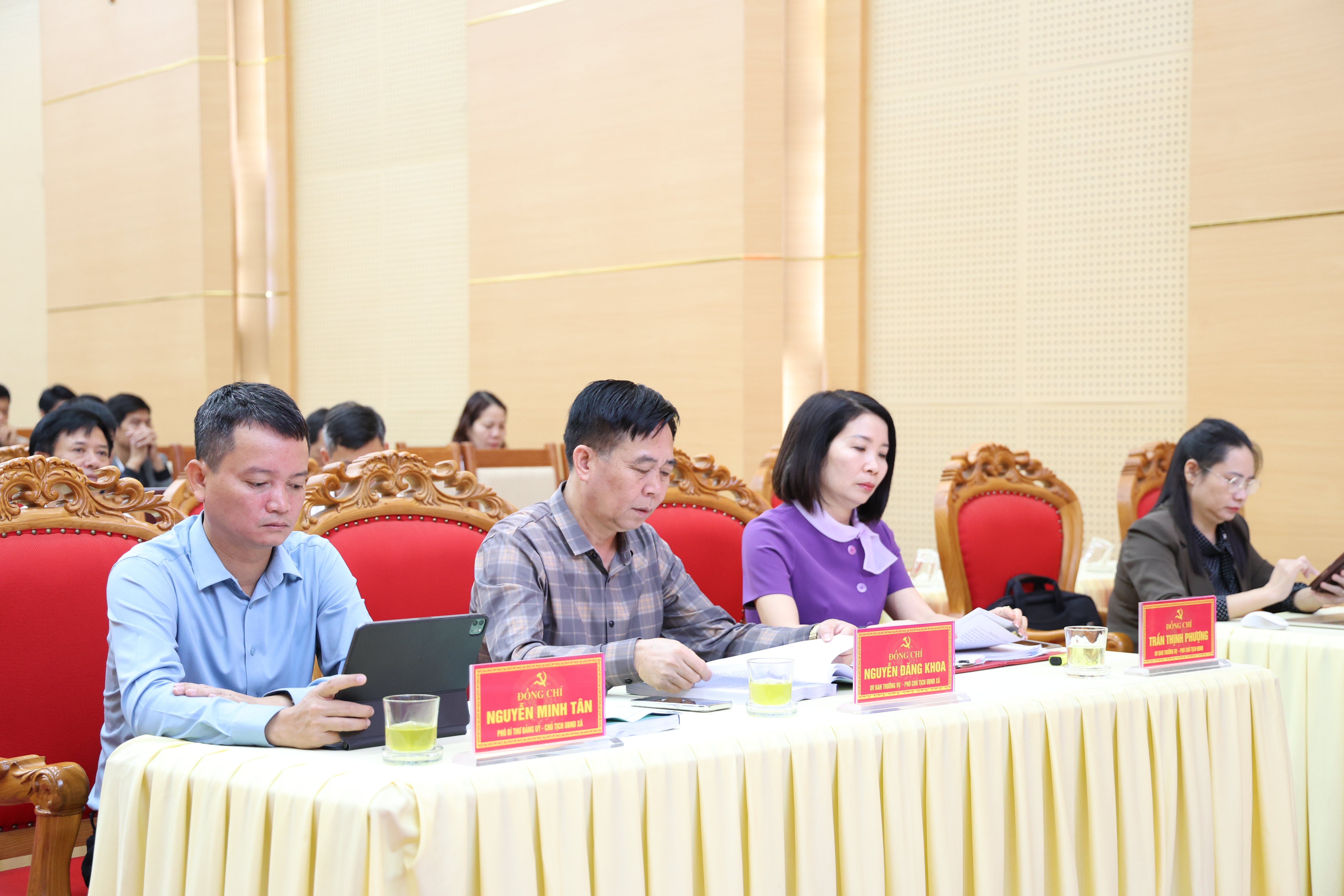 Đồng chí Trịnh Hùng Sơn - TUV, Bí thư Đảng uỷ, Chủ tịch Hội đồng Nhân dân xã và các đại biểu dự tại điểm cầu xã Thanh Thuỷ