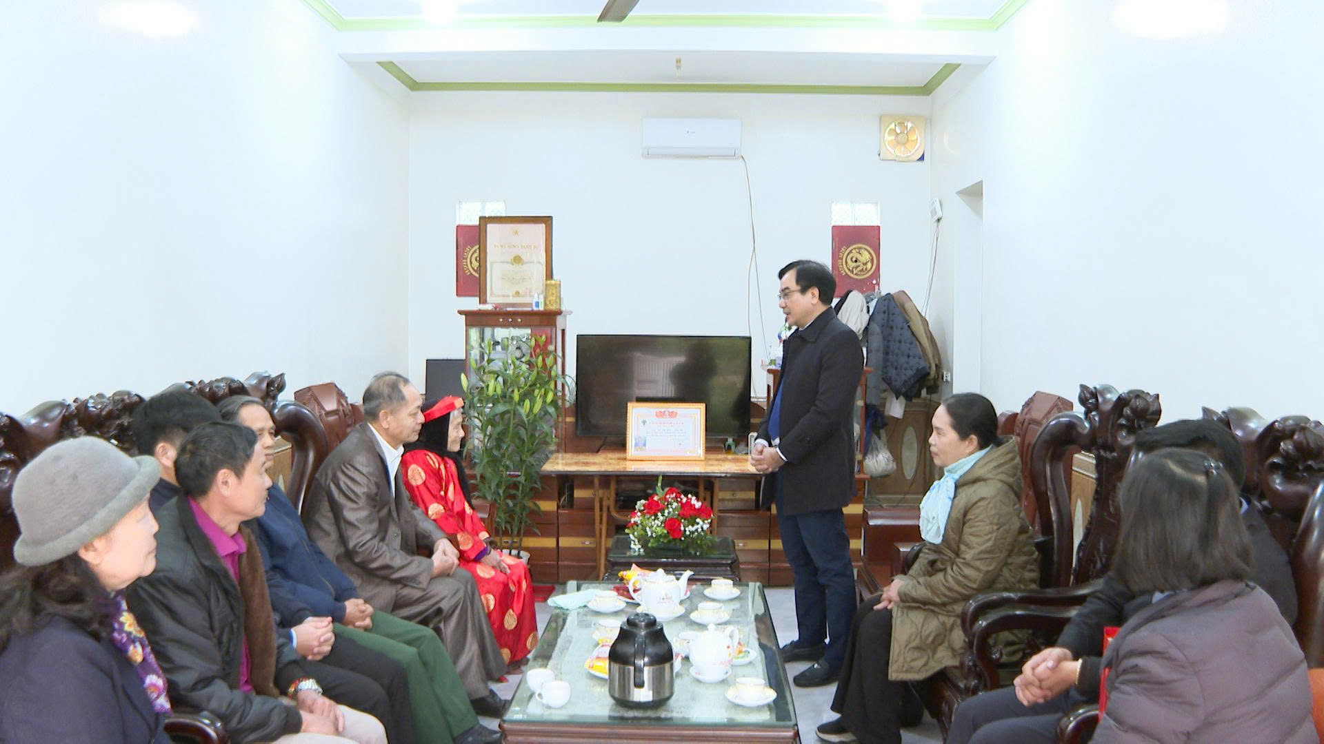 Tại các gia đình đến thăm, các đồng chí lãnh đạo xã ân cần thăm hỏi sức khỏe, đời sống sinh hoạt, bày tỏ sự tri ân sâu sắc trước những cống hiến, hy sinh to lớn của các gia đình chính sách, người có công với cách mạng. Đồng thời, các đồng chí gửi lời chúc thọ, chúc các cụ luôn mạnh khỏe, sống vui, sống thọ, tiếp tục động viên, giáo dục con cháu chấp hành tốt chủ trương của Đảng, chính sách pháp luật của Nhà nước, góp phần xây dựng quê hương Thanh Thuỷ ngày càng phát triển.