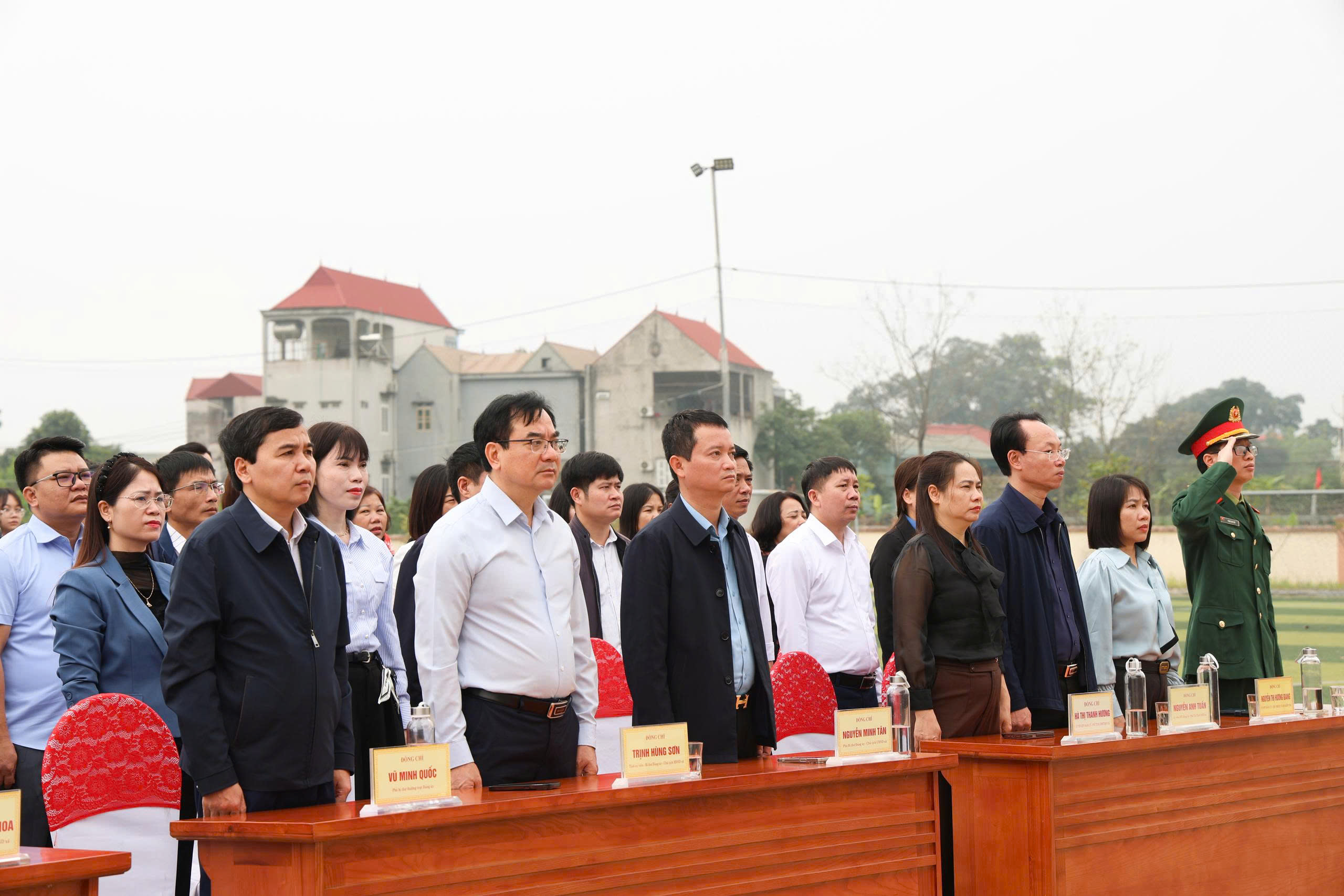 Ngay sau lễ phát động, các đại biểu tham gia trồng cây trong khuôn viên sân vận động trung tâm xã