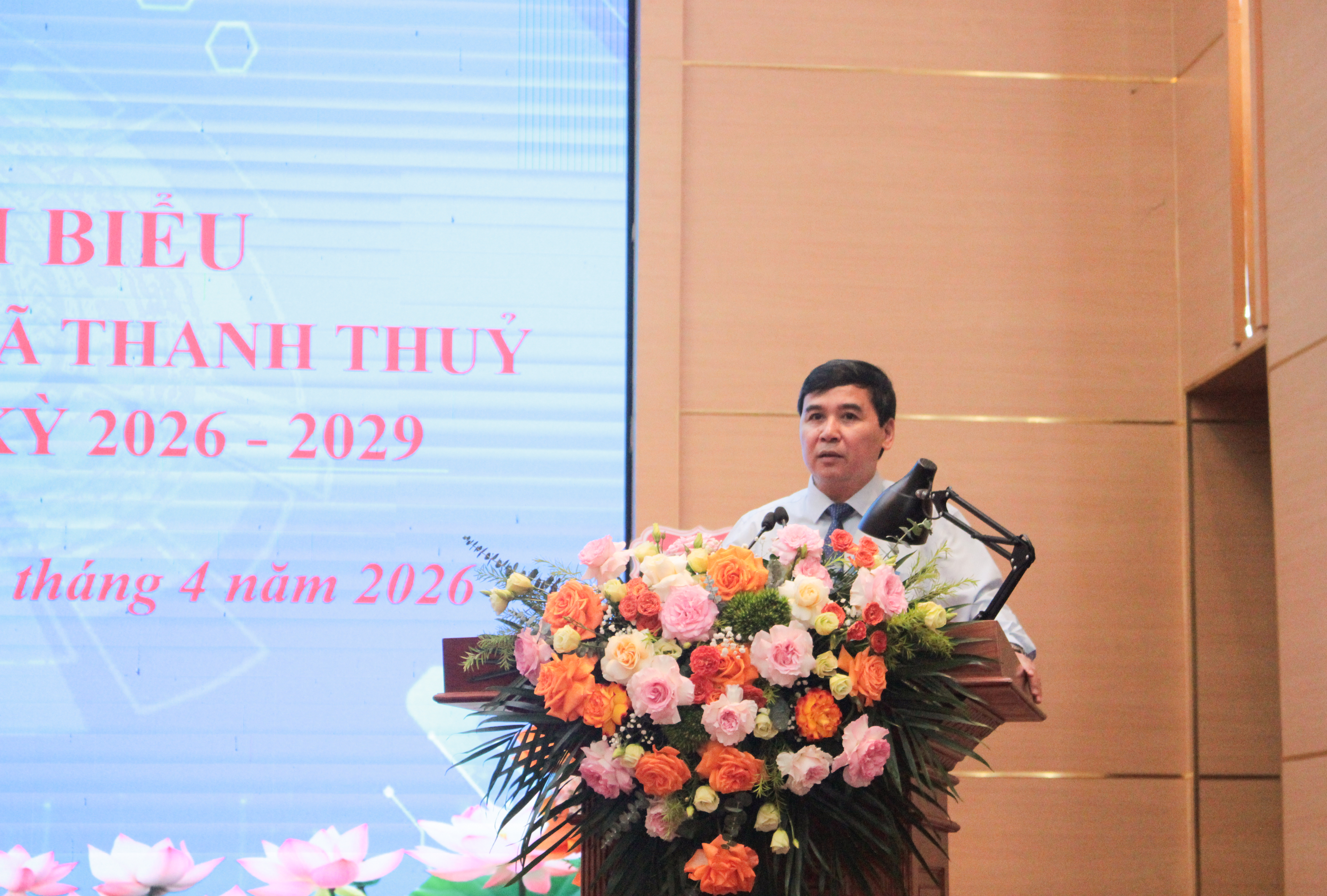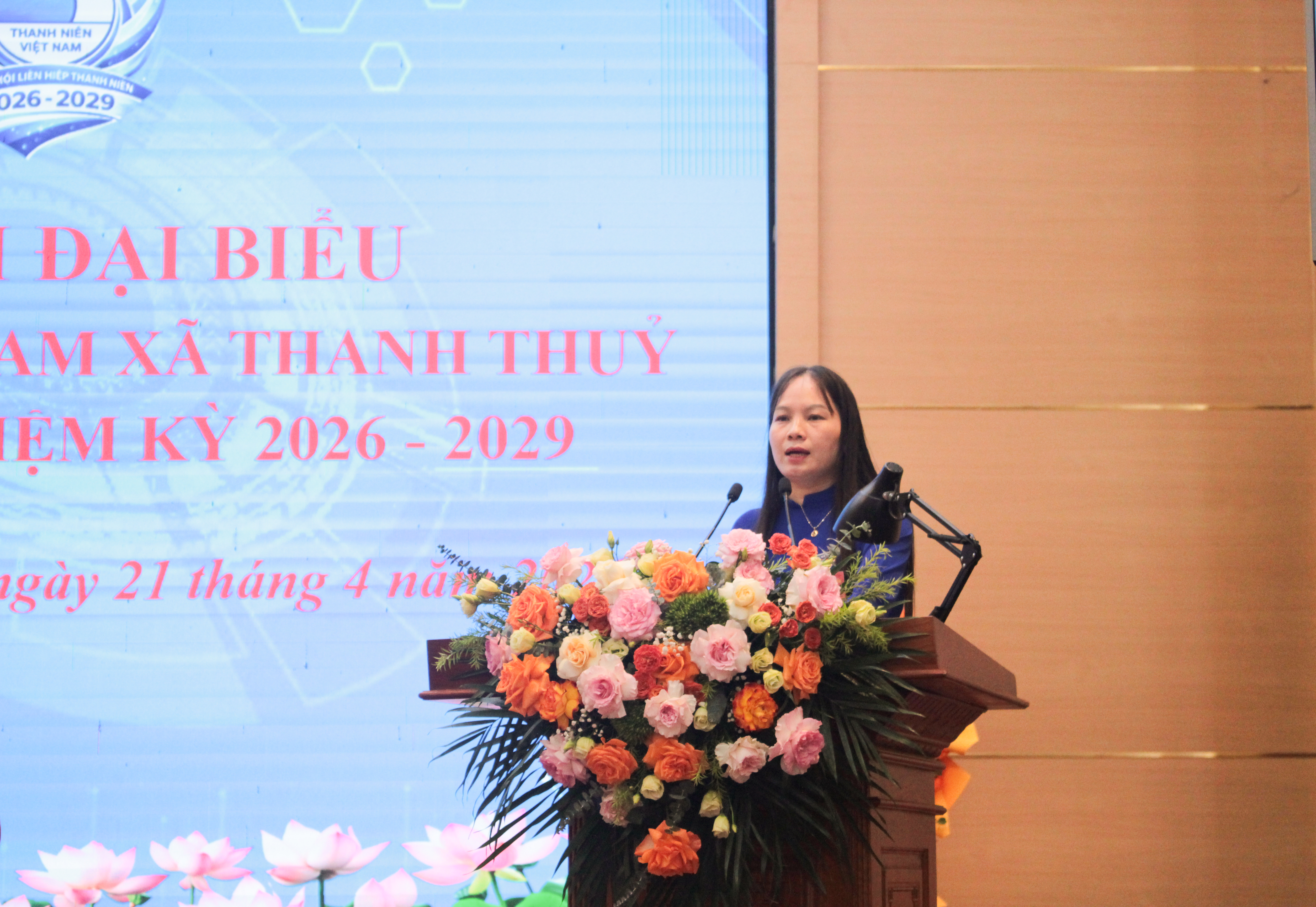 Phát biểu, tặng hoa chúc mừng Đại hội, đồng chí Phó Bí thư Thường trực Đảng uỷ Vũ Minh Quốc đã ghi nhận, biểu dương những kết quả nổi bật mà Hội Liên hiệp Thanh niên Việt Nam xã đạt được trong nhiệm kỳ qua. Đồng thời nhấn mạnh, trong nhiệm kỳ mới, cần nâng cao chất lượng tổ chức hội, xây dựng tổ chức hội vững mạnh, toàn diện; mở rộng mặt trận đoàn kết, tập hợp thanh niên; Chú trọng phát triển quản lý đi đôi với nâng cao chất lượng hội viên, đa dạng hóa hoạt động câu lạc bộ, tổ đội, nhóm theo nghề nghiệp, sở thích; Phương thức hoạt động của hội cần bám sát các mục tiêu phát triển kinh tế của địa phương để đa dạng hóa hình thức tuyên truyền, giáo dục lý tưởng cách mạng, đạo đức, lối sống, văn hóa xã hội. Đẩy mạnh chuyển đổi số trong công tác hội, ứng dụng công nghệ thông tin để quản lý hội viên và triển khai các hoạt động trực tuyến, sinh động, hấp dẫn; đẩy mạnh chương trình đồng hành cùng thanh niên học tập, khởi nghiệp, tạo được các mô hình, công trình của đoàn thanh niên để phục vụ phát triển kinh tế, du lịch tại địa phương. Phát huy vai trò của thanh niên trong phát triển kinh tế xã hội, là cầu nối hiệu quả giúp thanh niên tiếp cận các nguồn vốn ưu đãi, tư vấn, hướng nghiệp và chuyển giao tiến bộ khoa học kỹ thuật, khuyến khích thanh niên tiên phong trong khởi nghiệp sáng tạo, phát triển các mô hình kinh tế trang trại, kinh tế số và tham gia xây dựng các sản phẩm Ocop tại địa phương; xây dựng hình ảnh thanh niên tâm trong, trí sáng, hoài bão lớn; khơi dậy khát vọng cống hiến, ý chí tự lực, tự cường để mỗi thanh niên đều là một đại sứ quảng bá hình ảnh quê hương Thanh Thuỷ, góp phần xây dựng Thanh Thuỷ trở thành điểm du lịch trọng điểm của tỉnh.